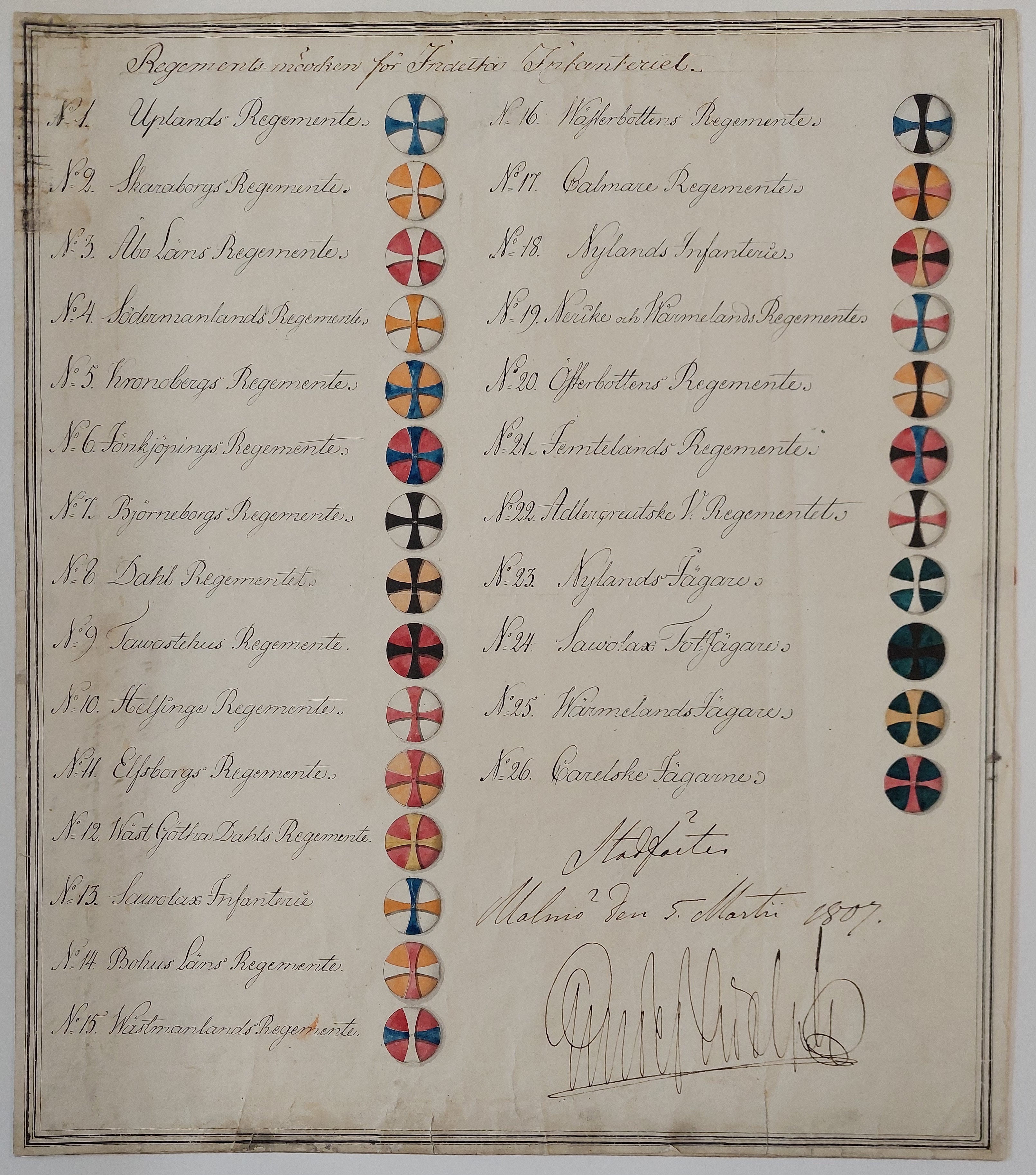 Det svenska indelta infanteriet ska, med undantag av grenadjärförbanden, ha