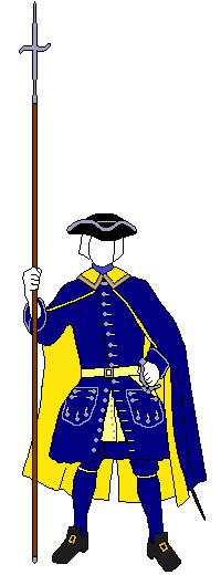 musketerarna kläde av okänd färg medan underofficerarna fick blått kläde och