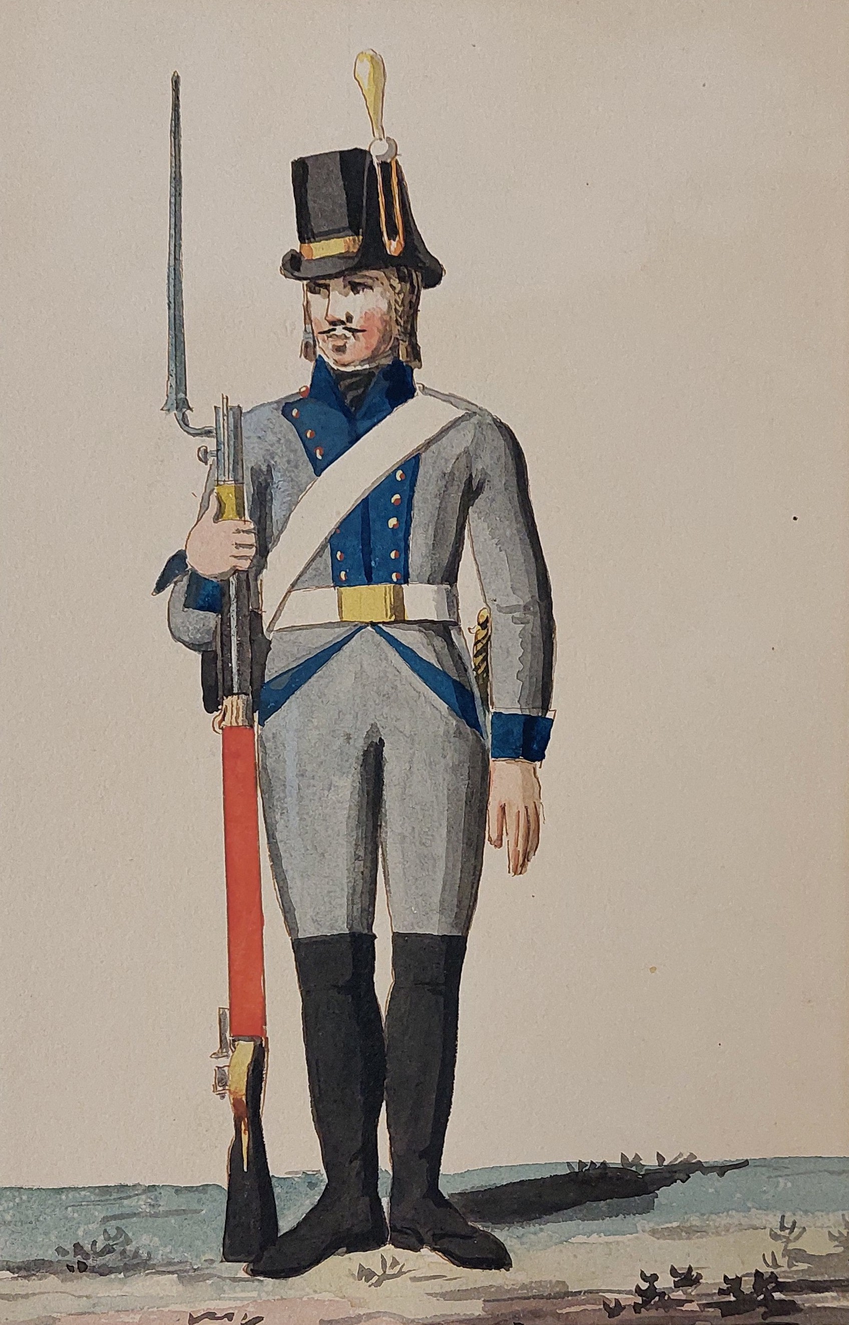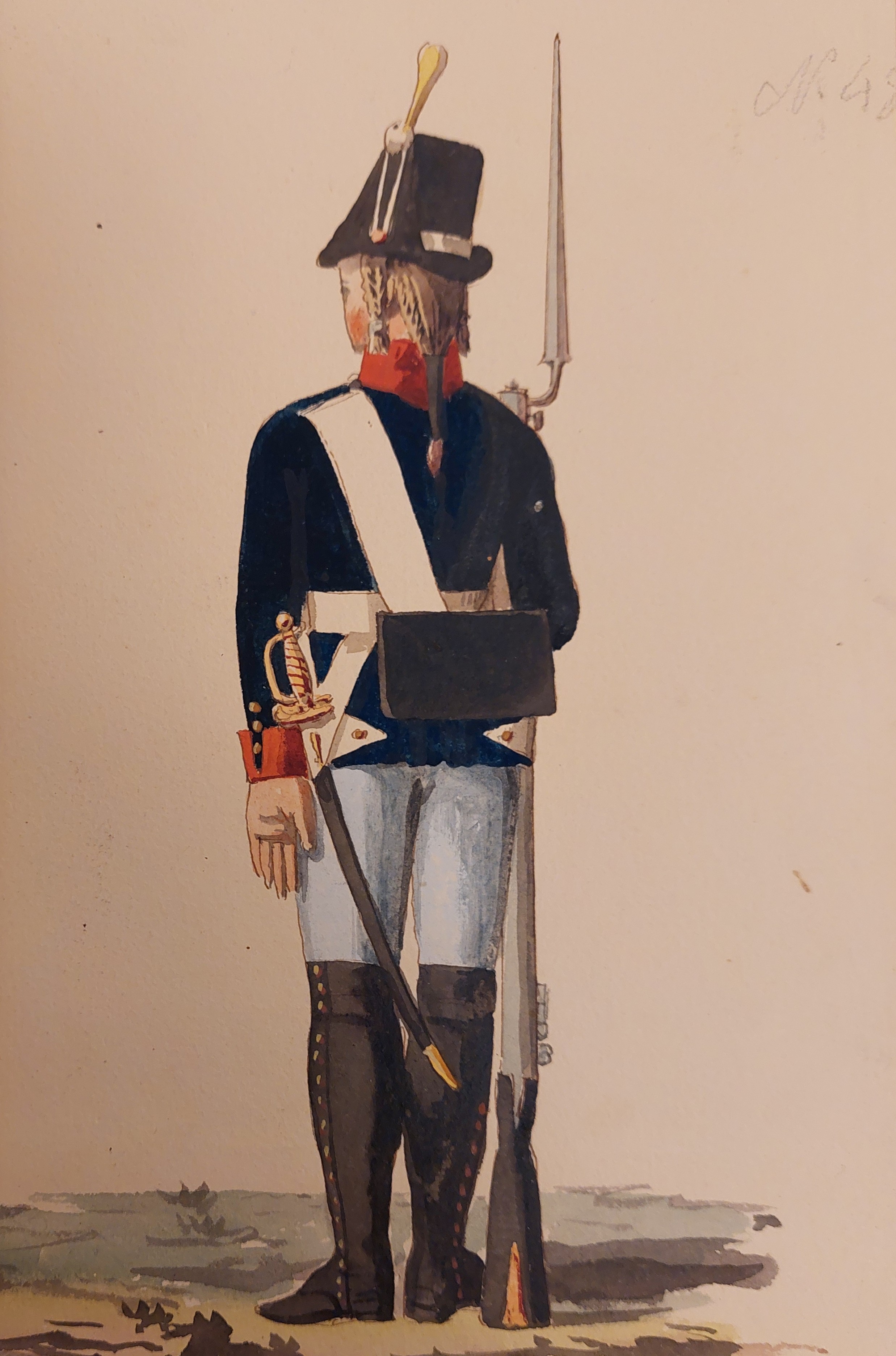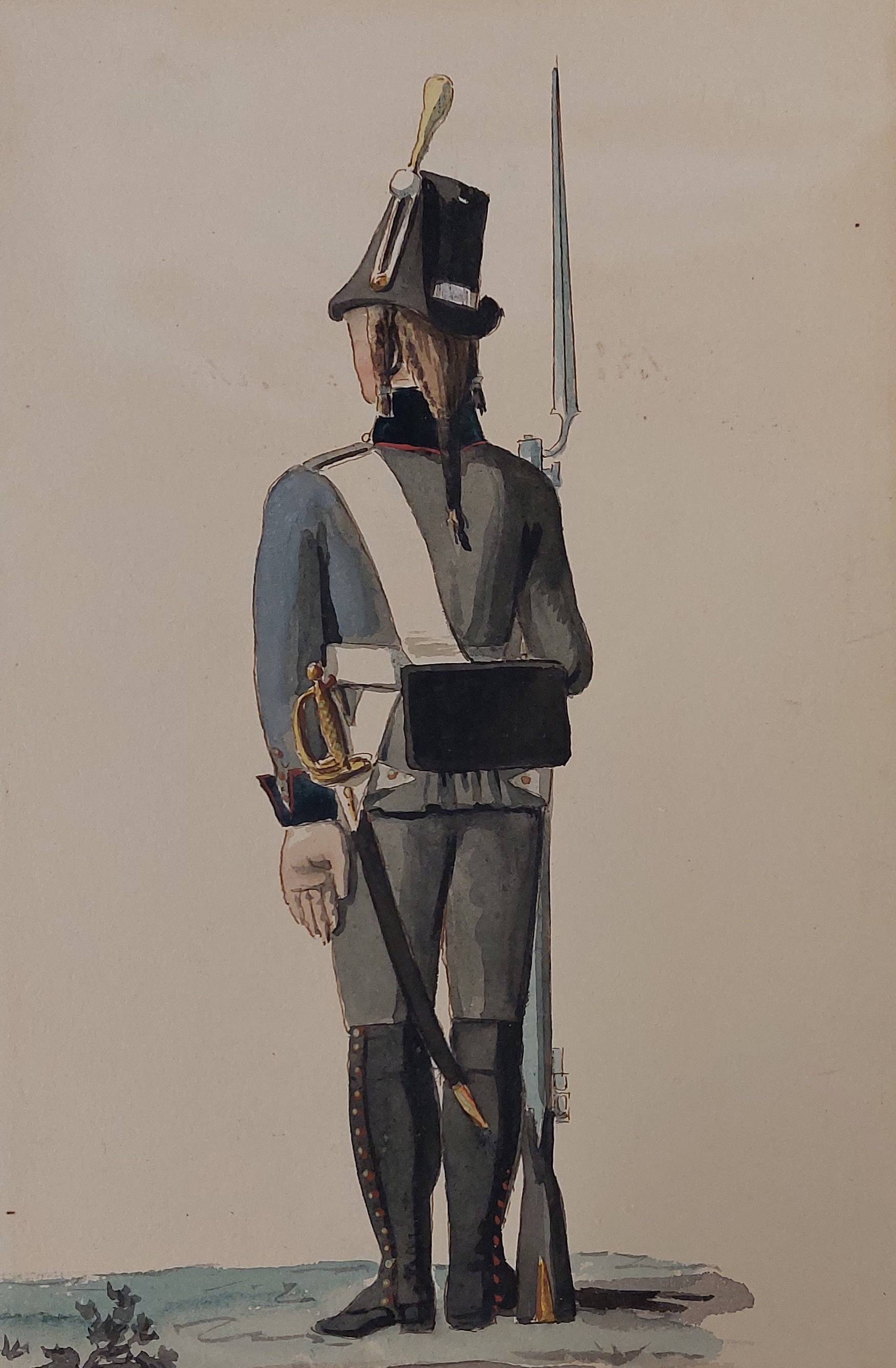 Gillbergs senare plansch (ovan) är det bara underofficerens hatt som har