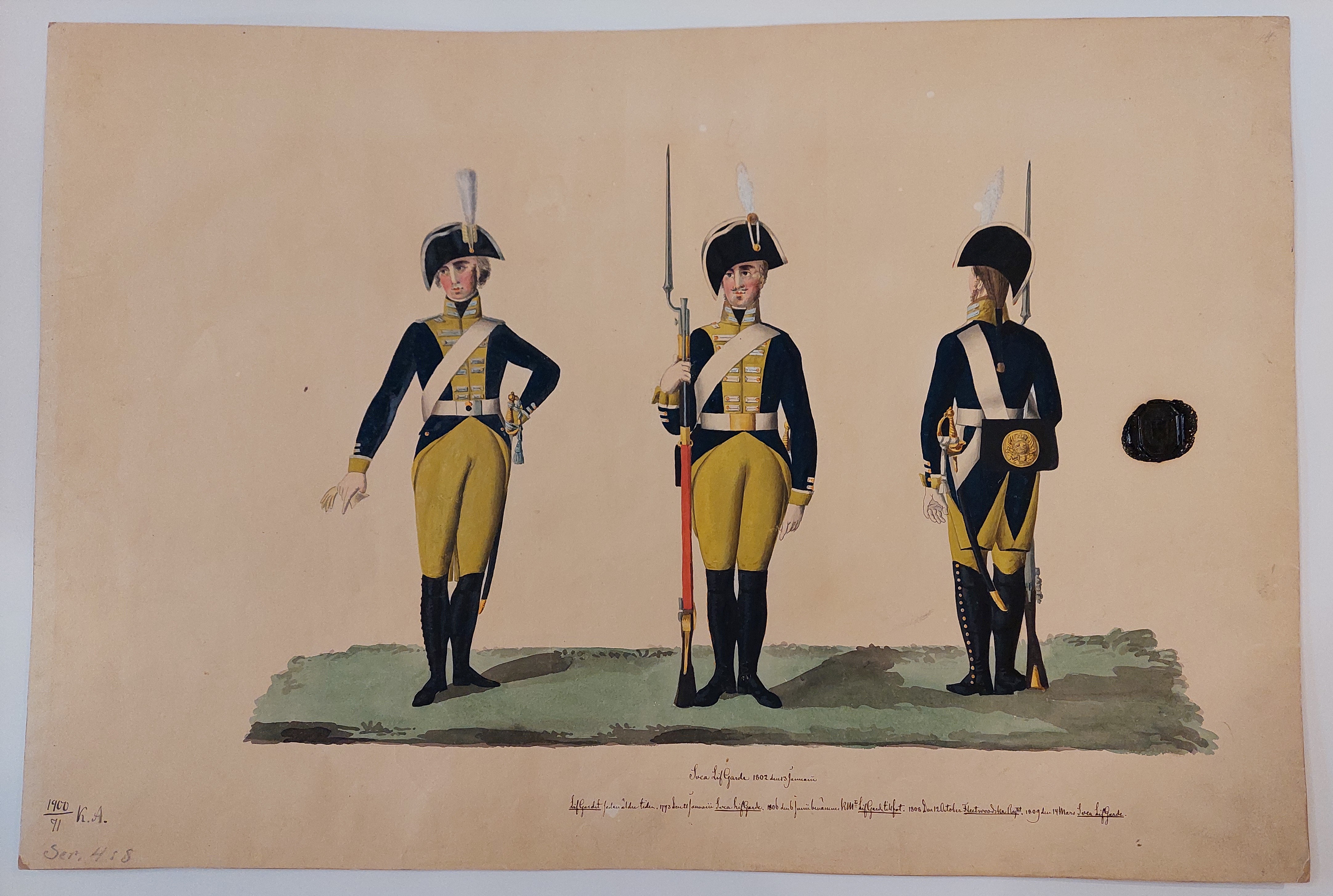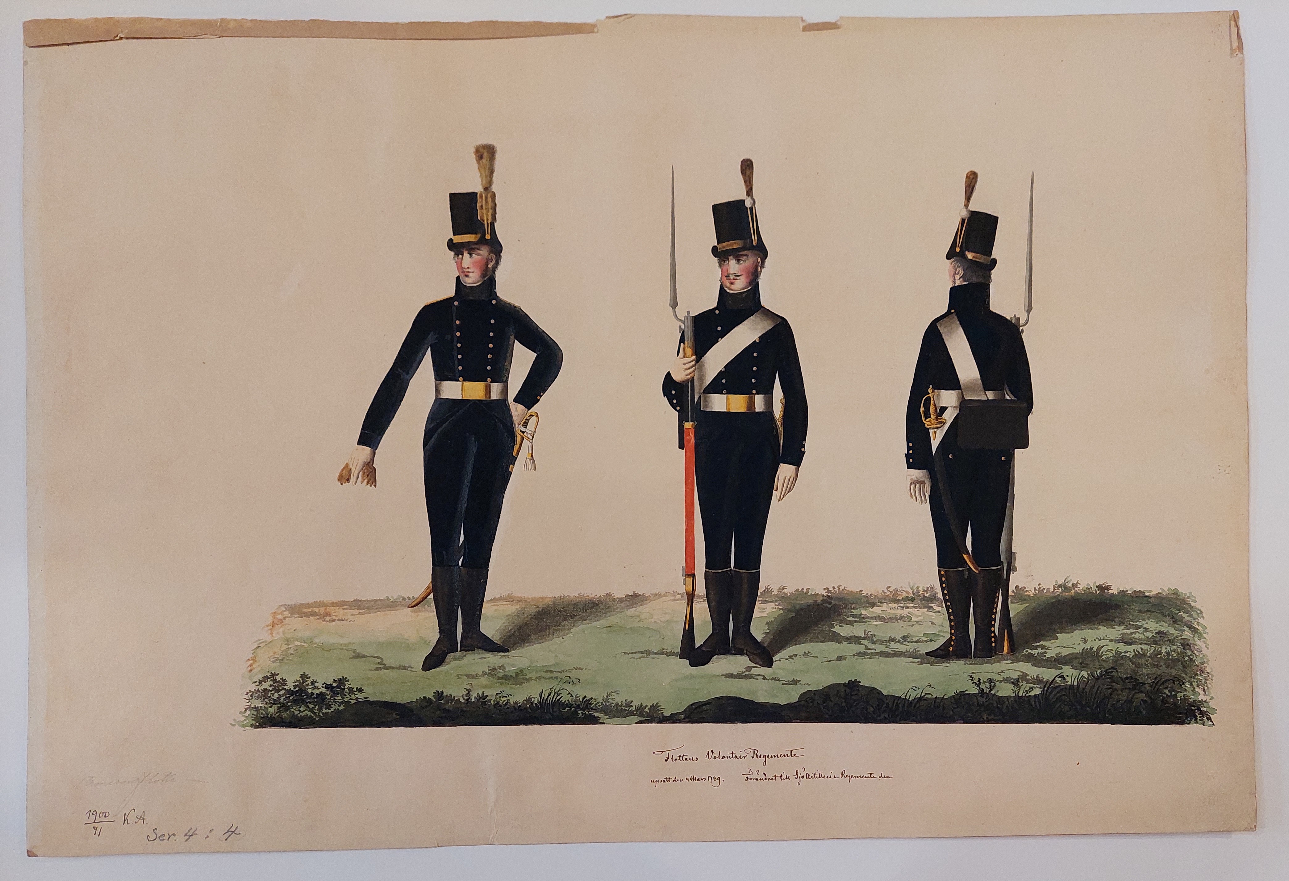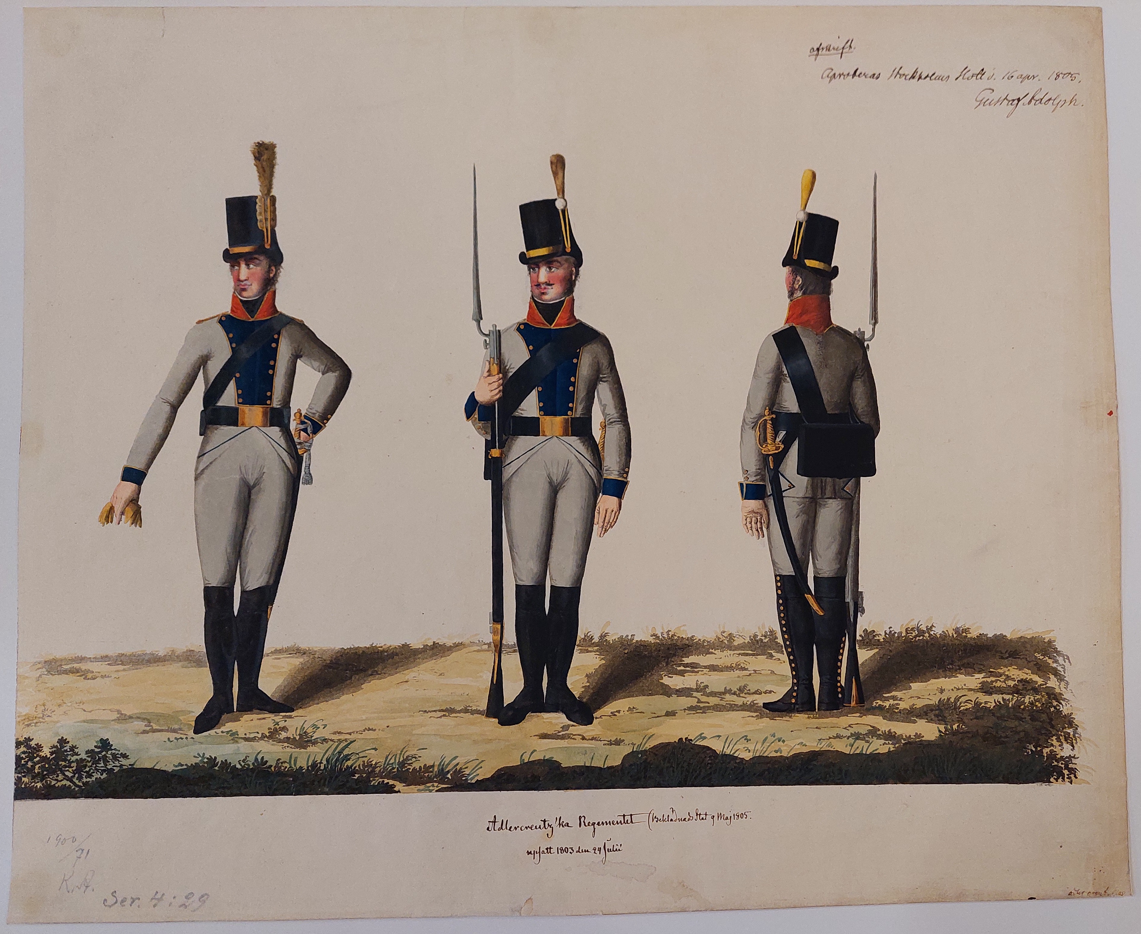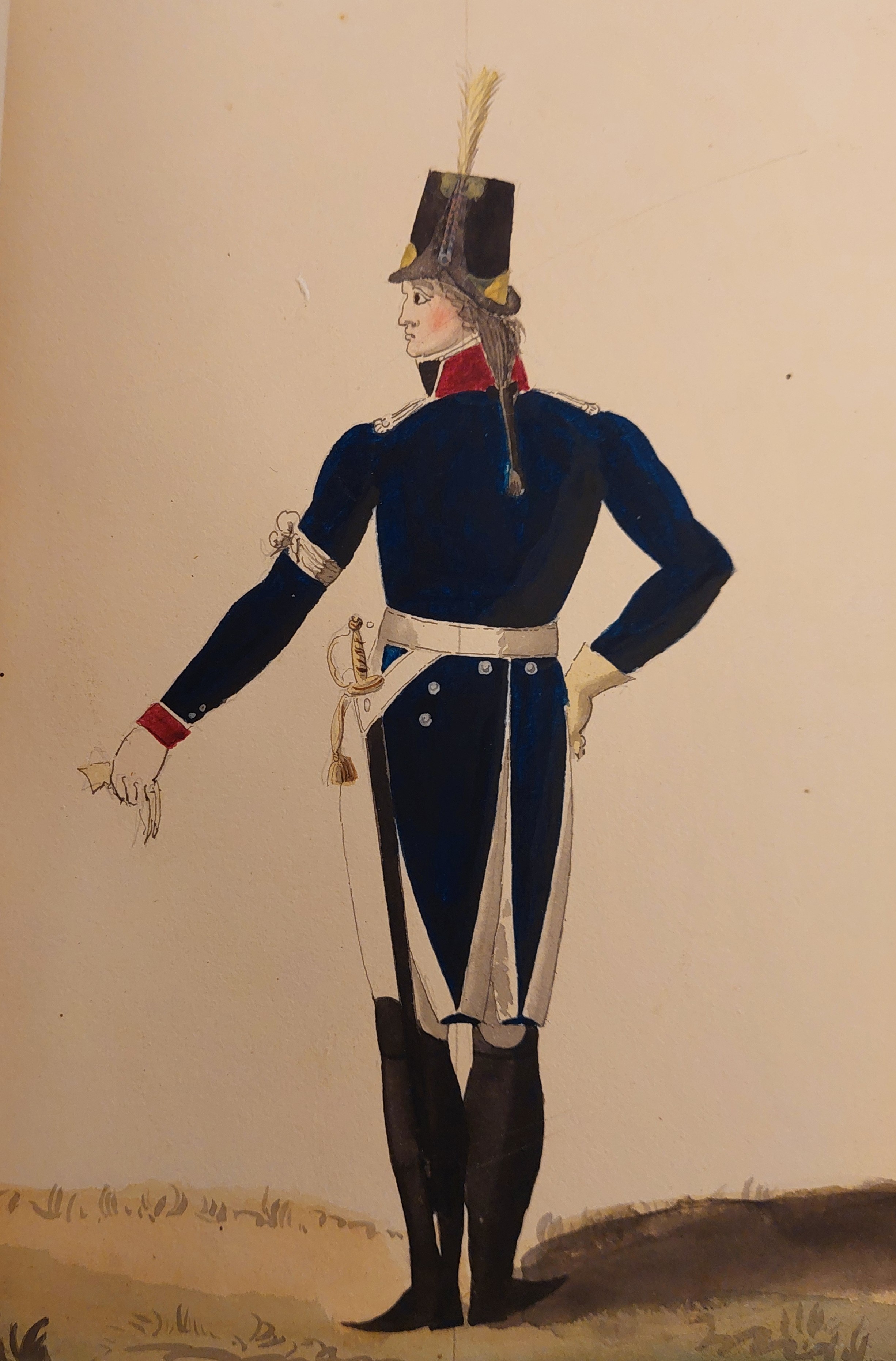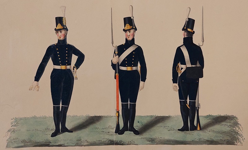 Beskuren uniformsritning daterad till 1806.