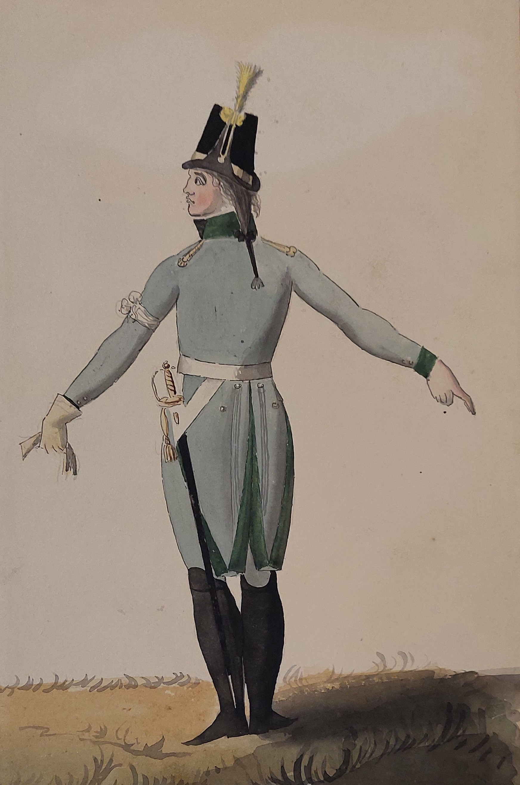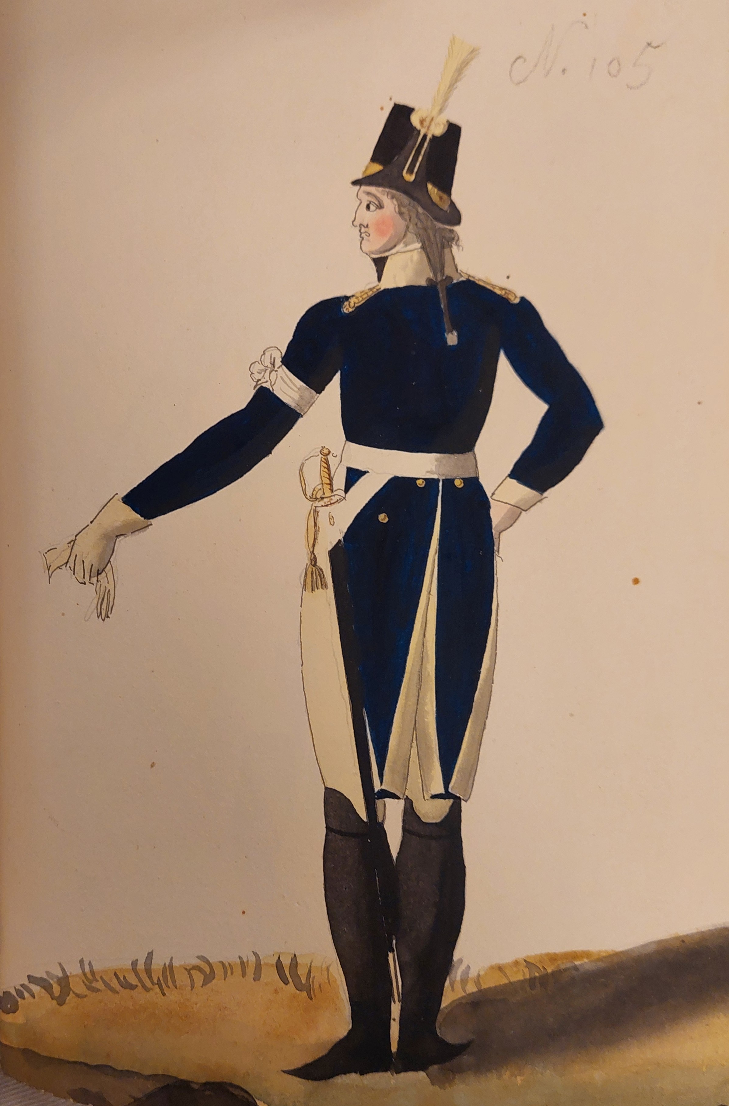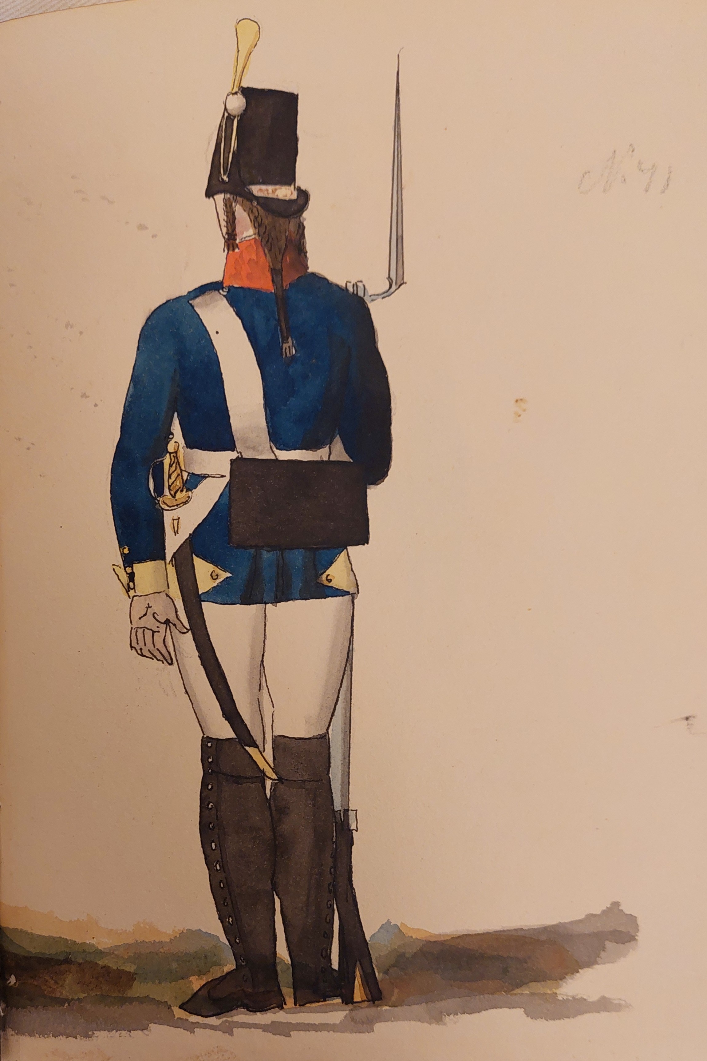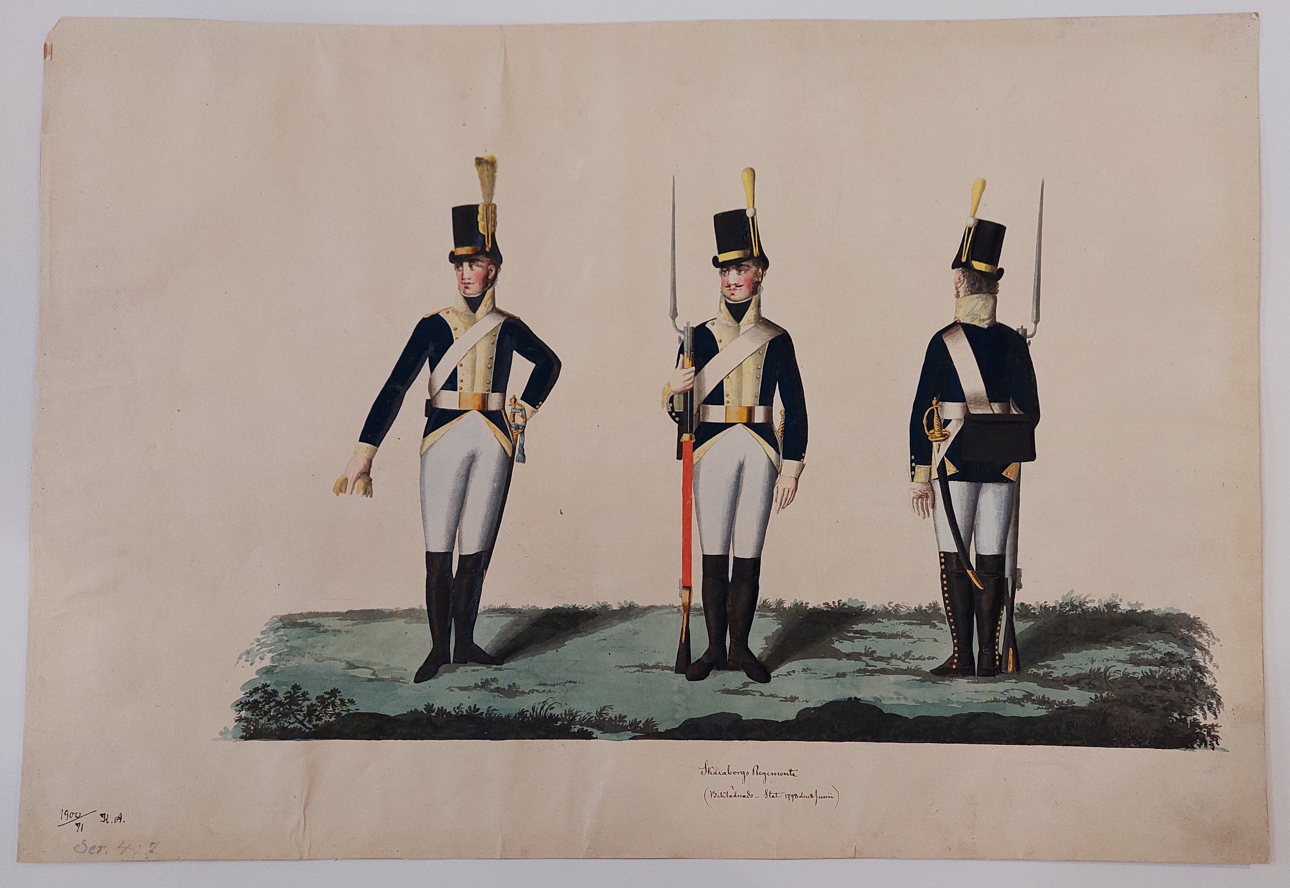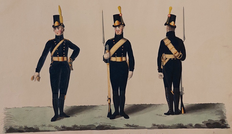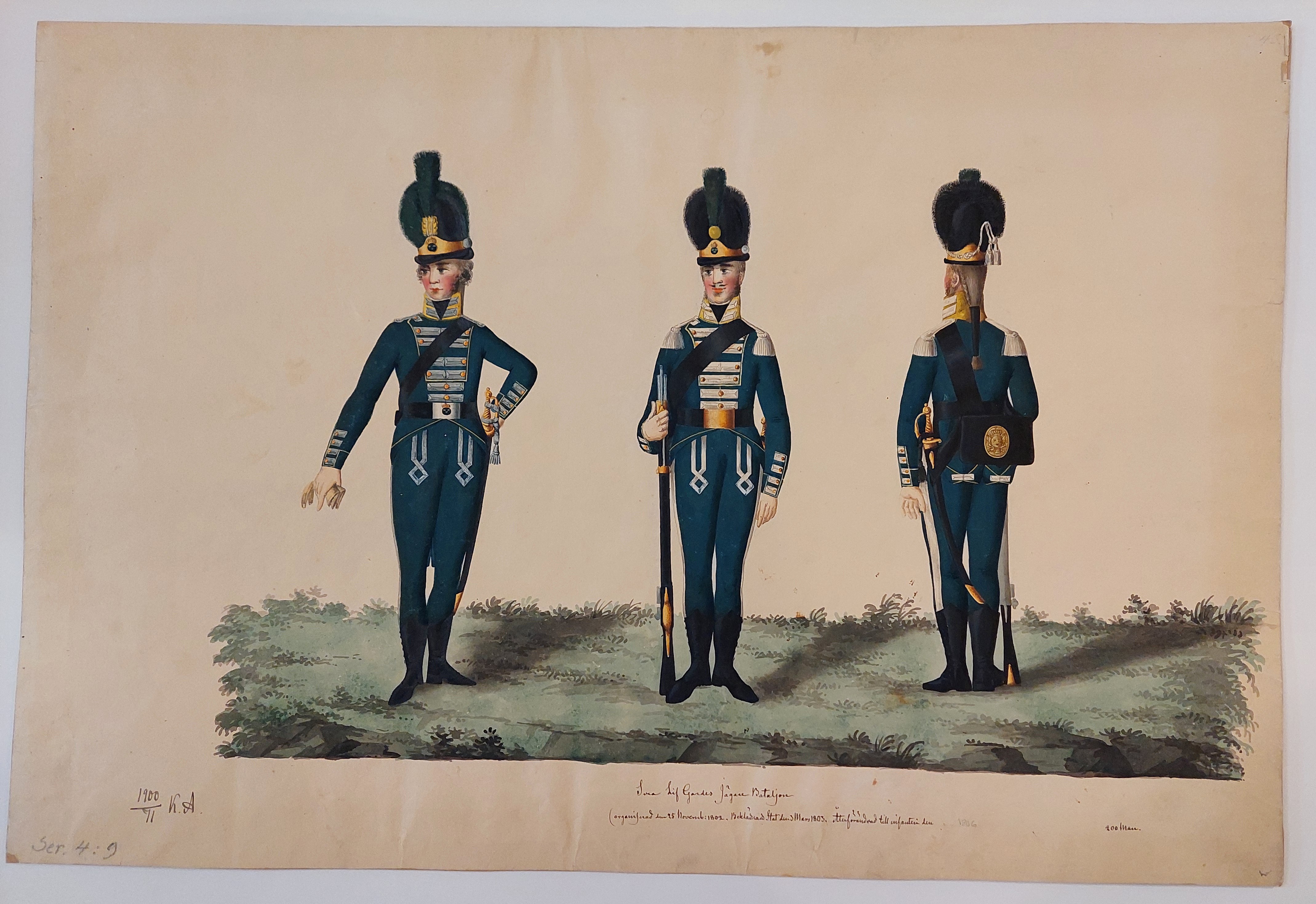 Beskuren uniformsritning daterad till 1806.