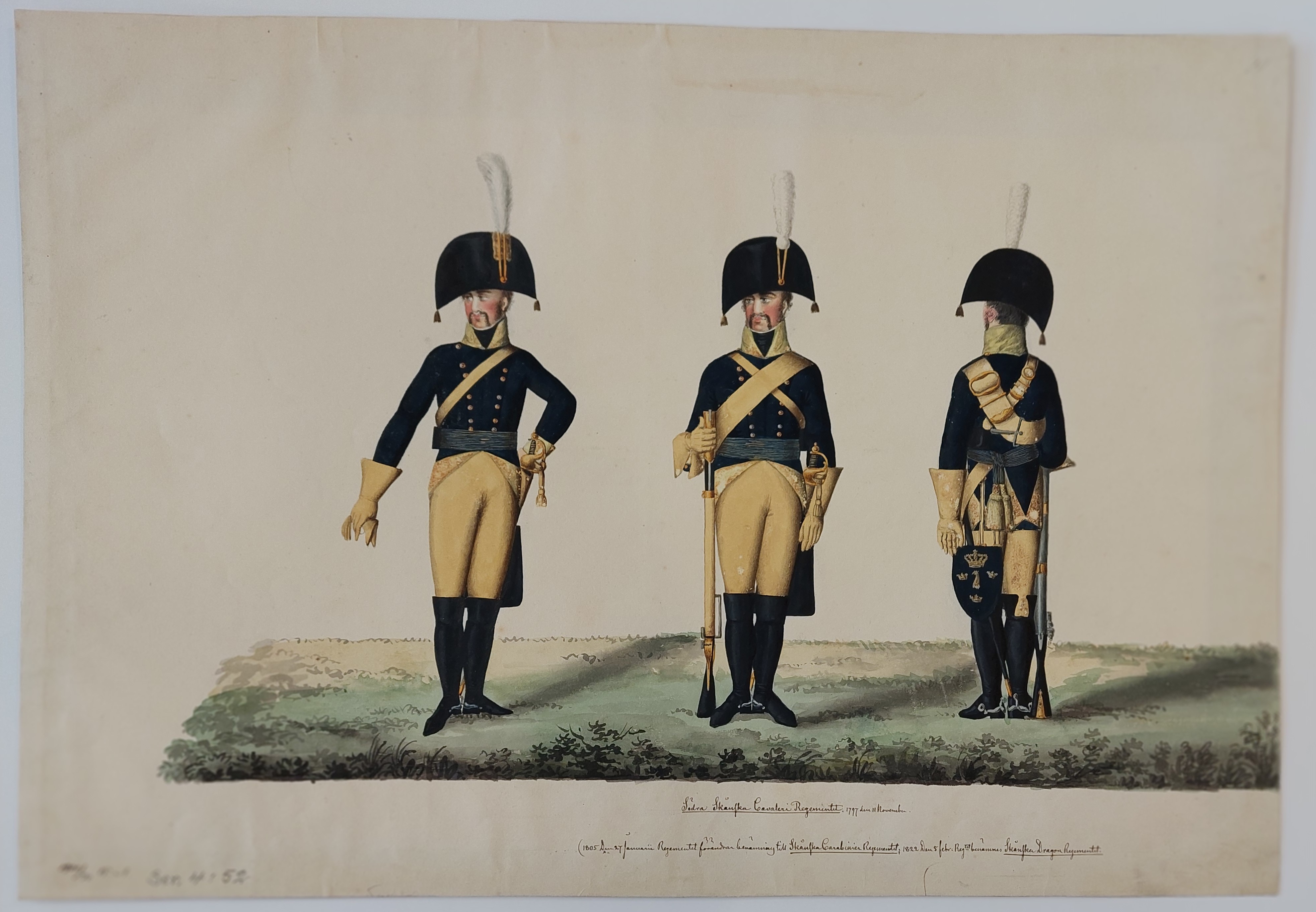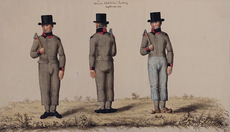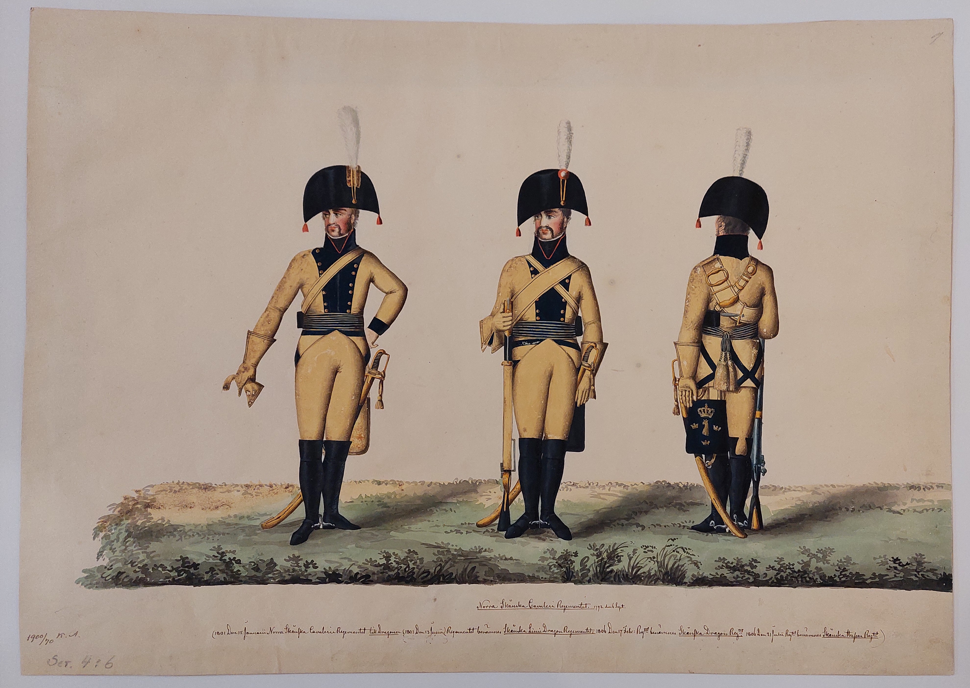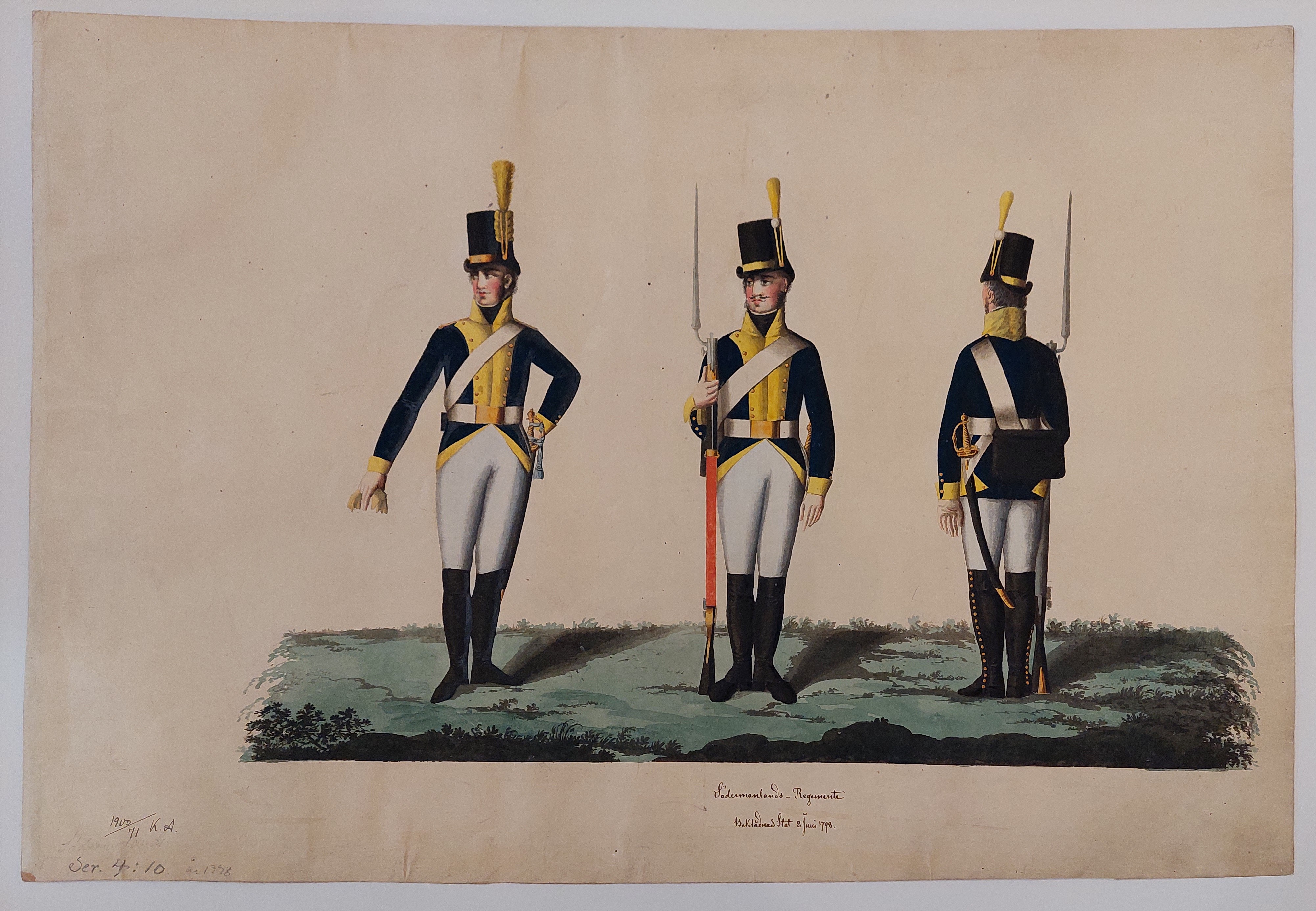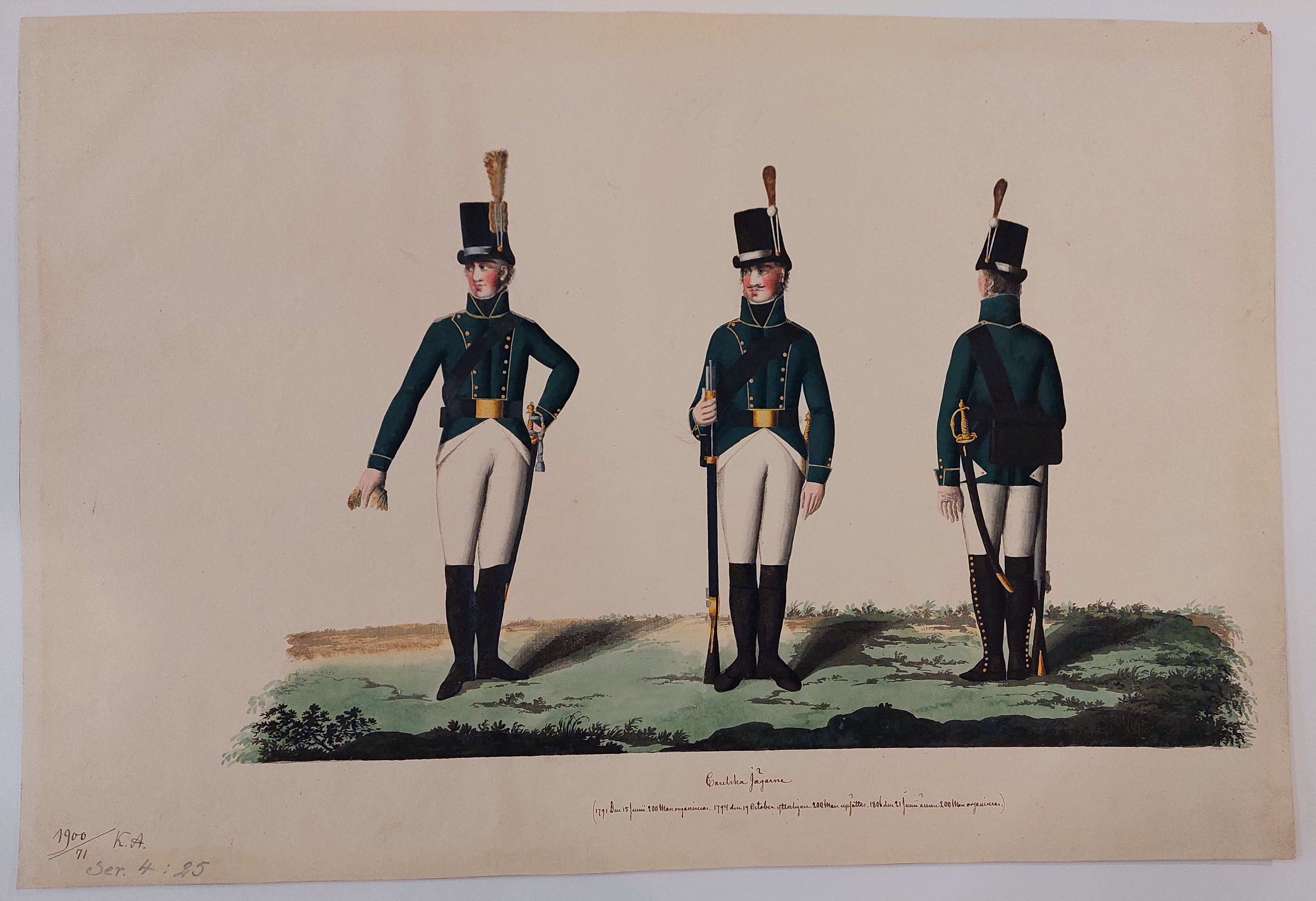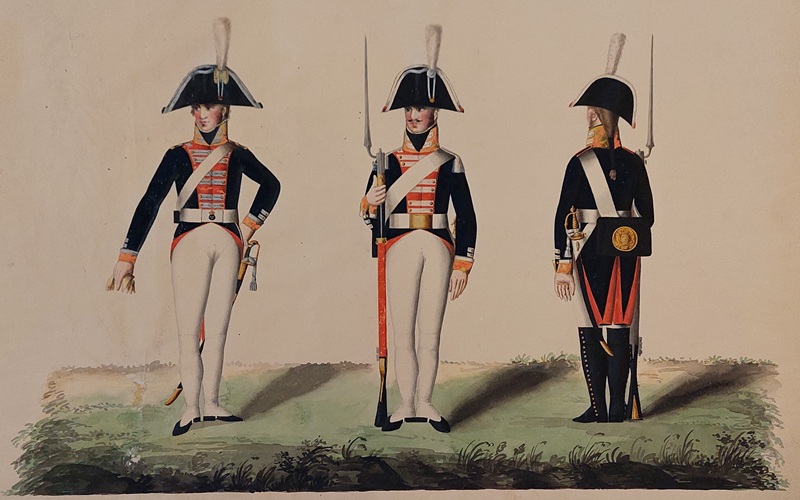 Beskuren uniformsritning daterad till 1806.