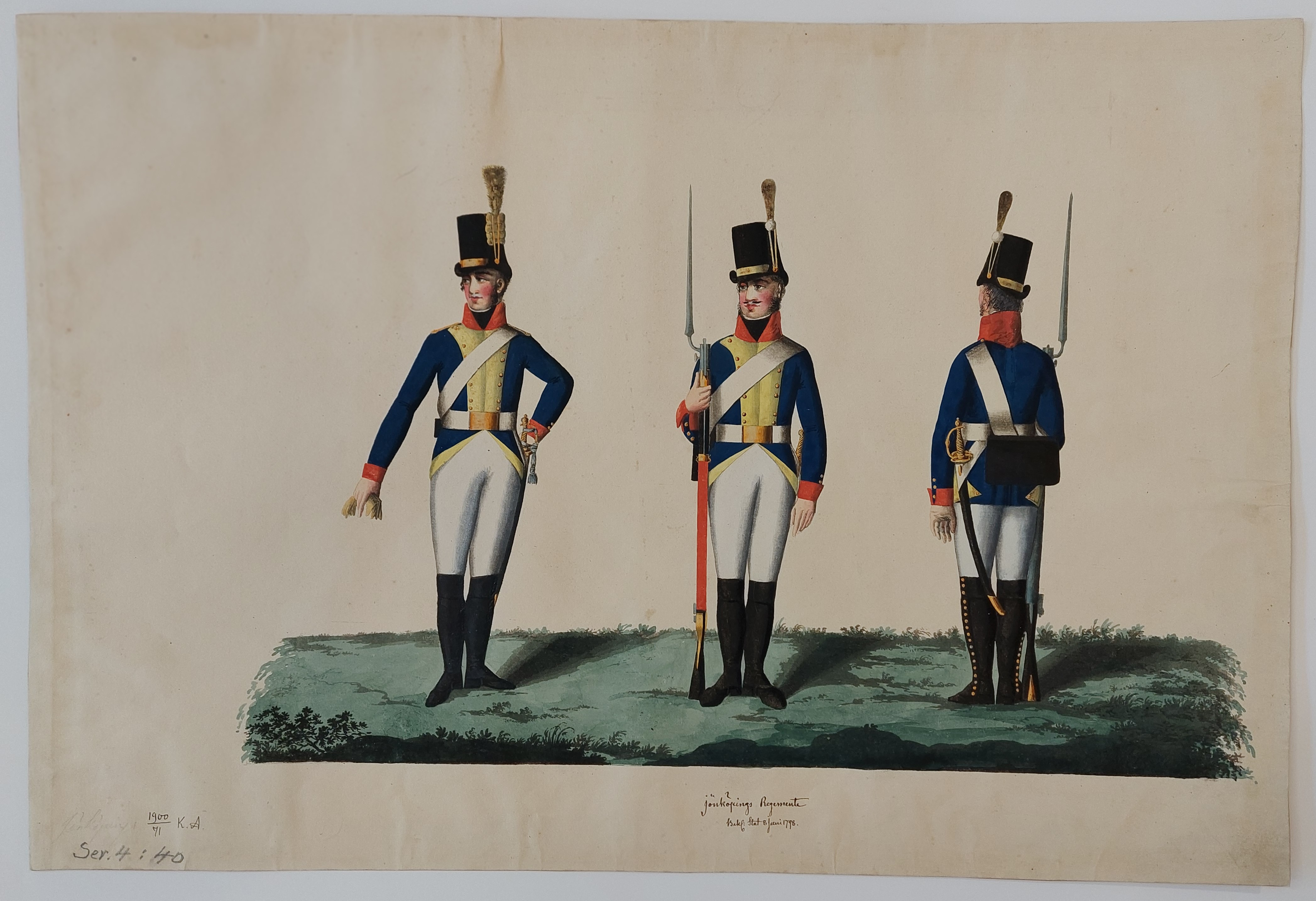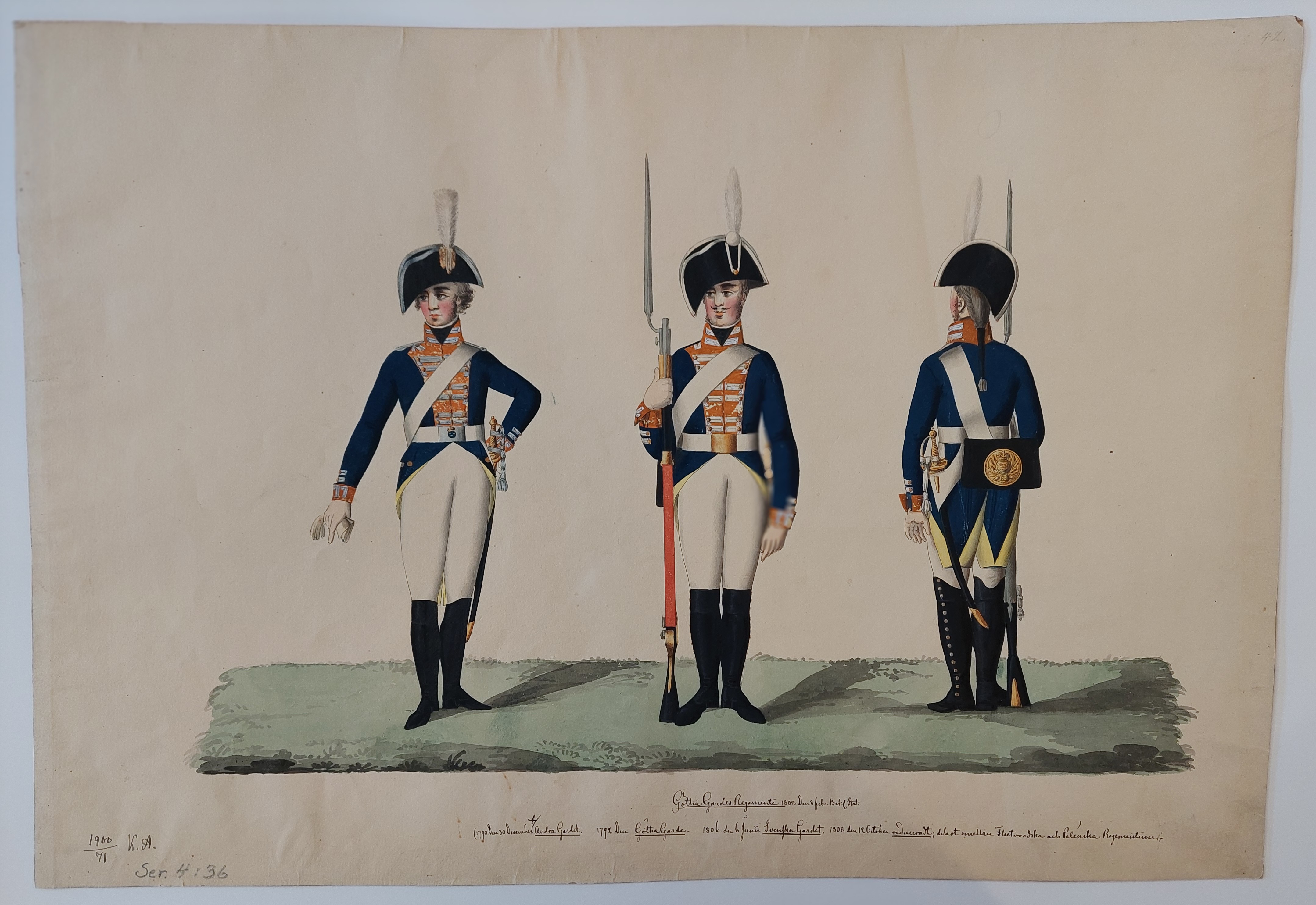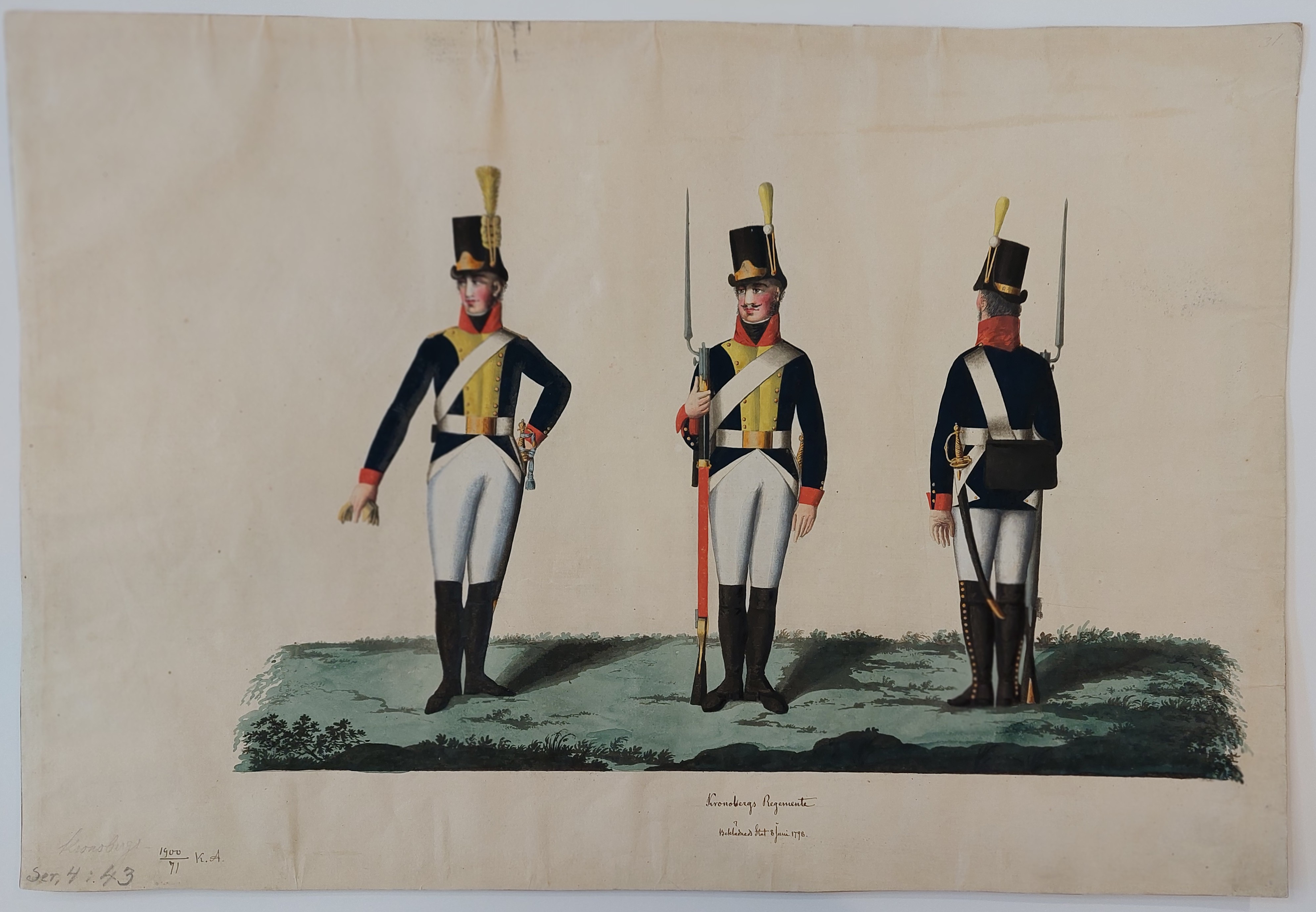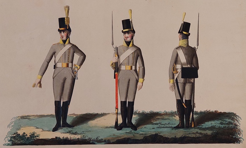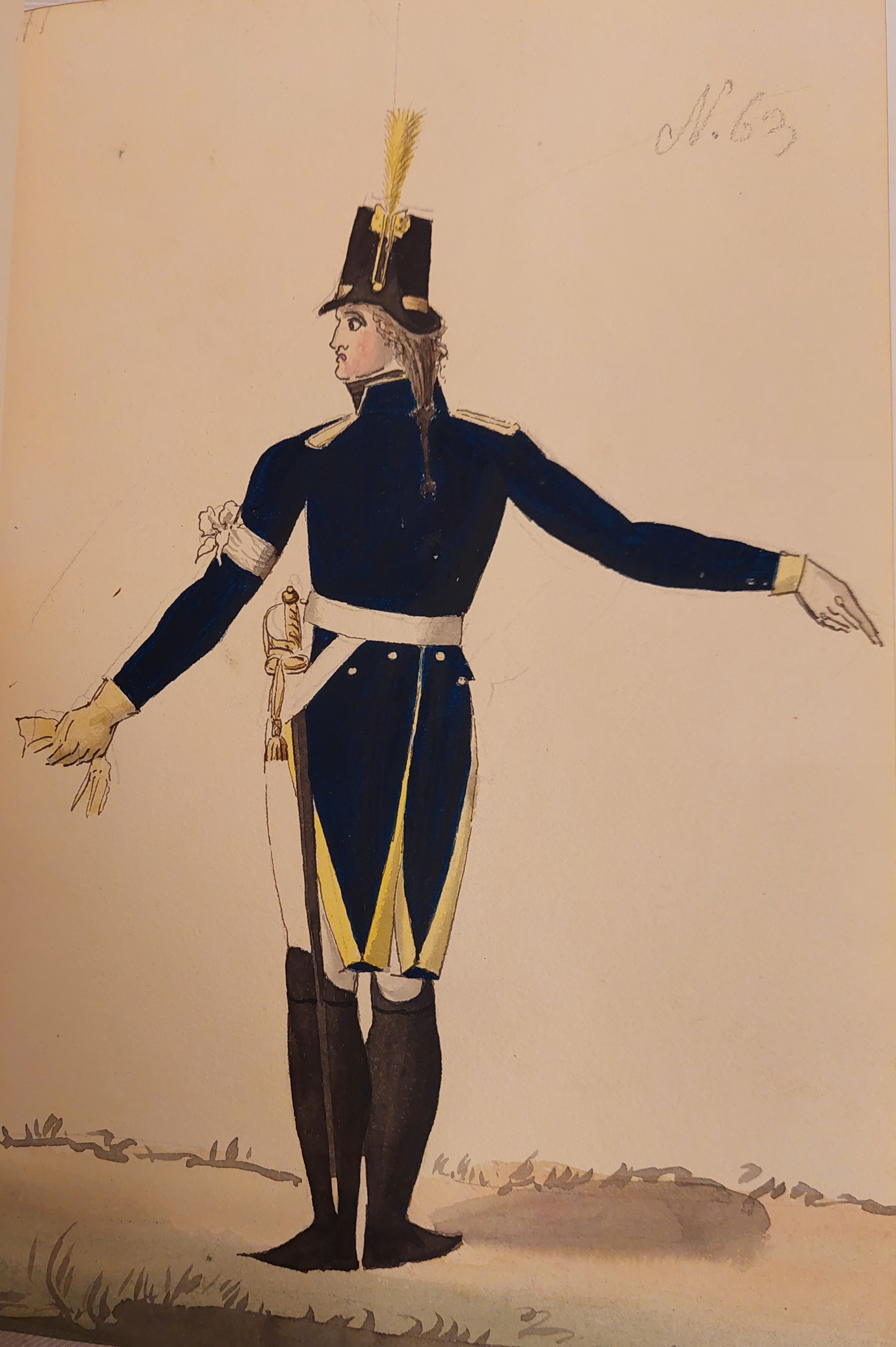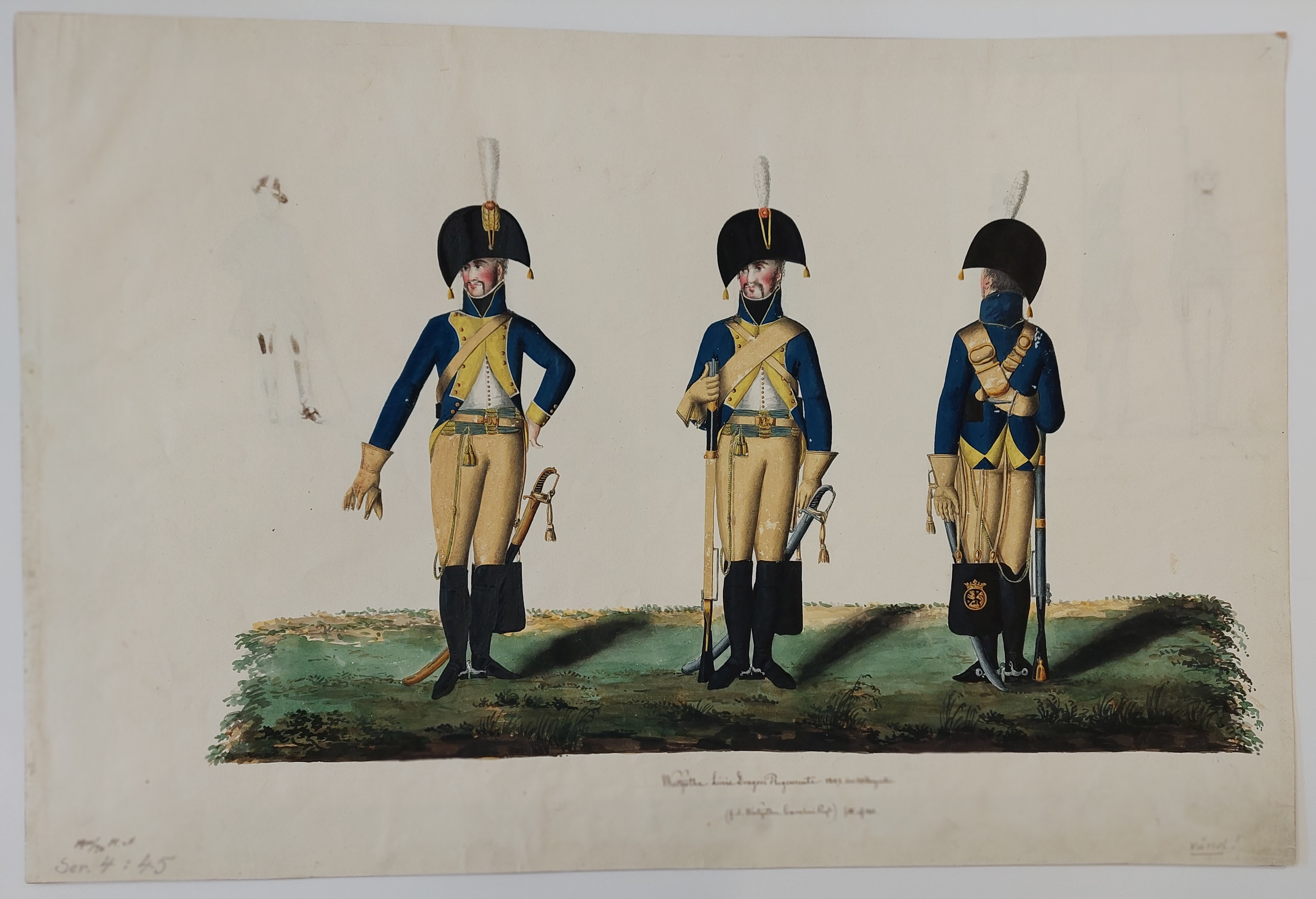 Beskuren uniformsritning daterad till 1806.