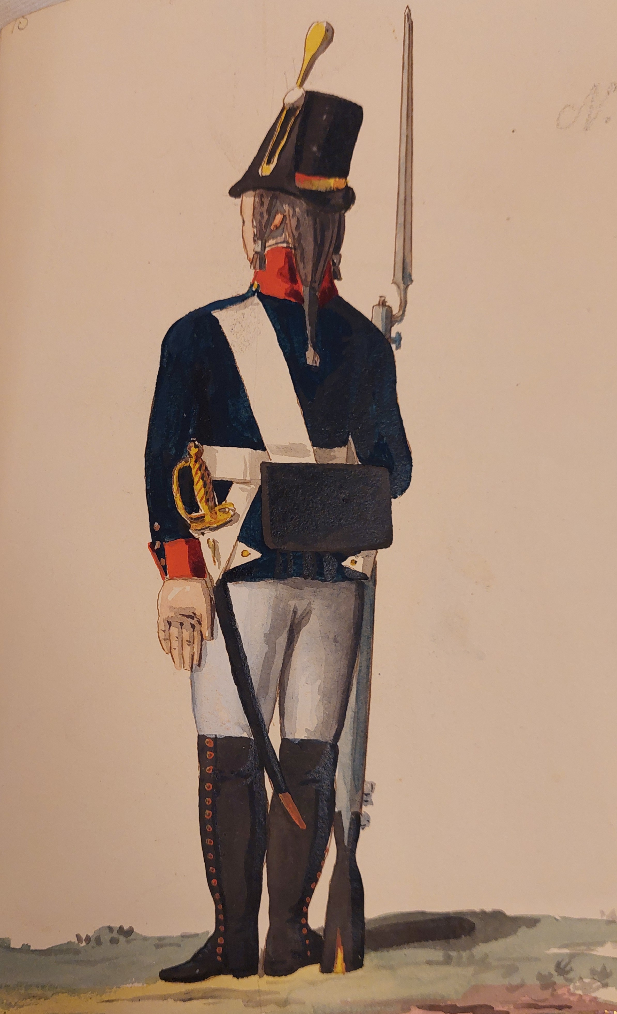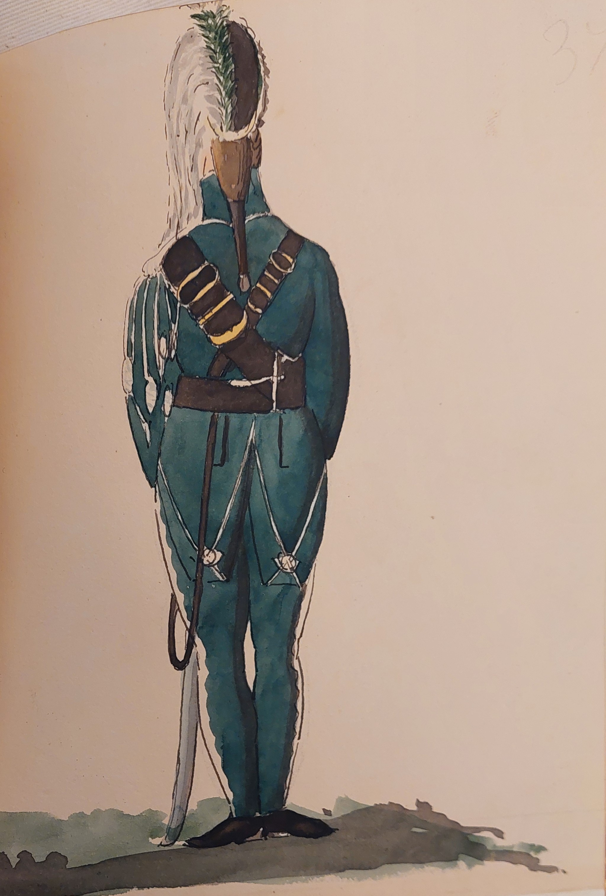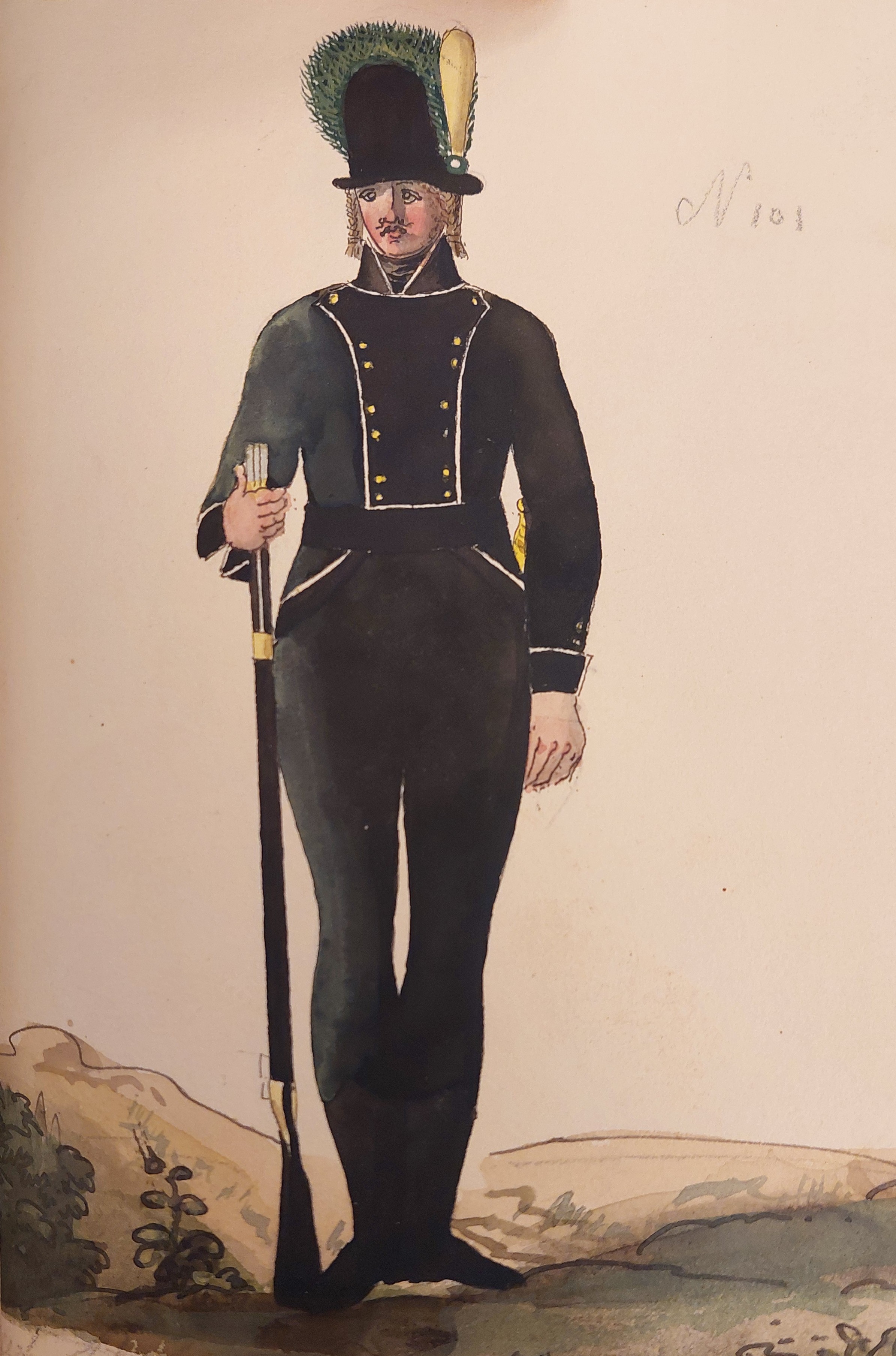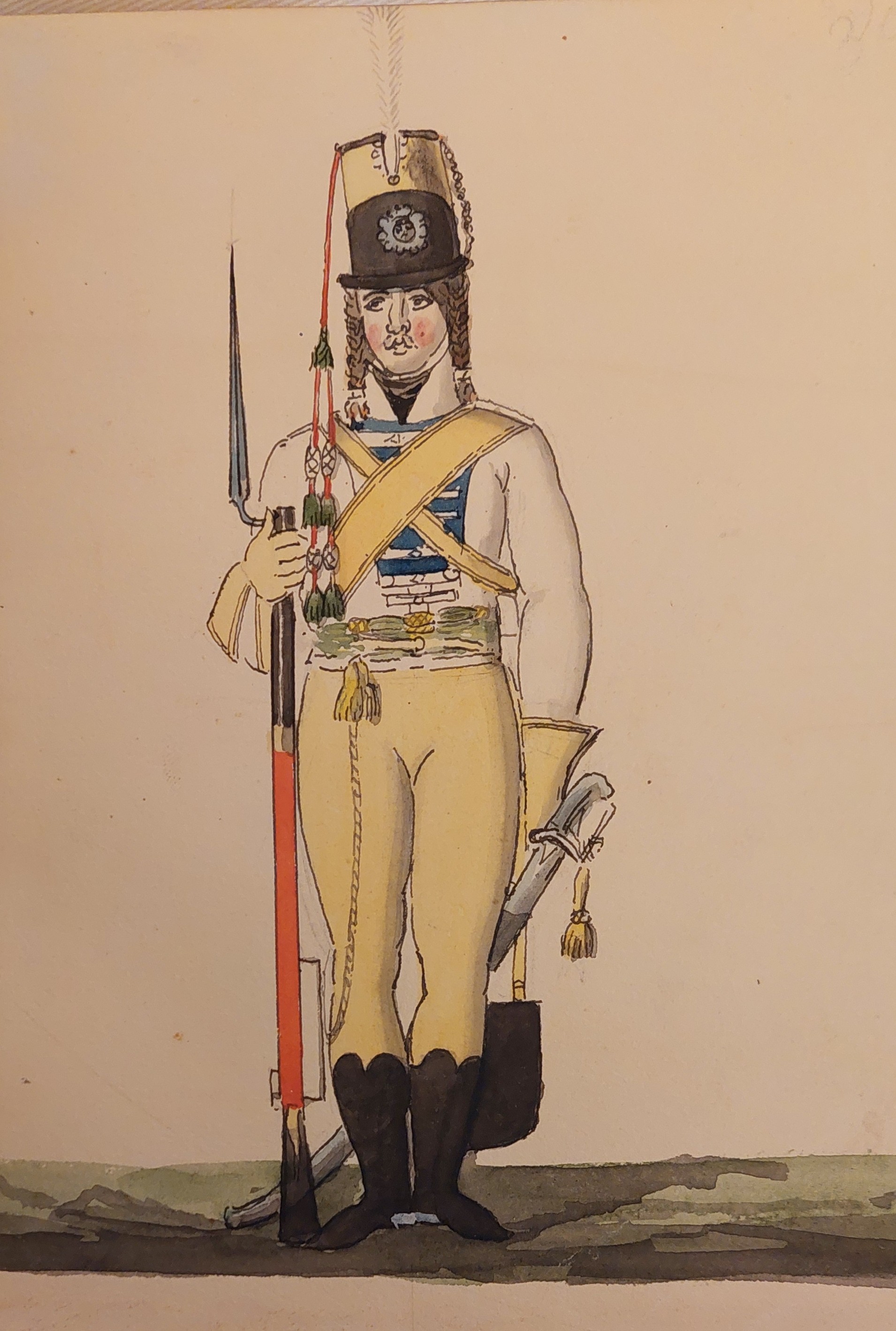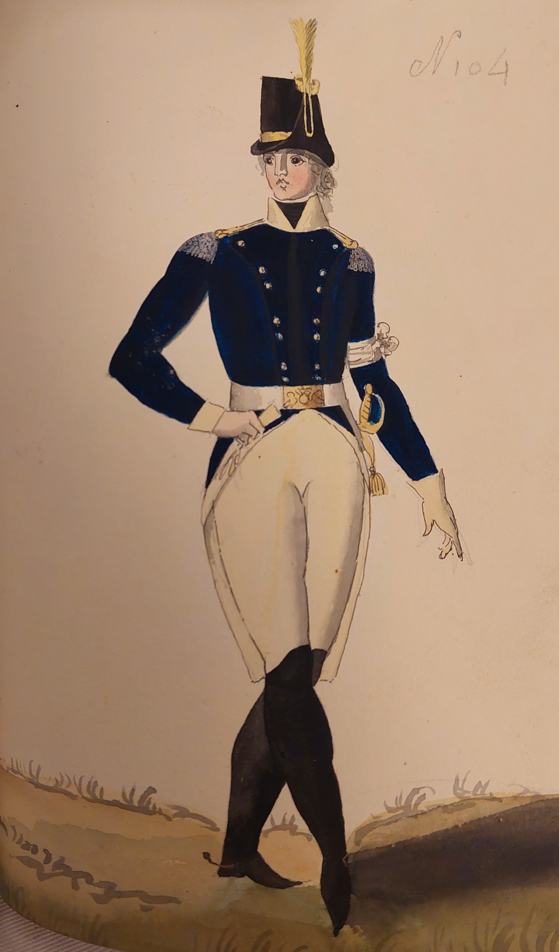 Beskuren uniformsritning daterad till 1806.