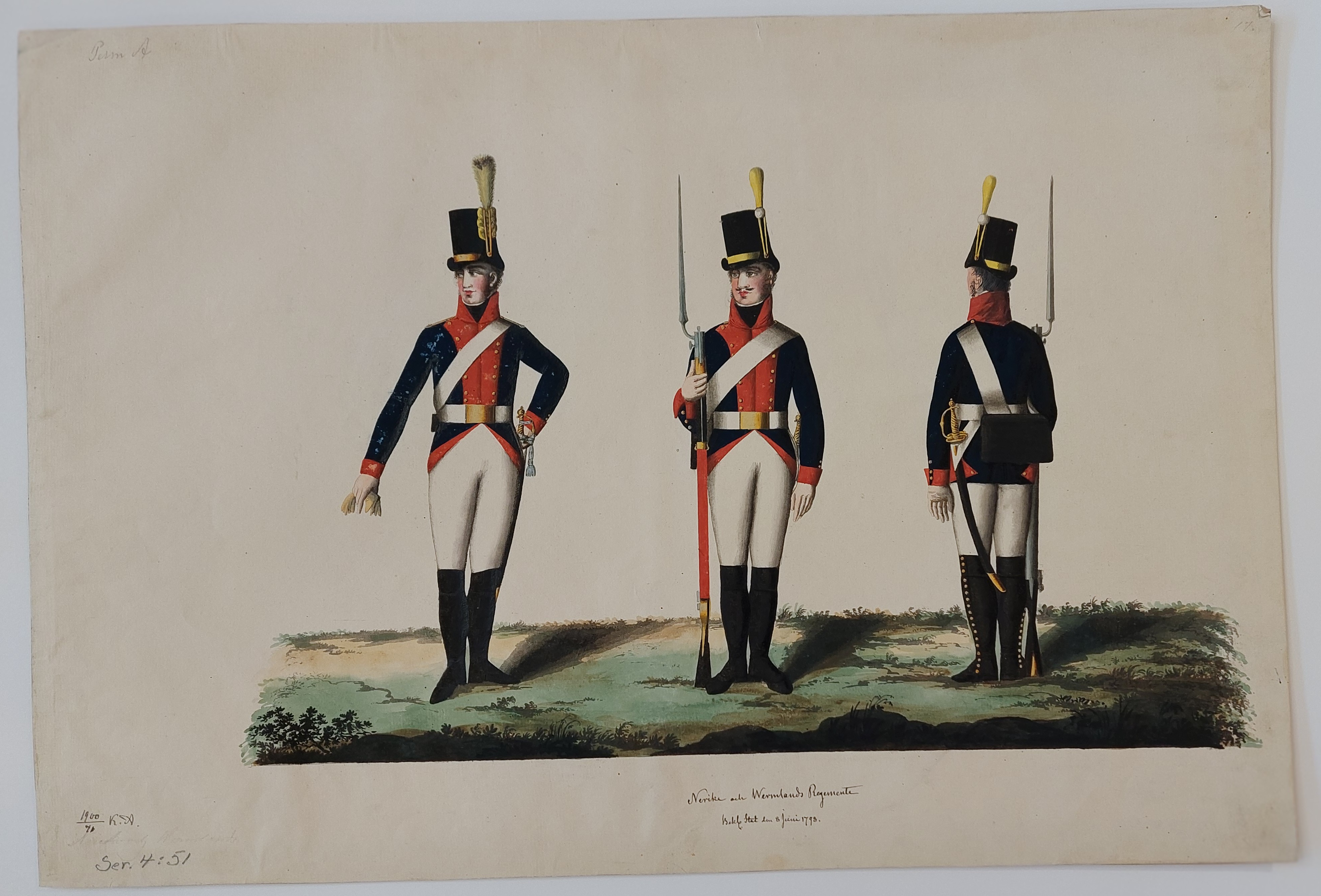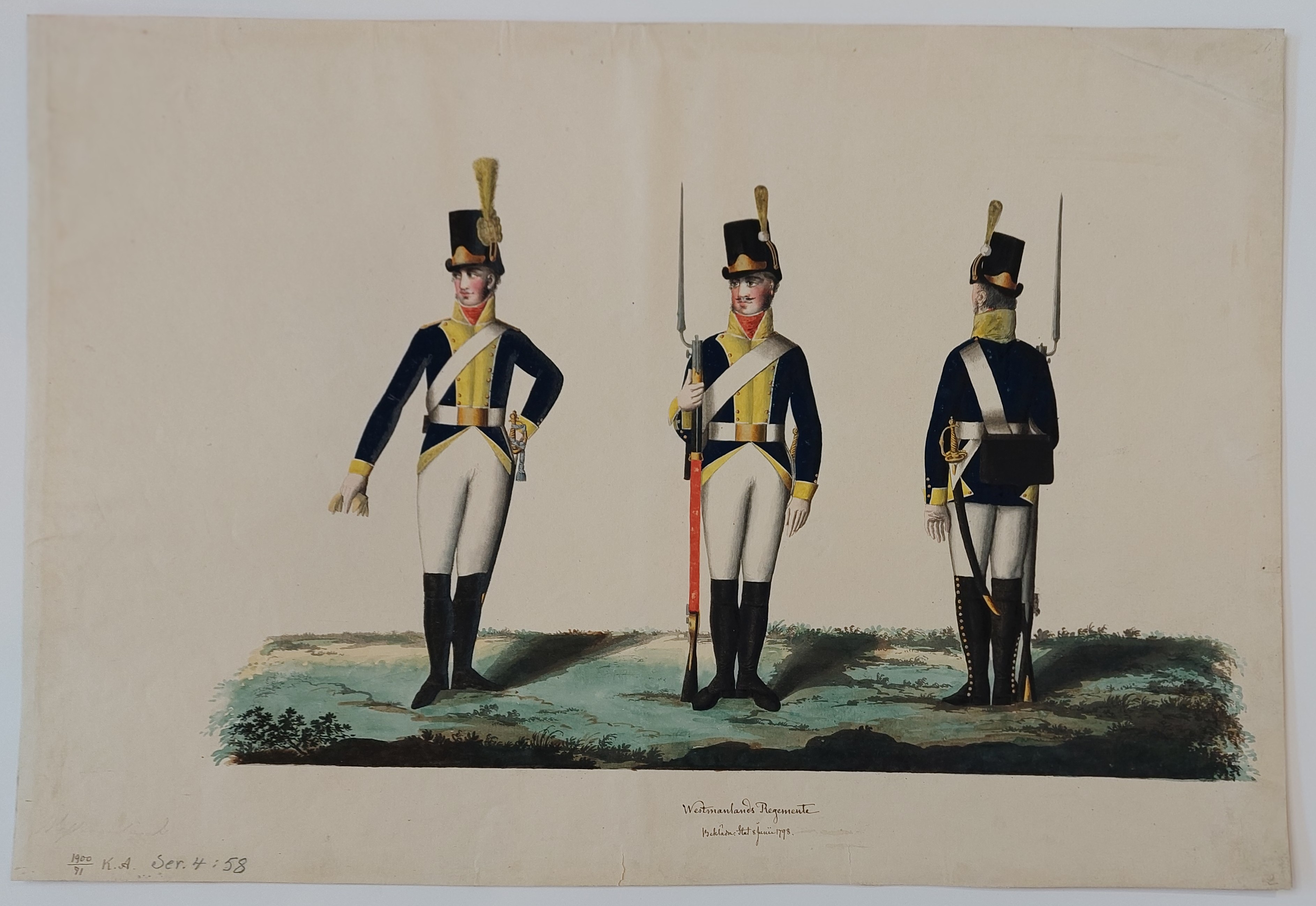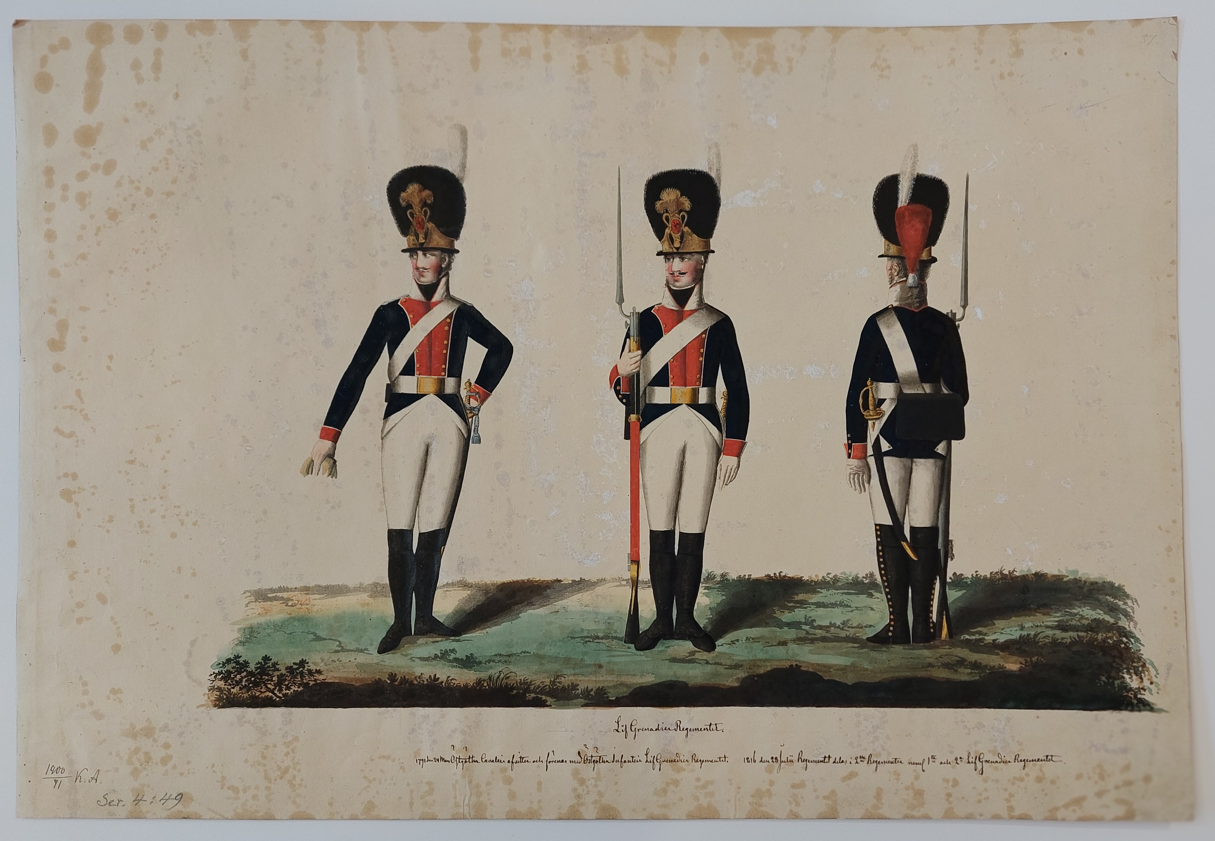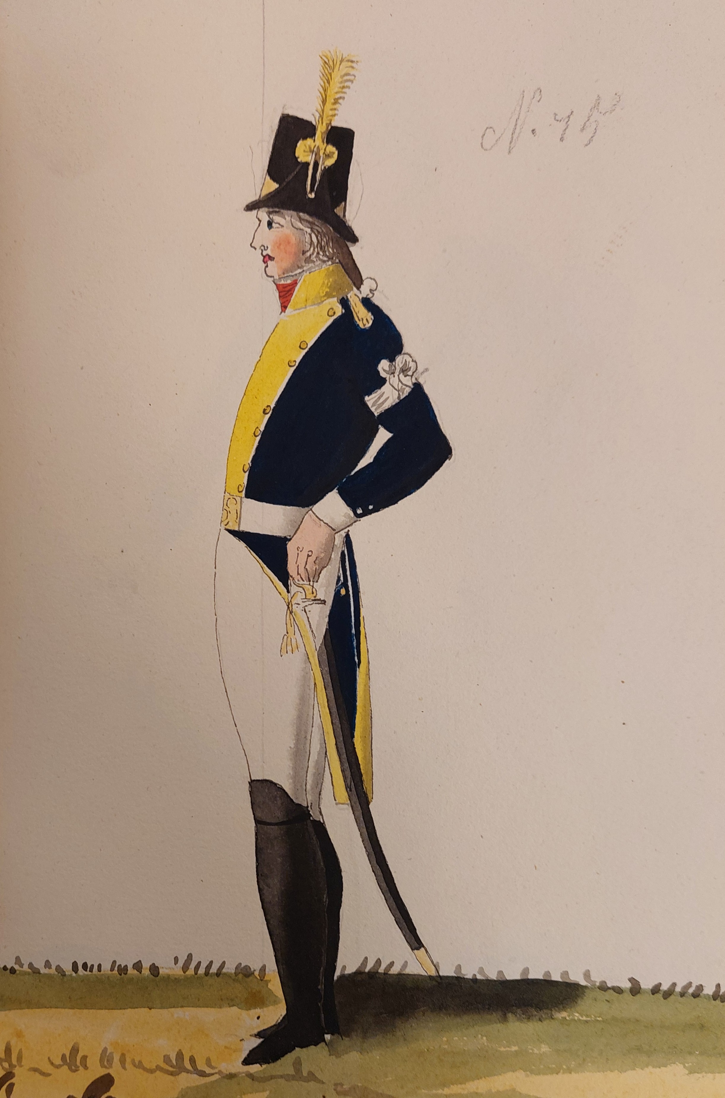 Beskuren uniformsritning daterad till 1806.