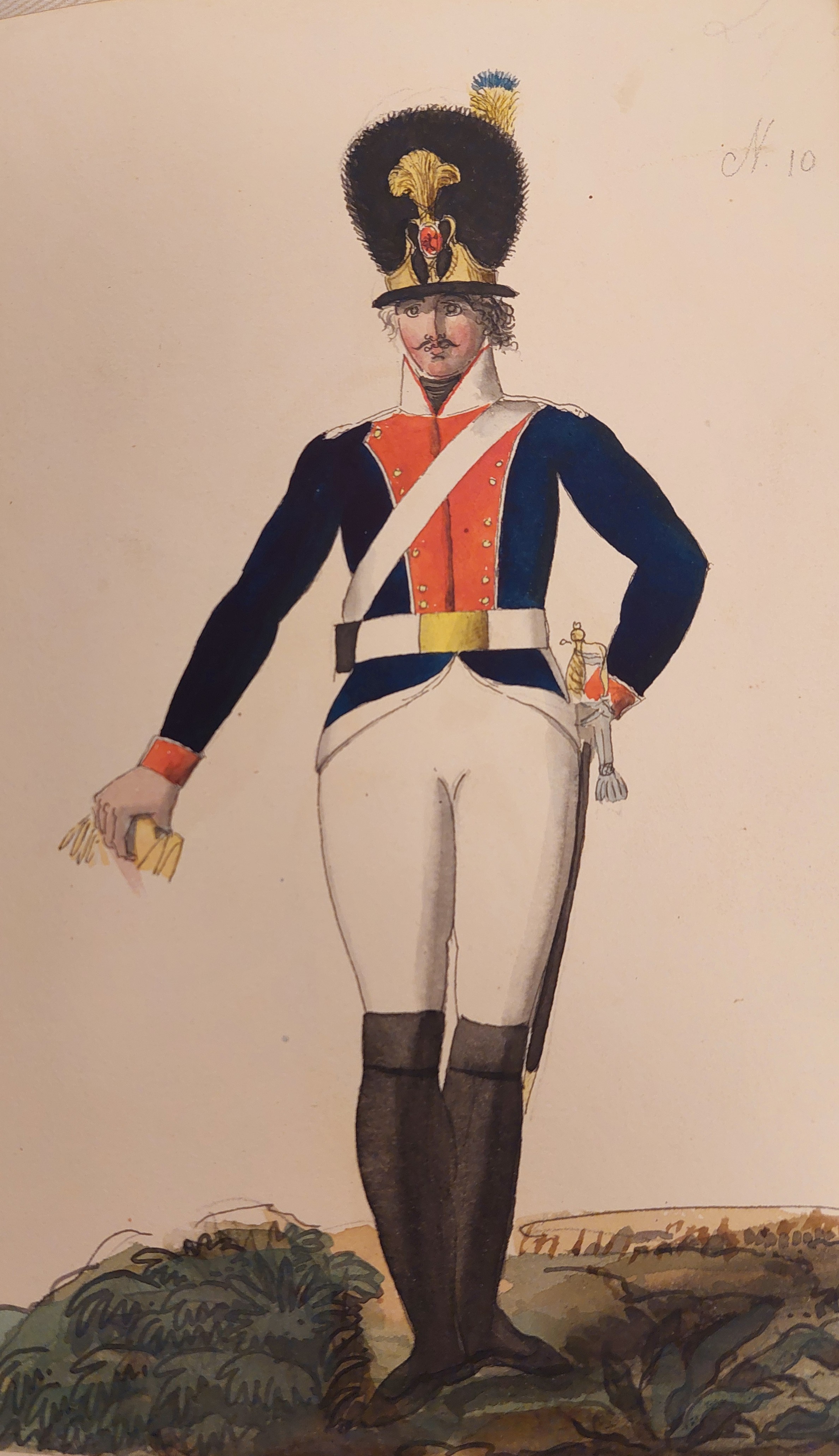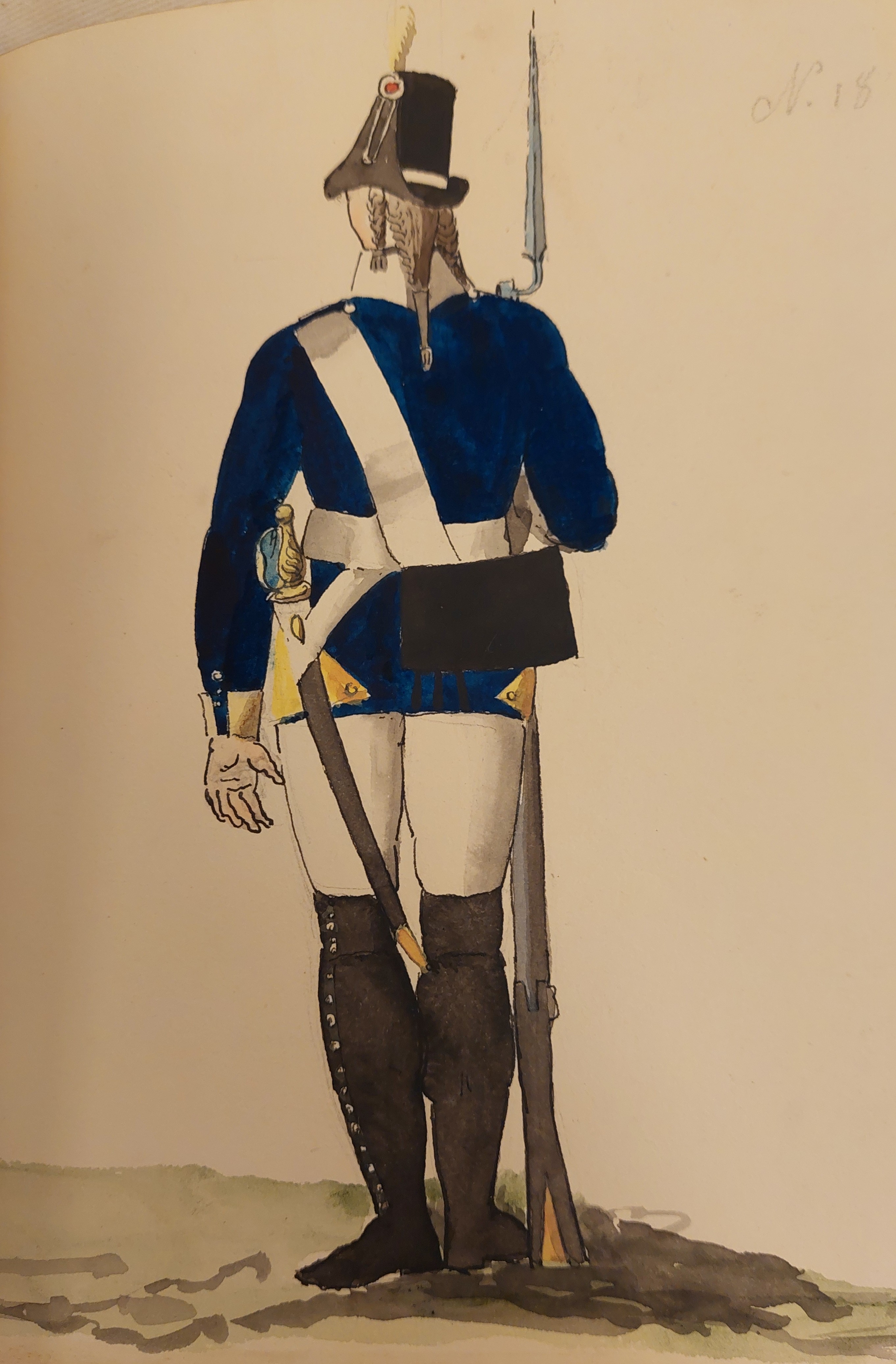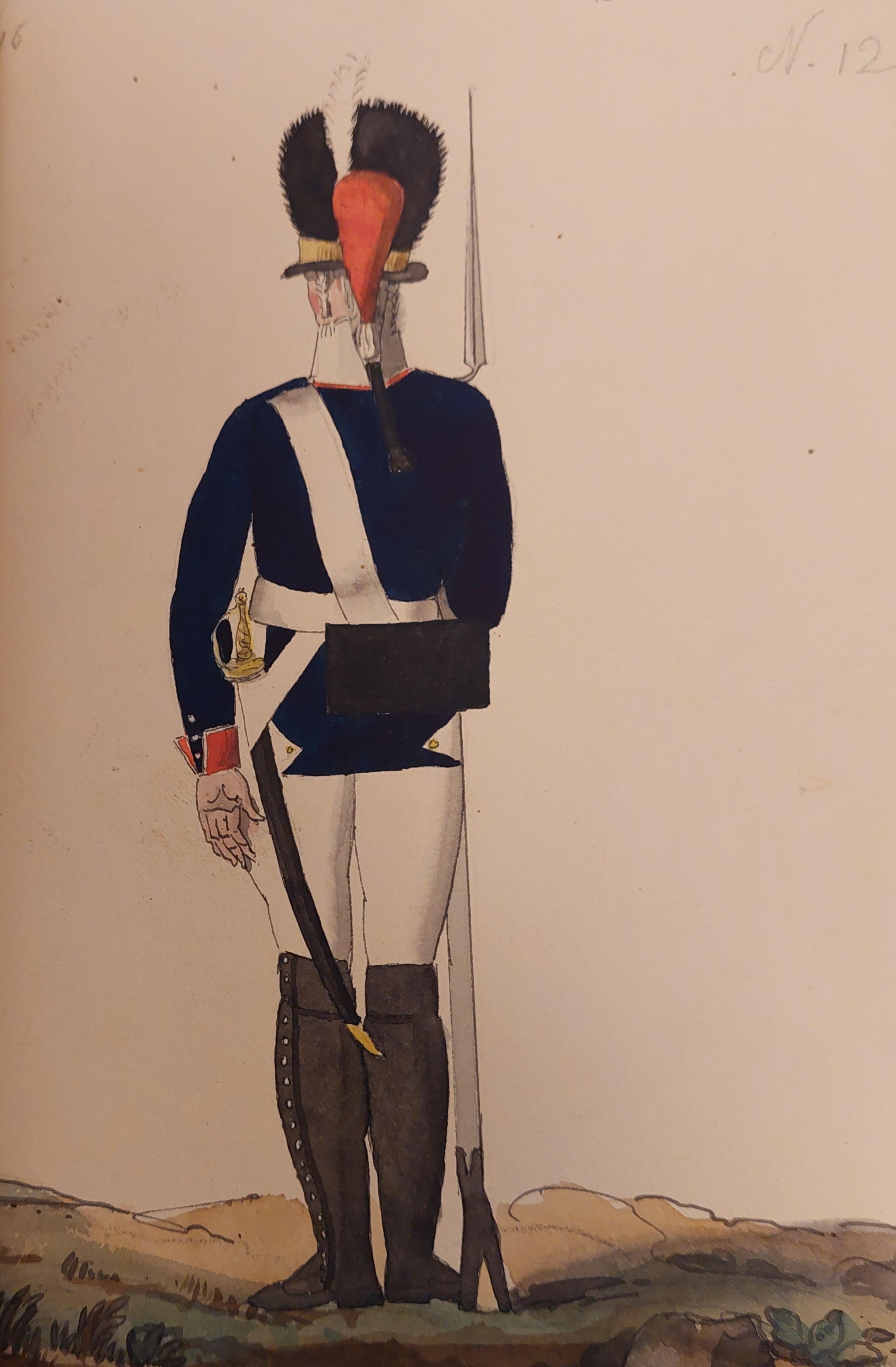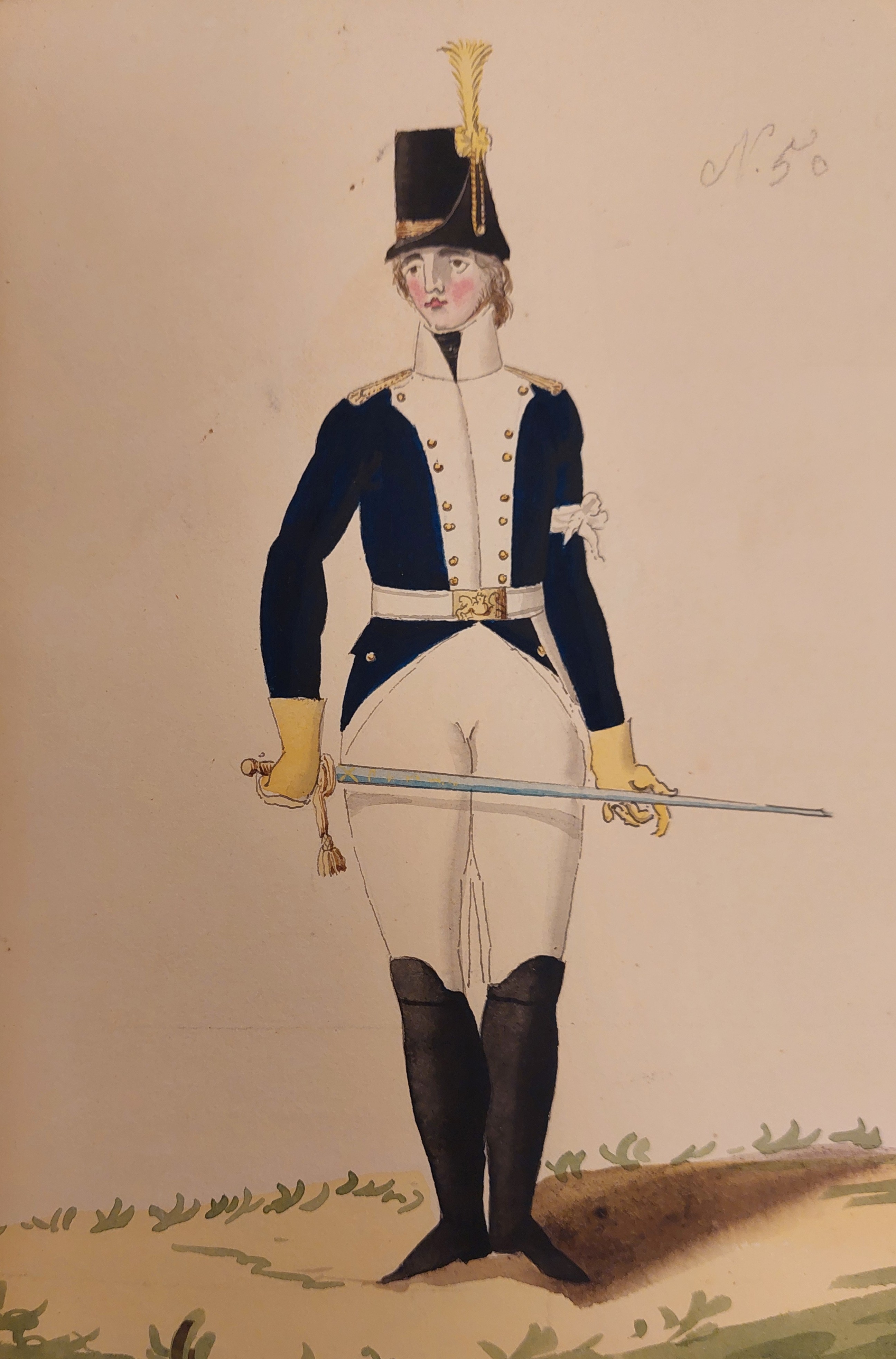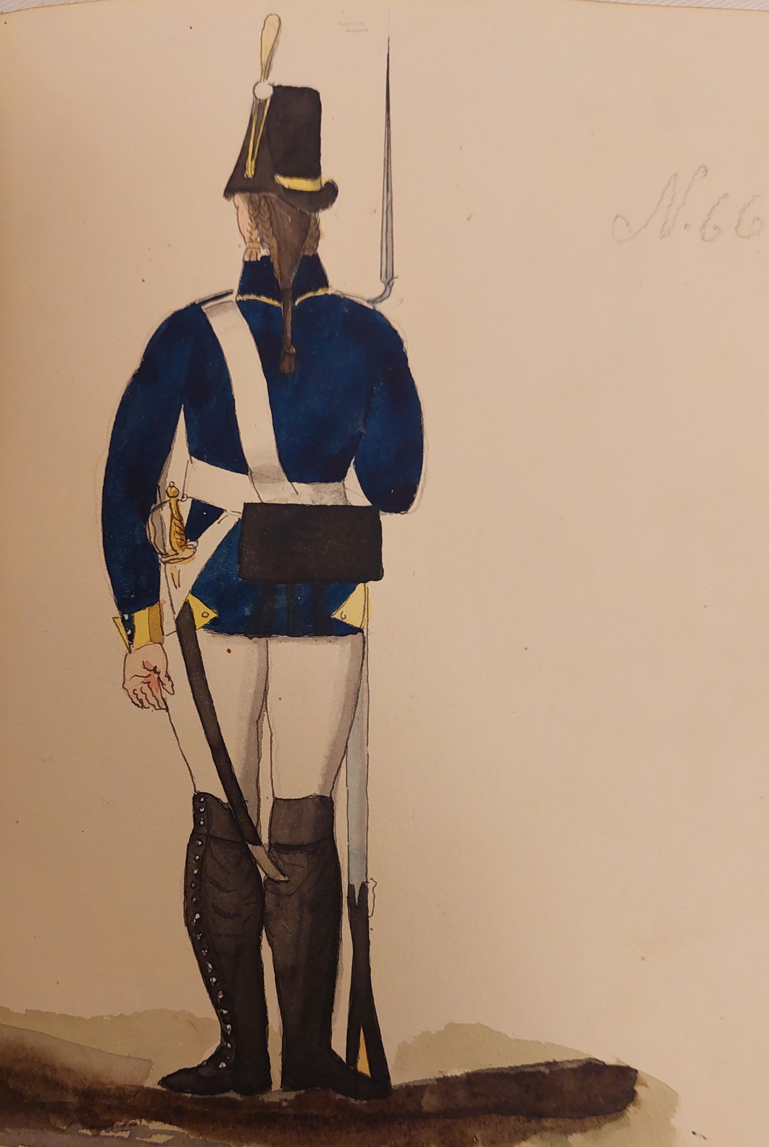 Beskuren uniformsritning daterad till 1806.