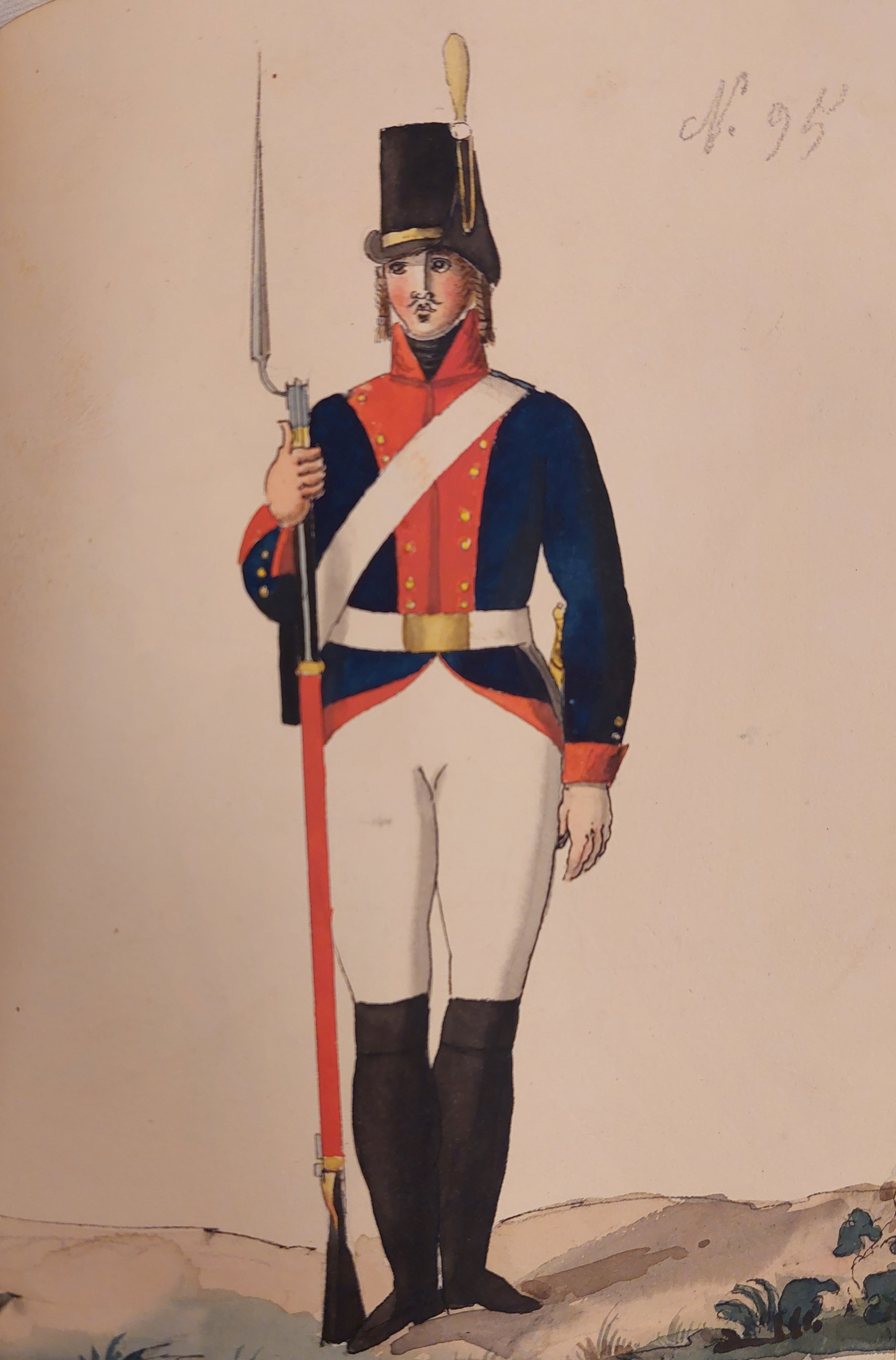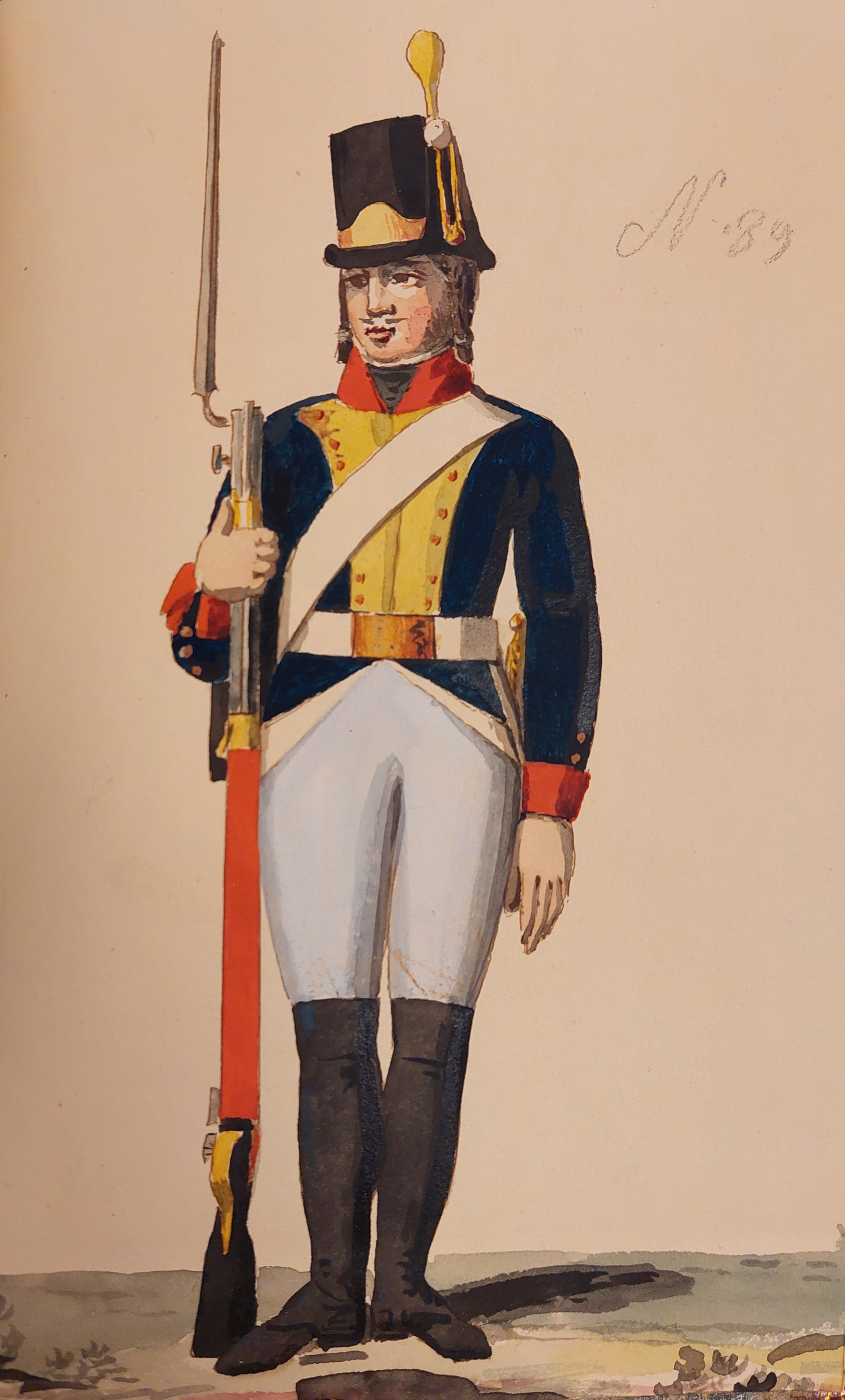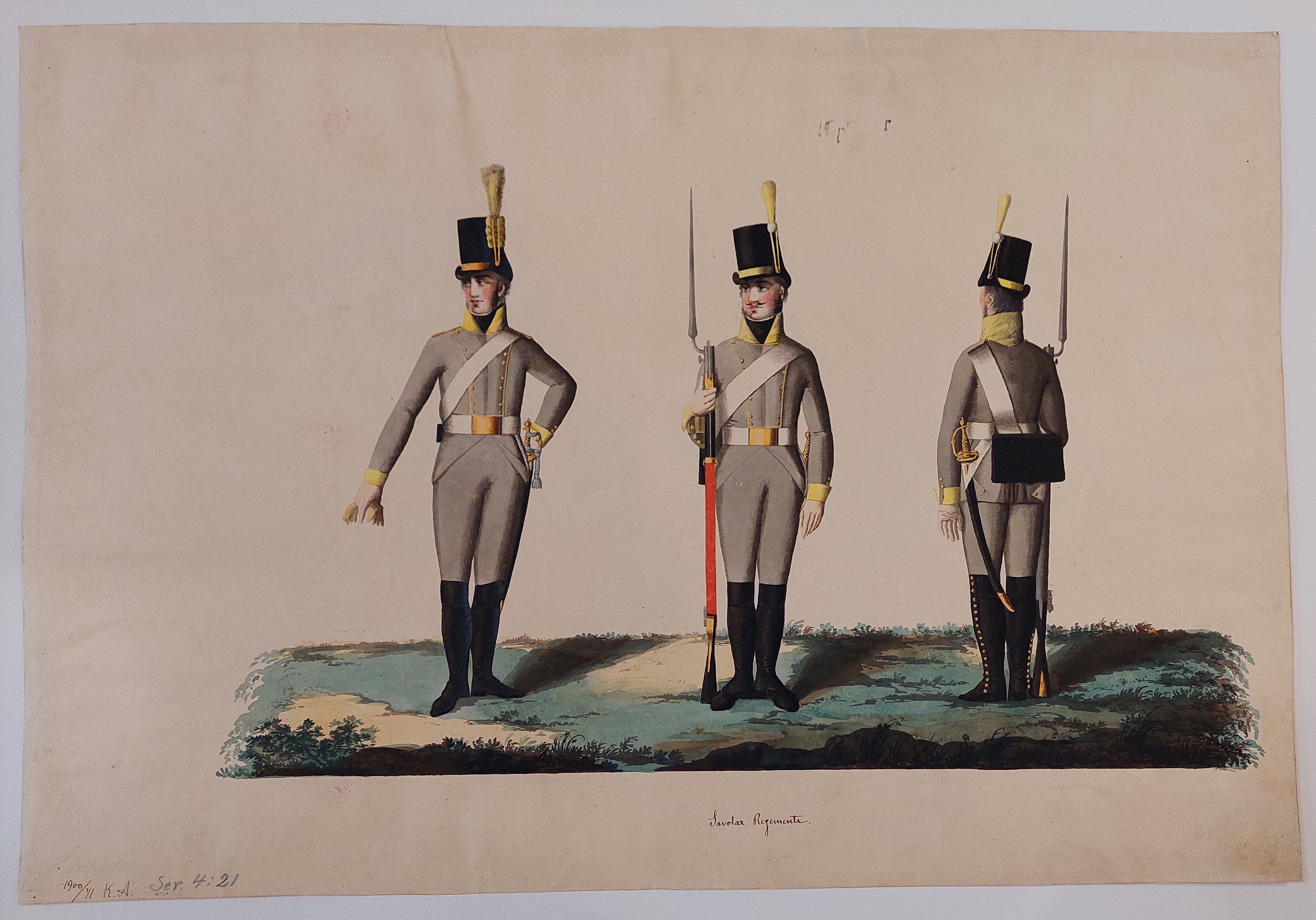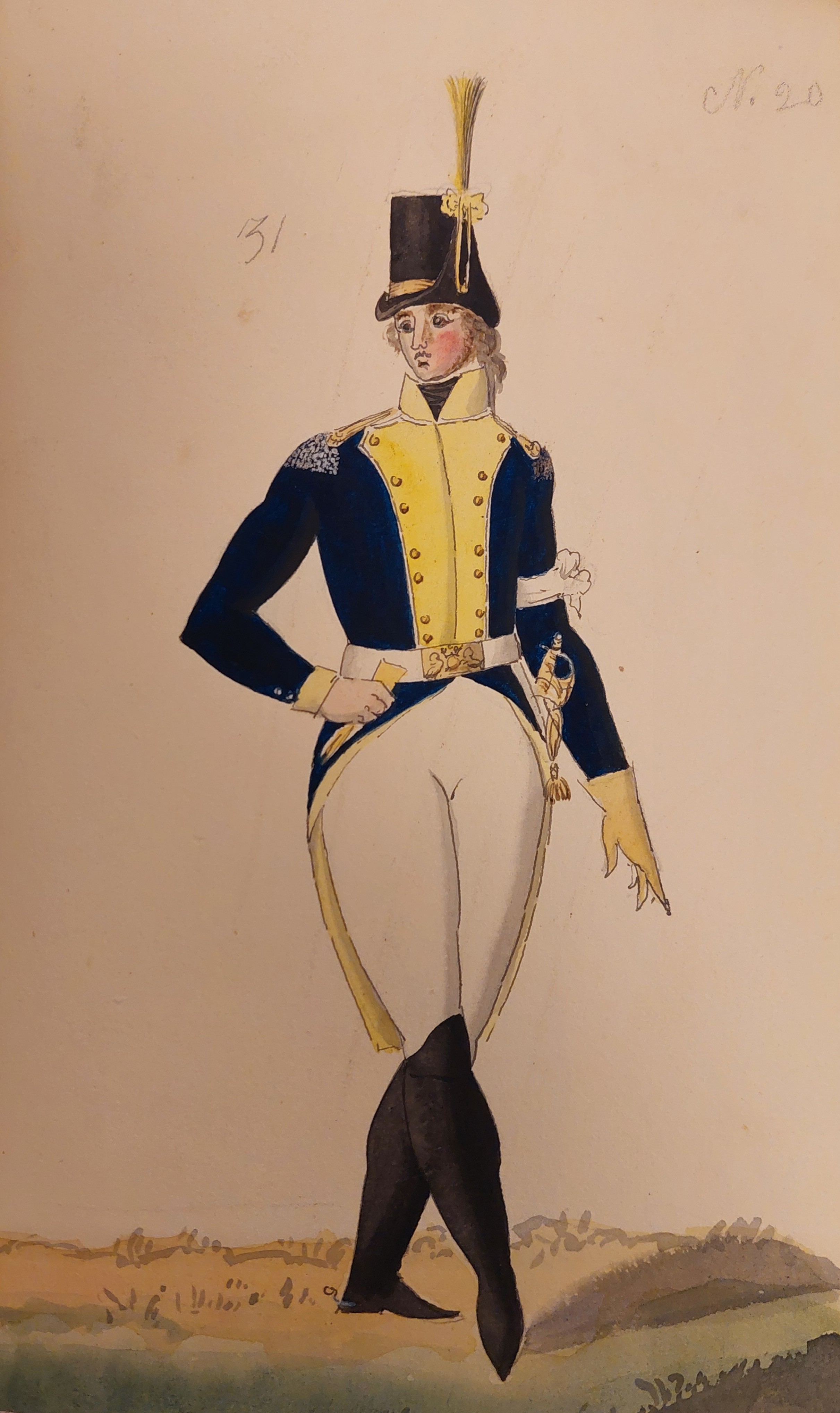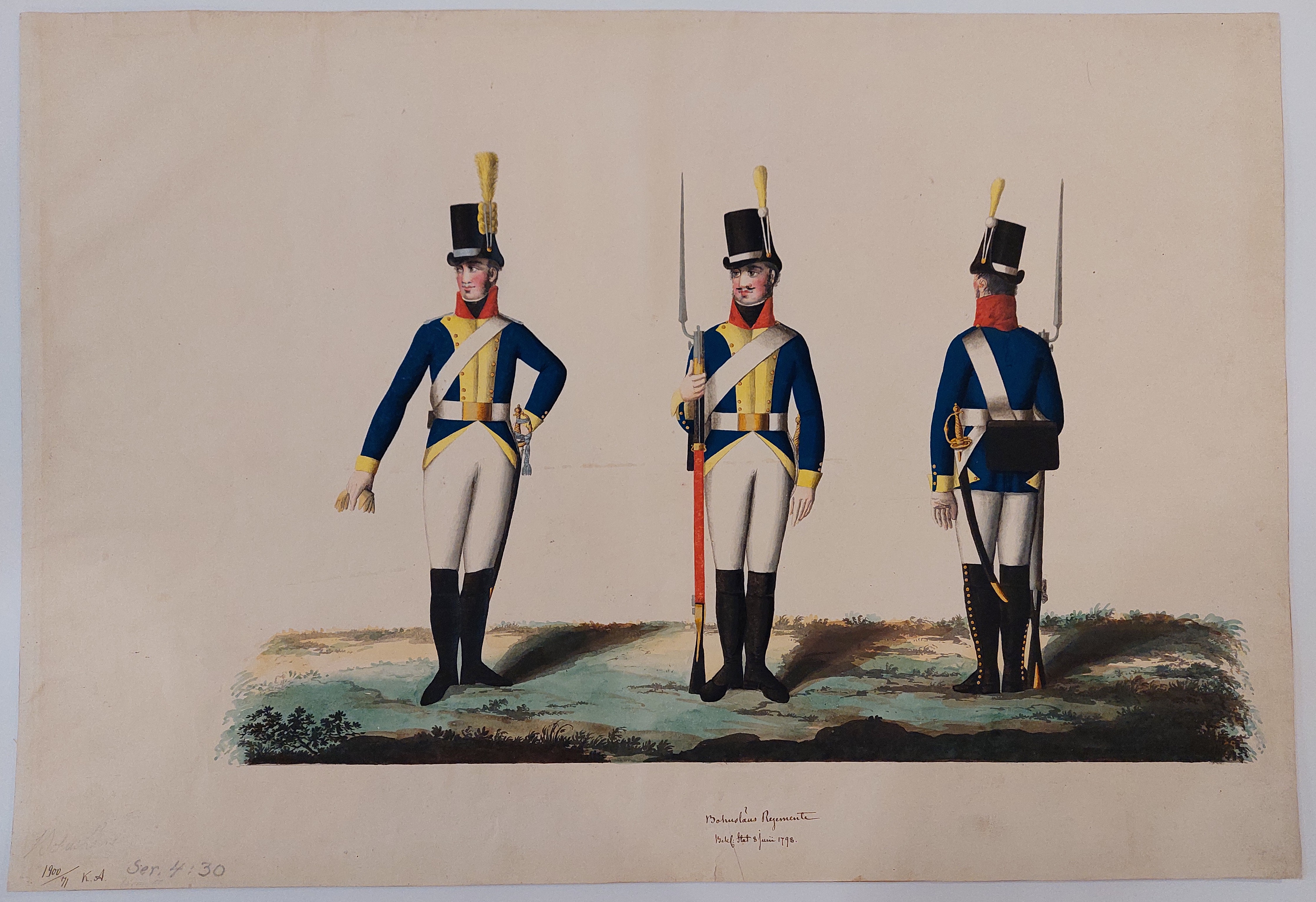 Beskuren uniformsritning daterad till 1806.