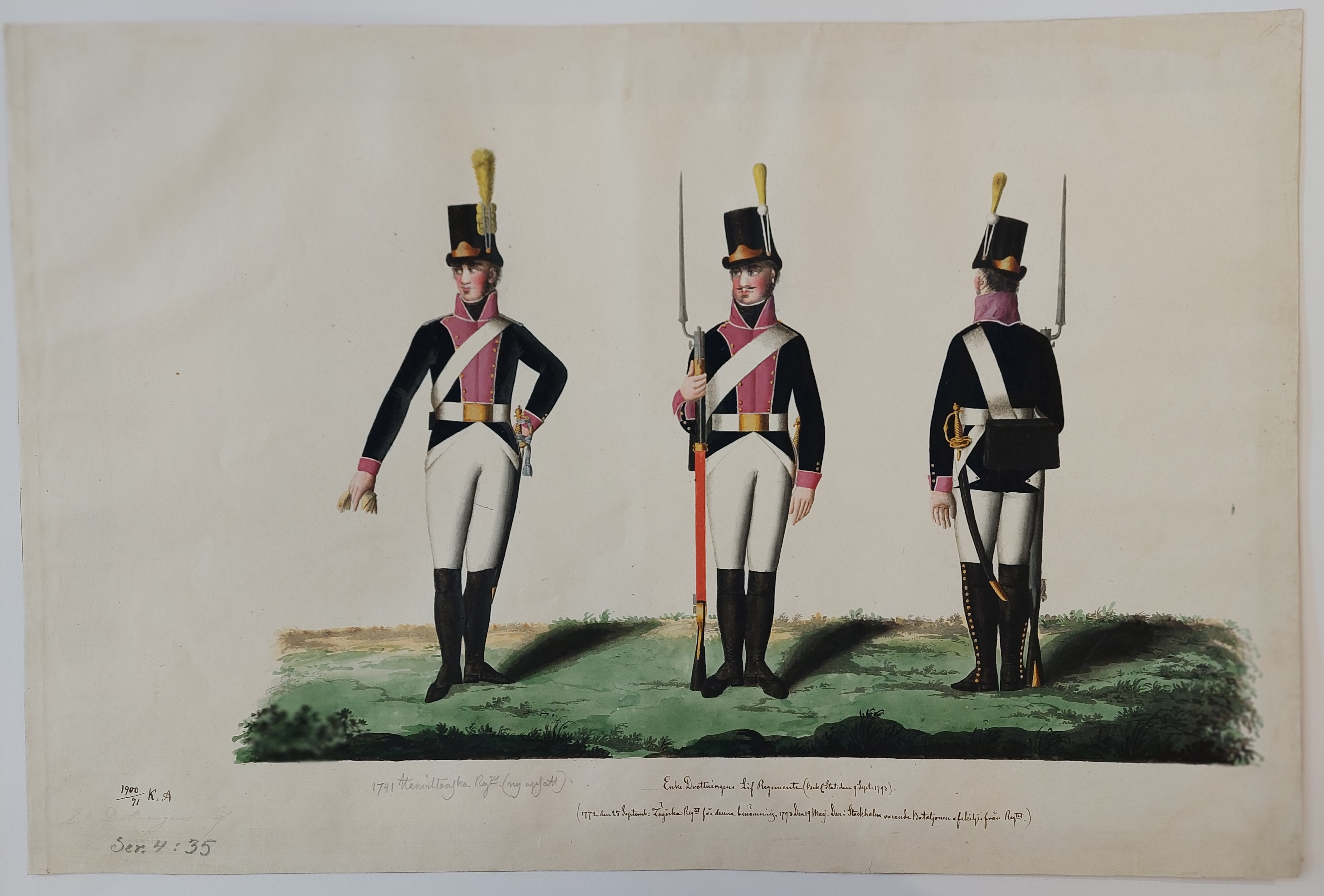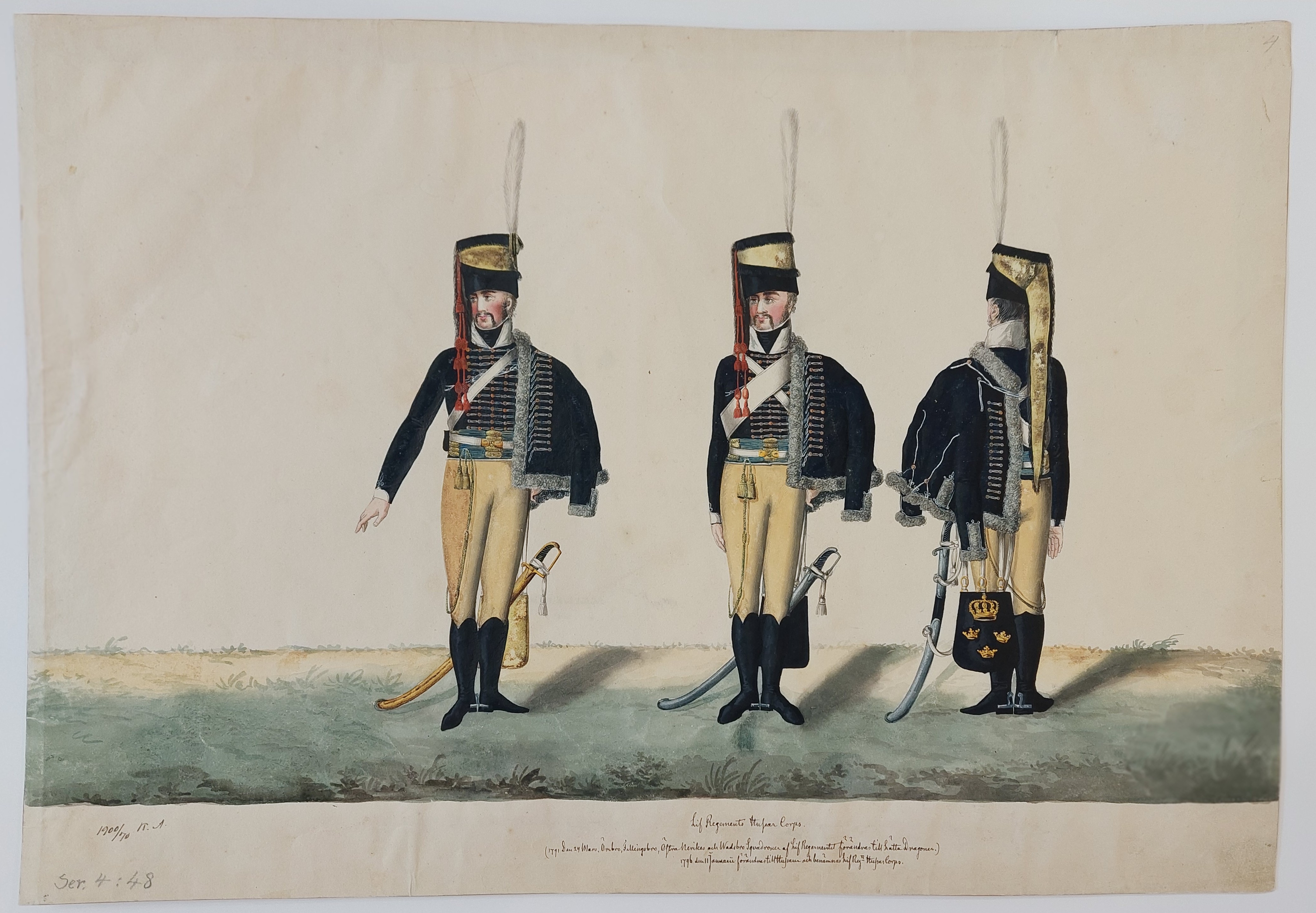 är de identiska med Runges bilder på Svea livgarde. Hattplymernas färger