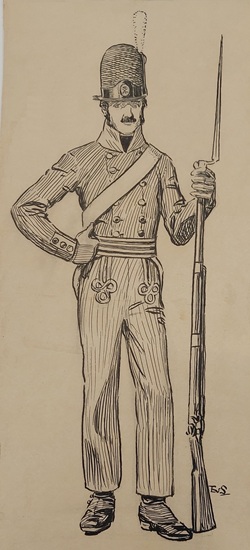 skinnskoning i skrevet på de grå långbyxorna med m/1810. Manskapet fick