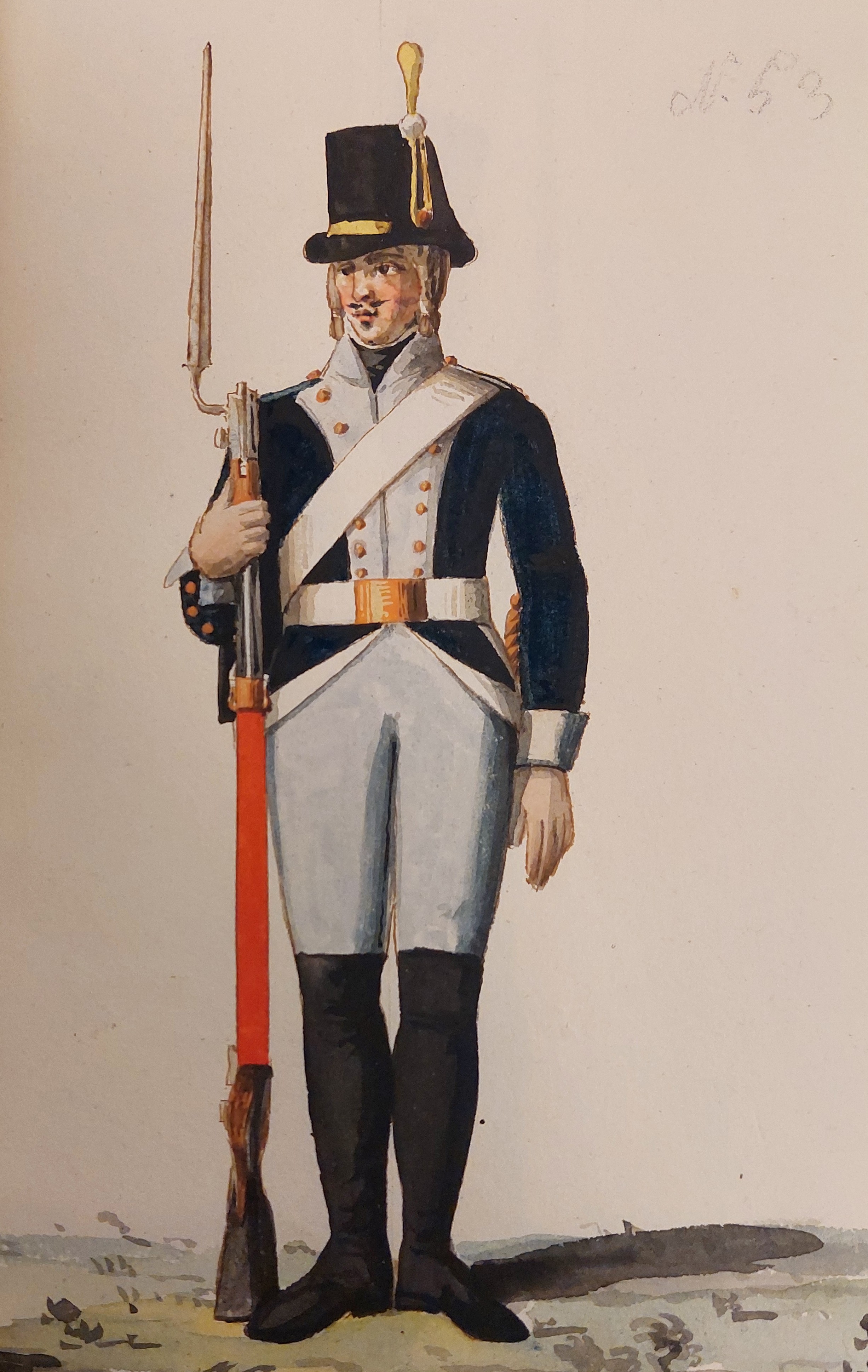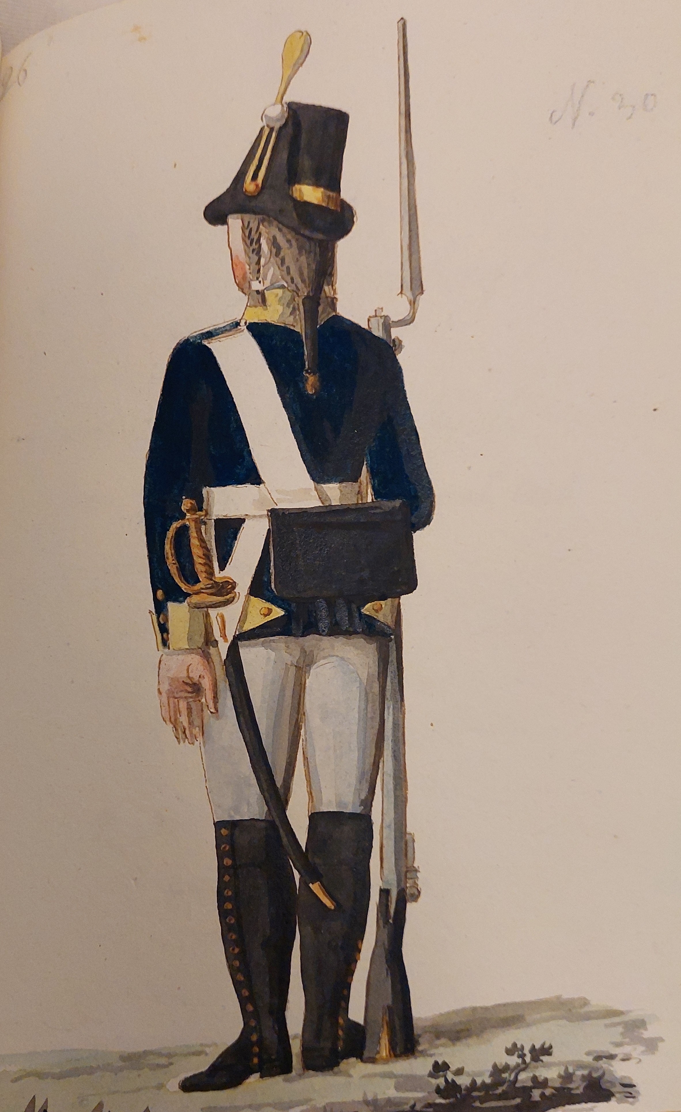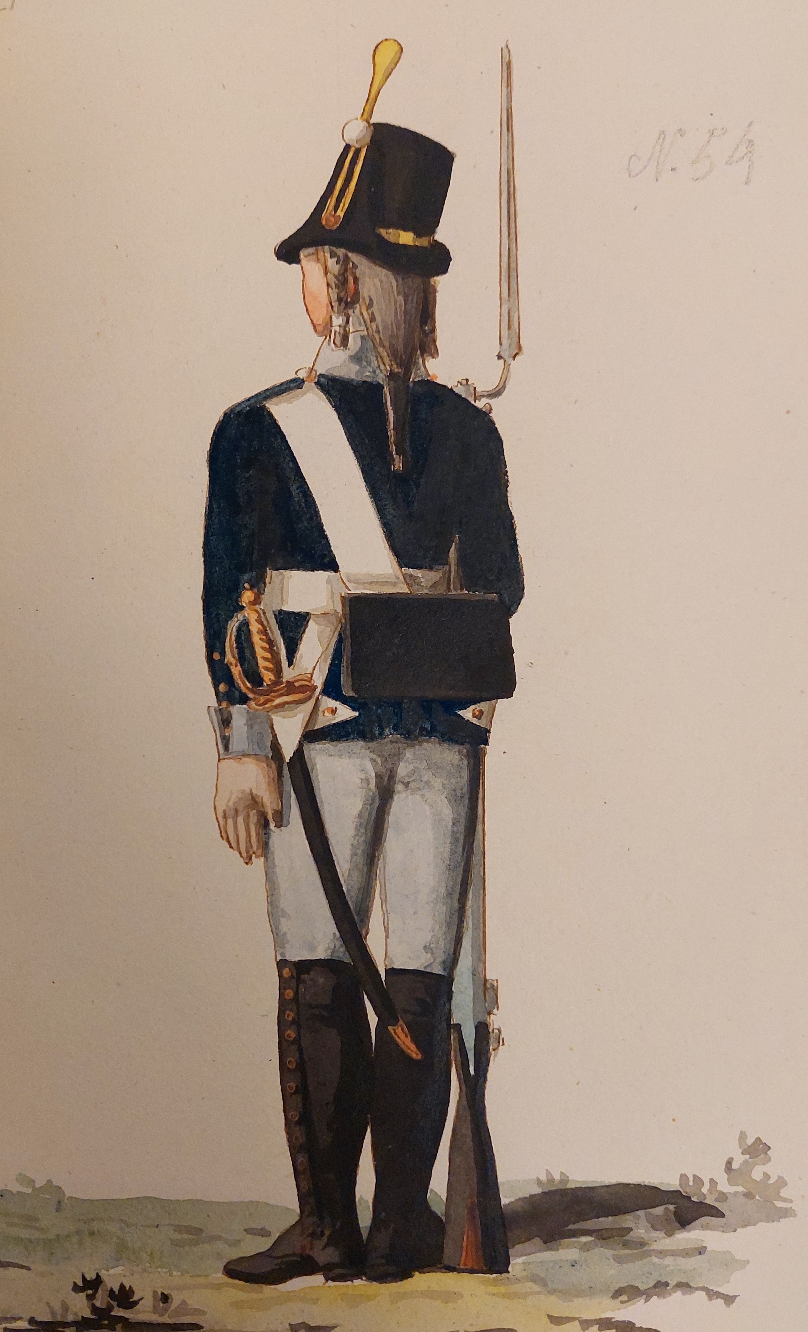 Gillbergs senare plansch (ovan) är det bara underofficerens hatt som har