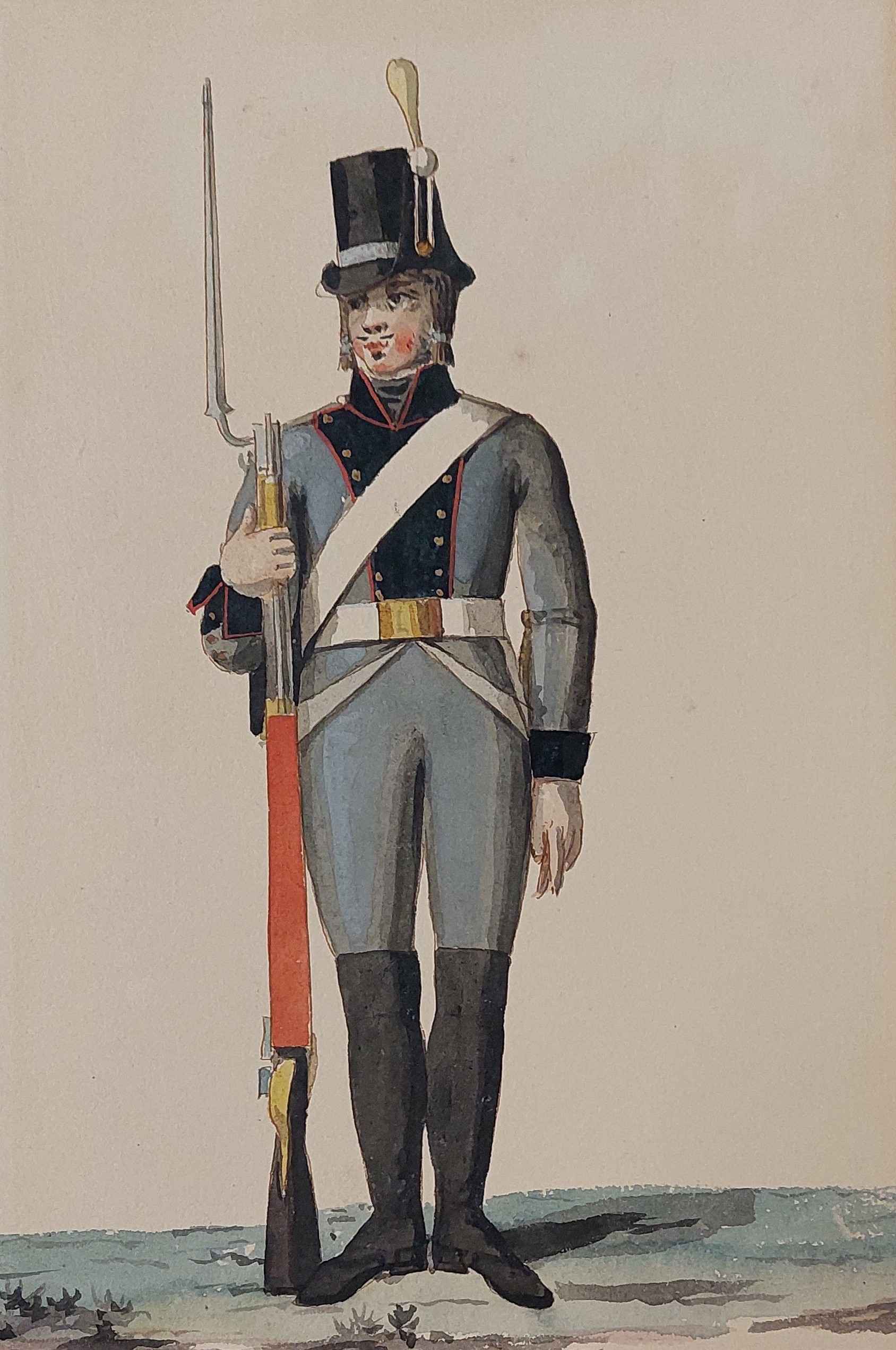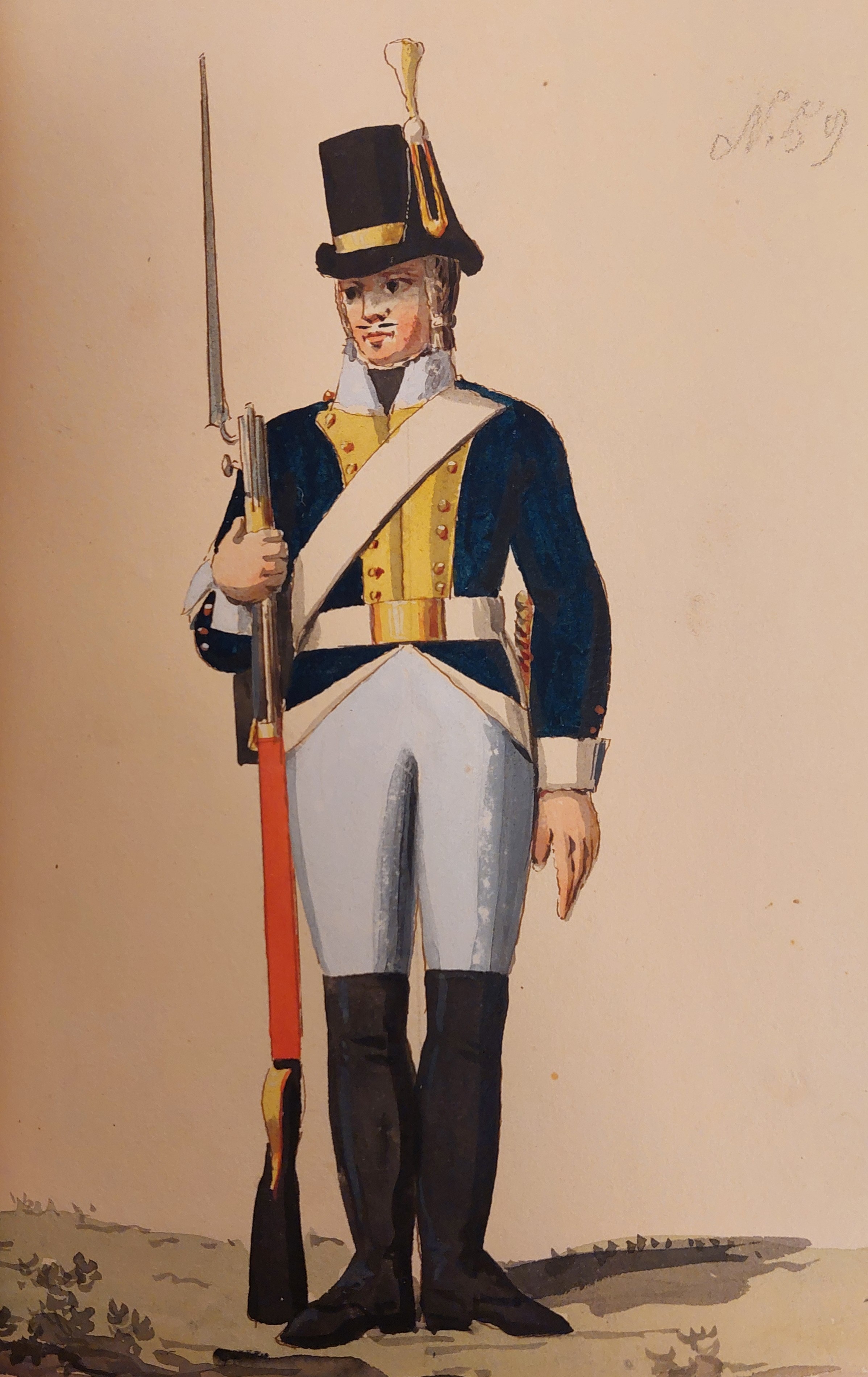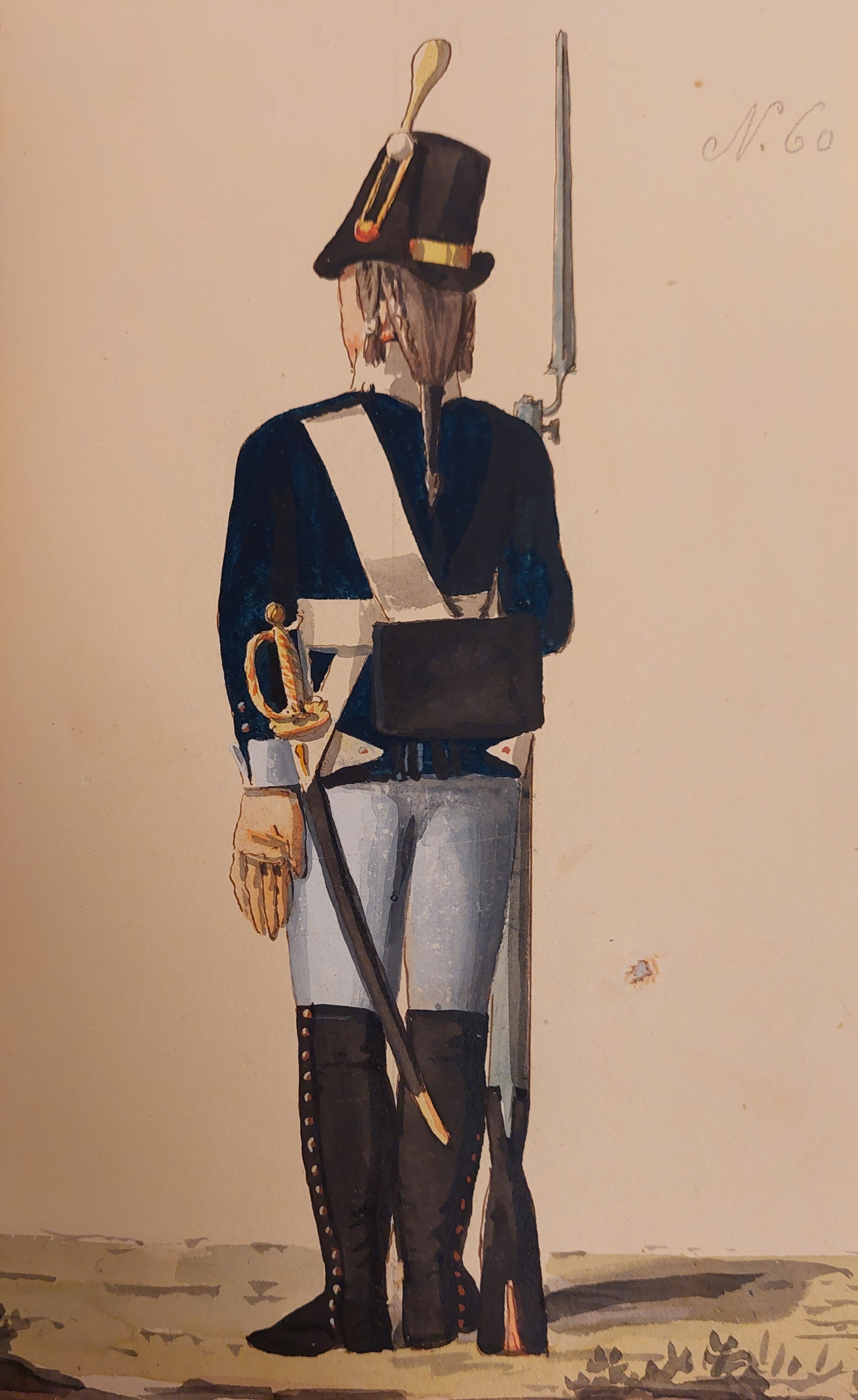 Gillbergs senare plansch (ovan) är det bara underofficerens hatt som har