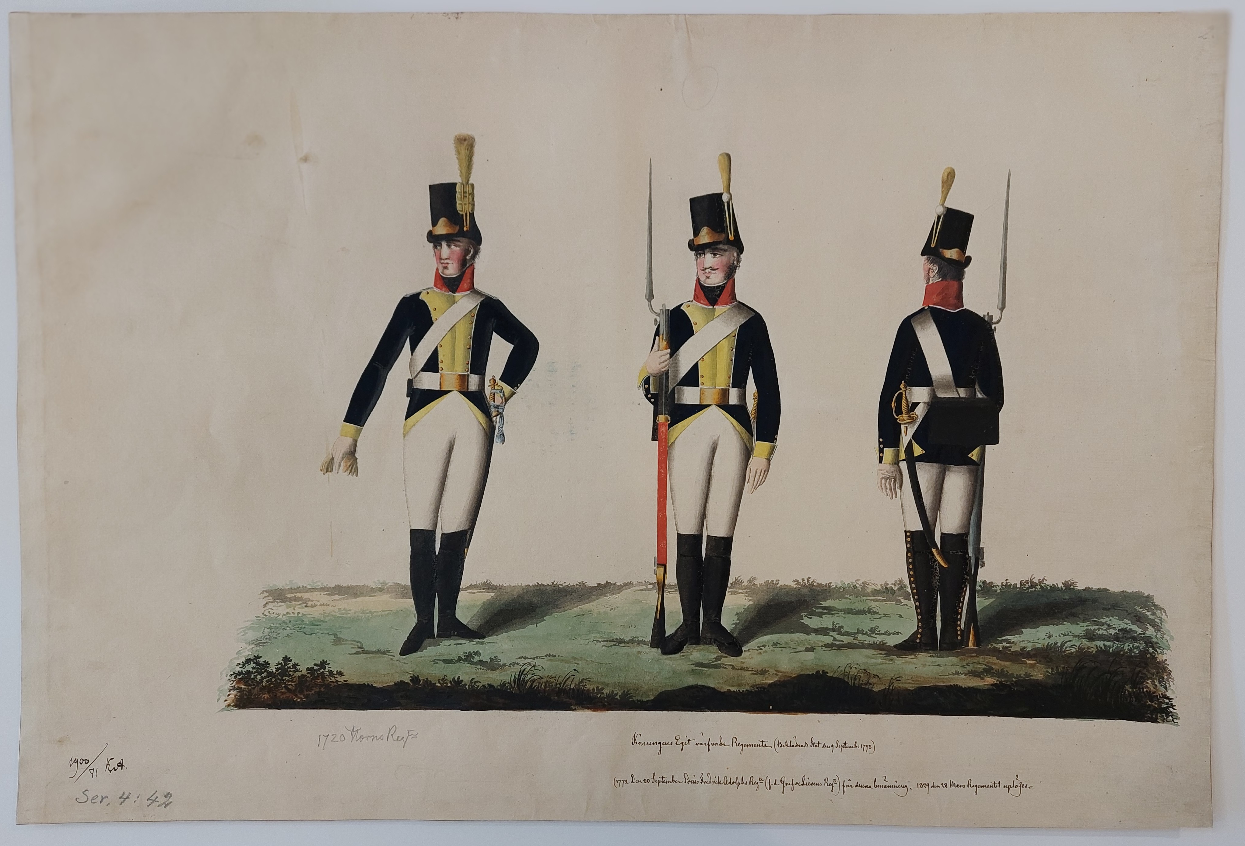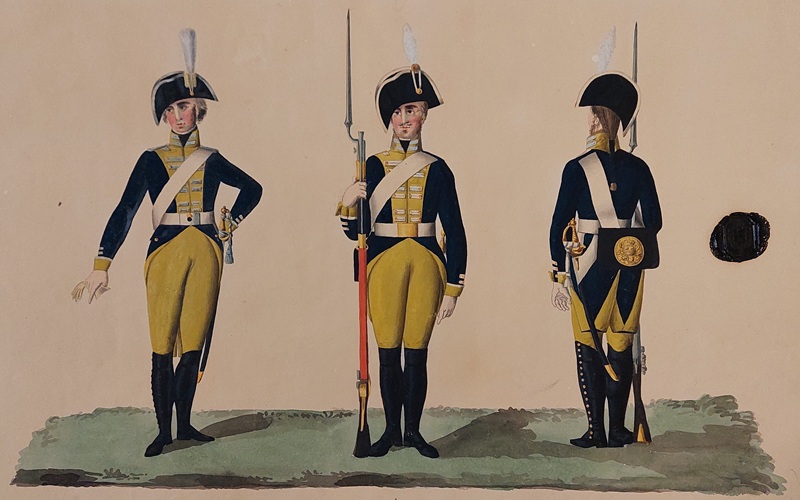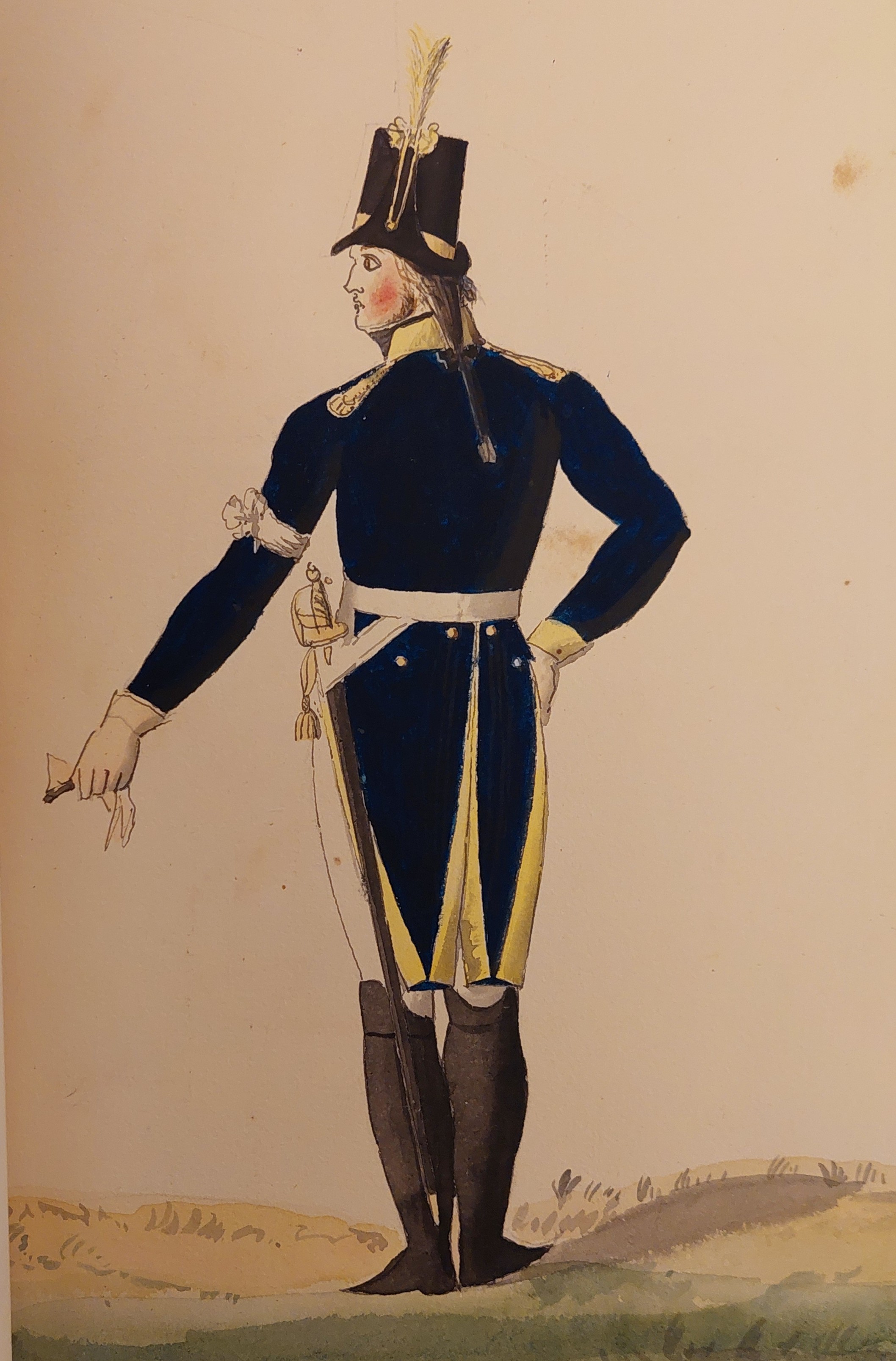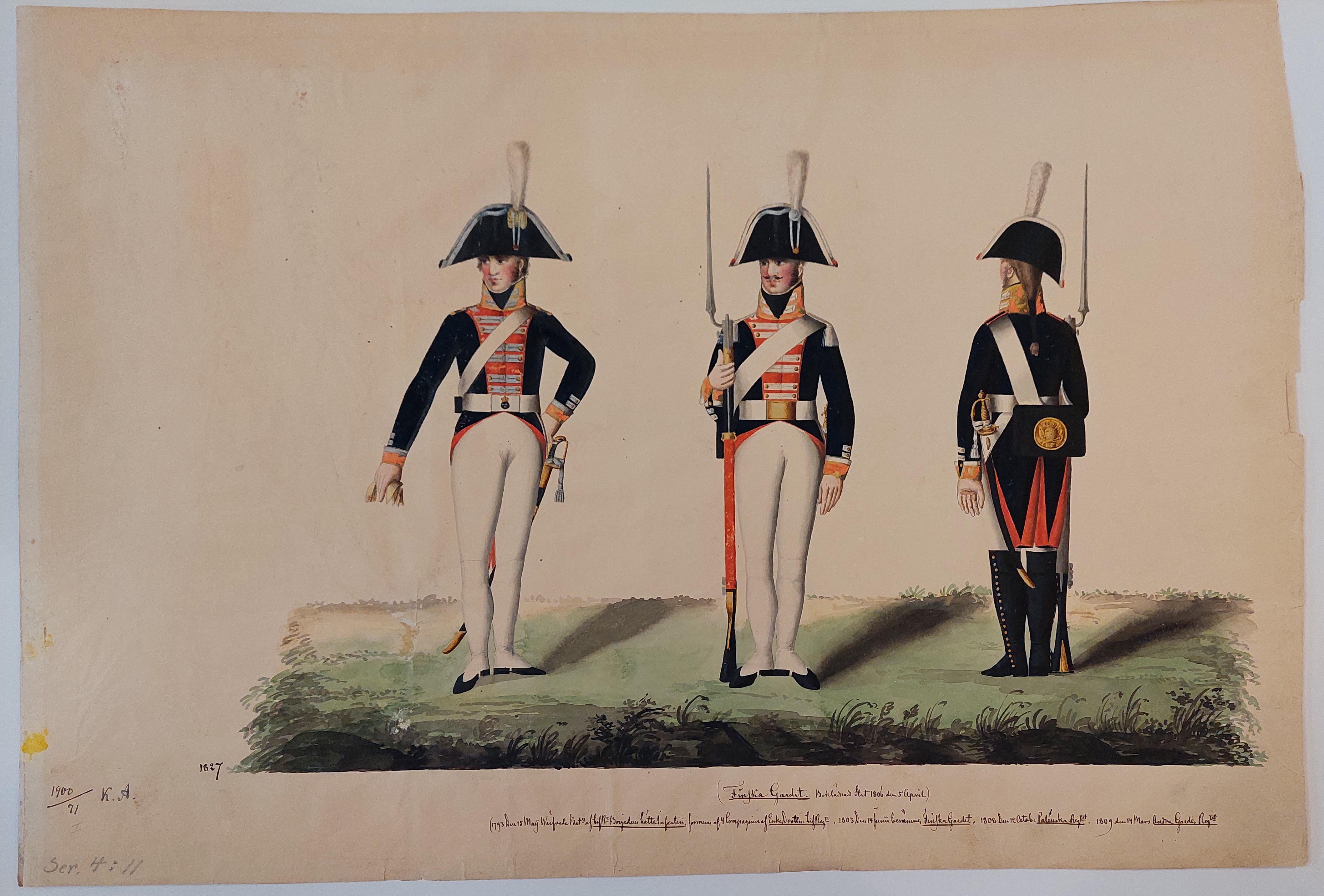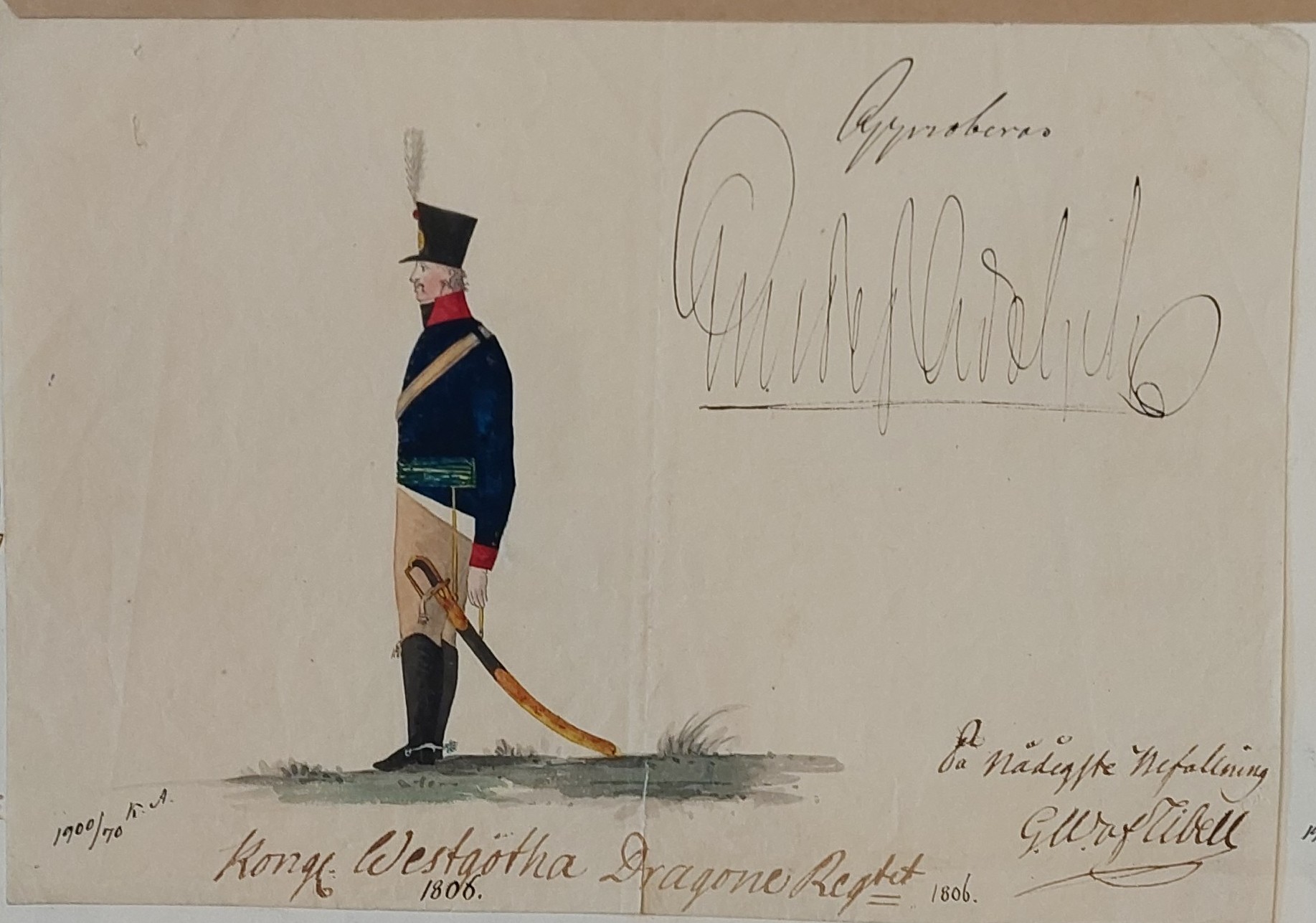 Beskuren uniformsritning daterad till 1806.