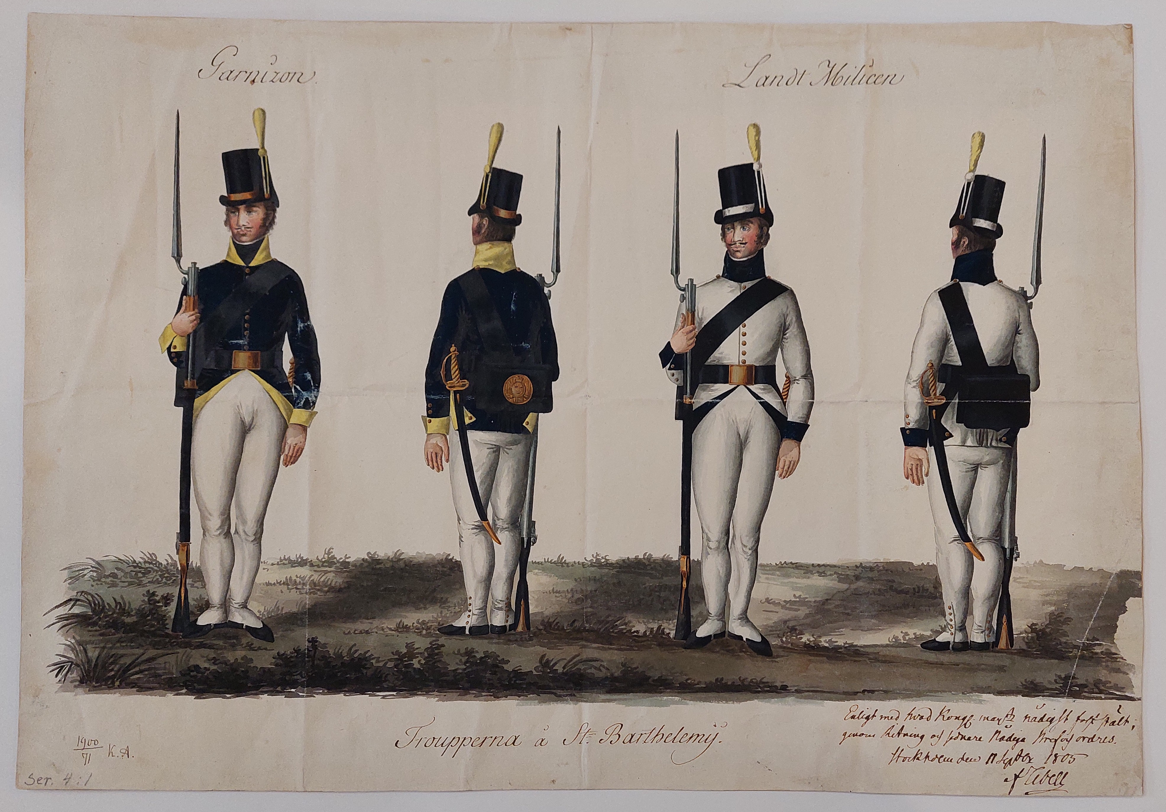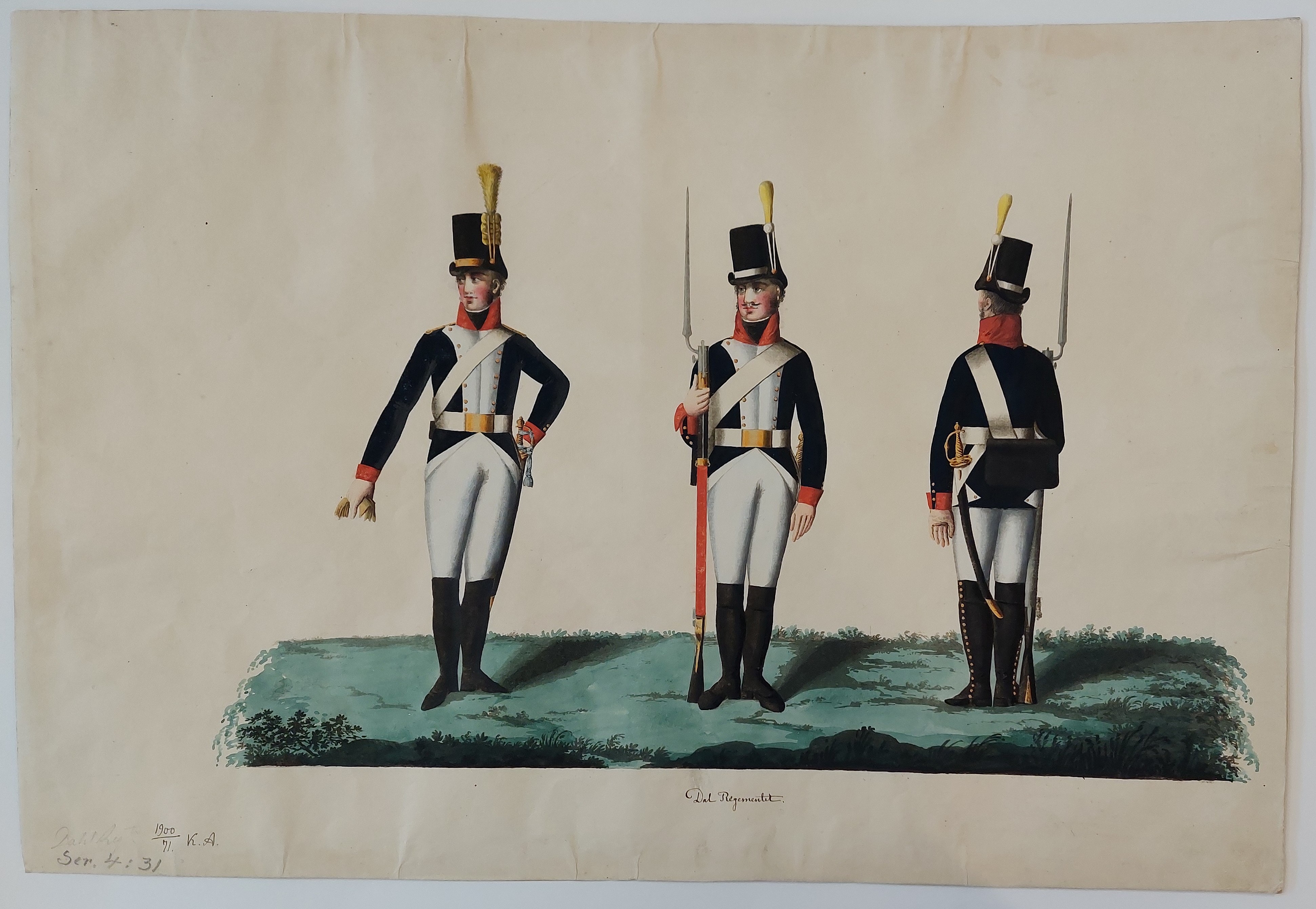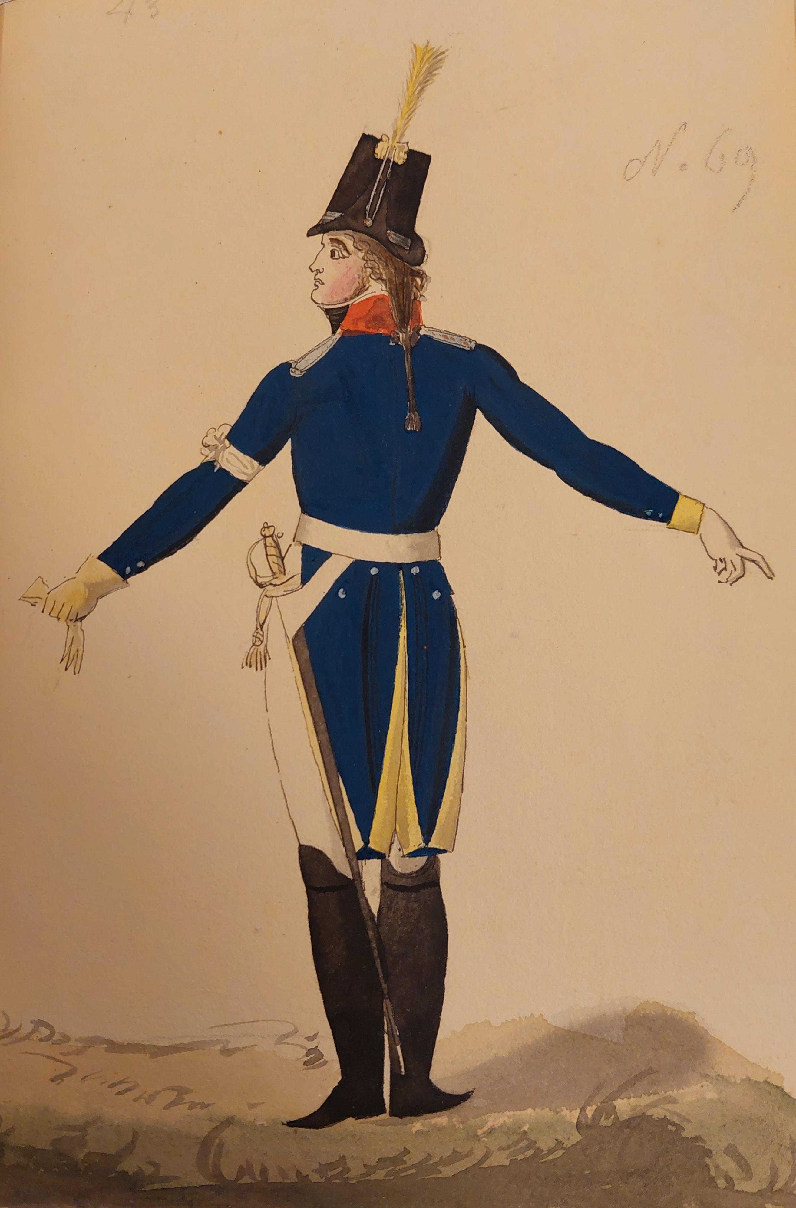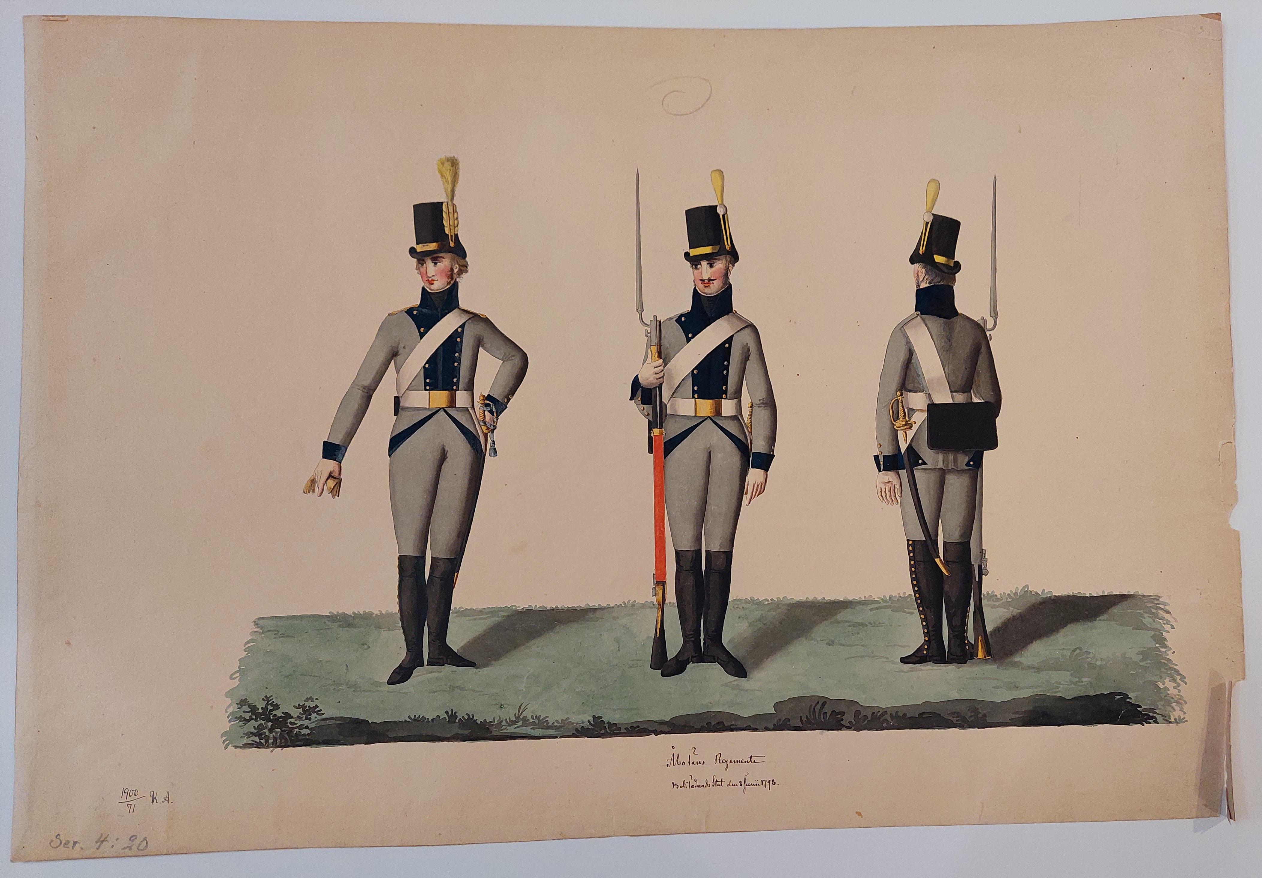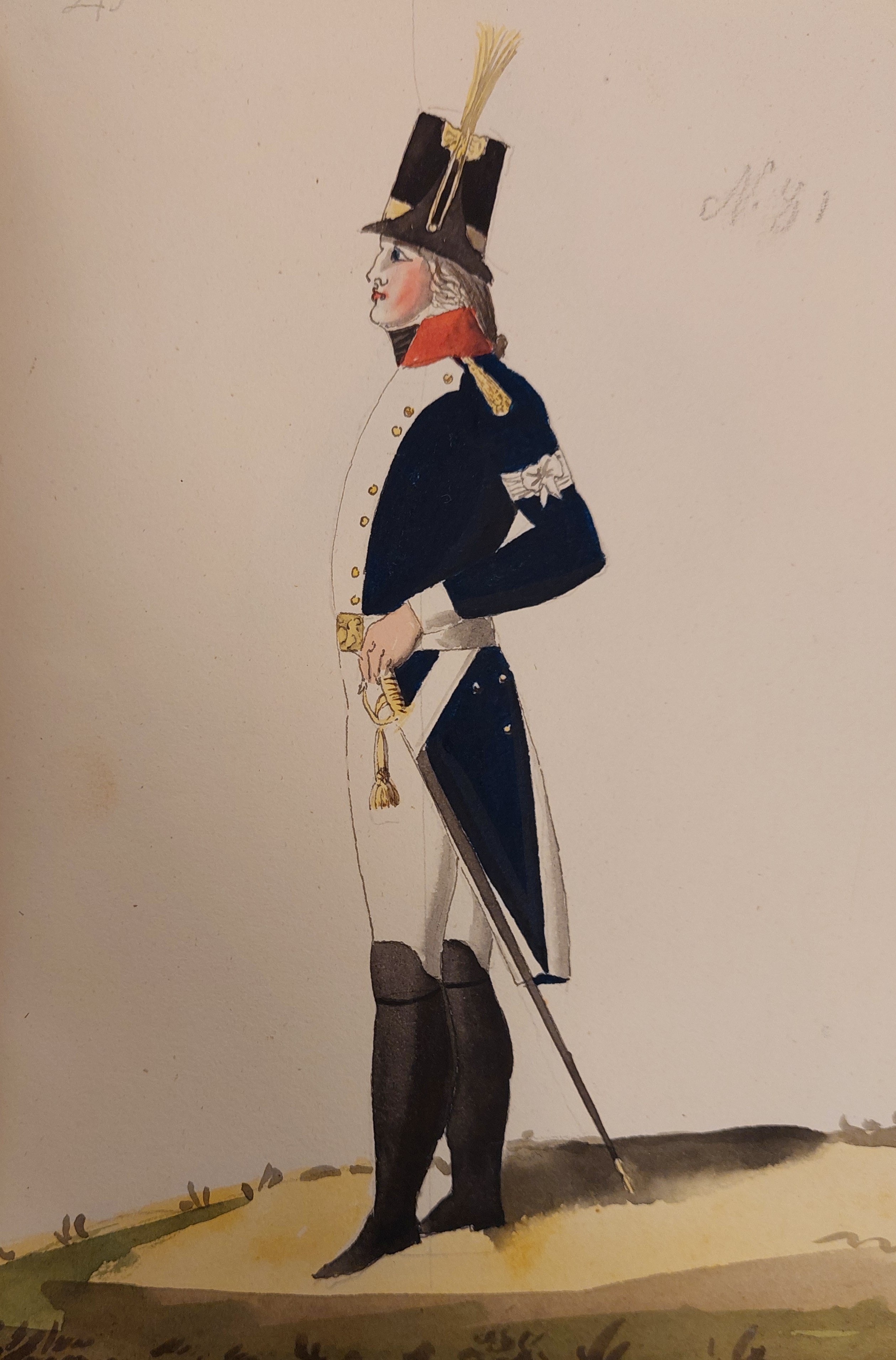 Beskuren uniformsritning daterad till 1806.