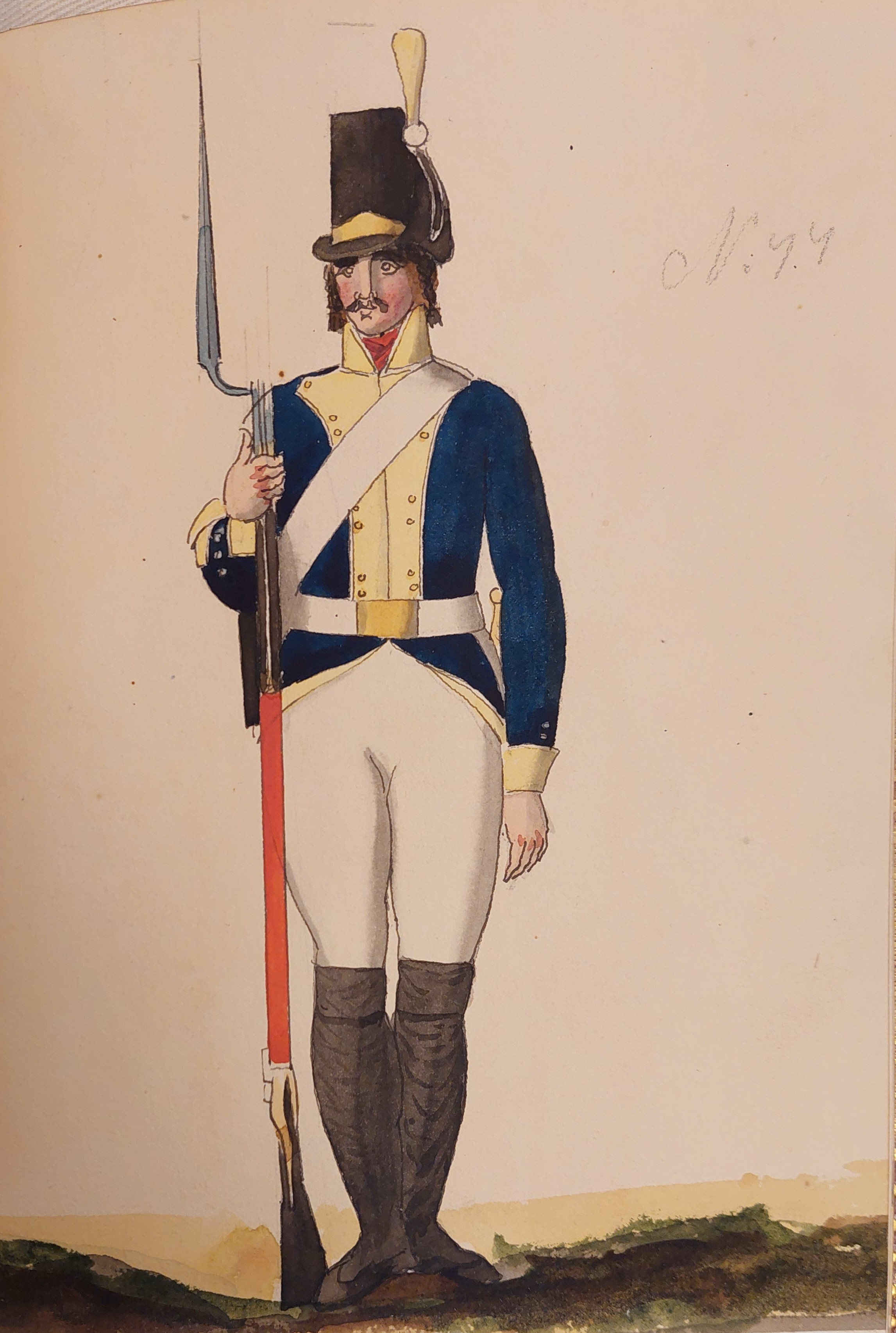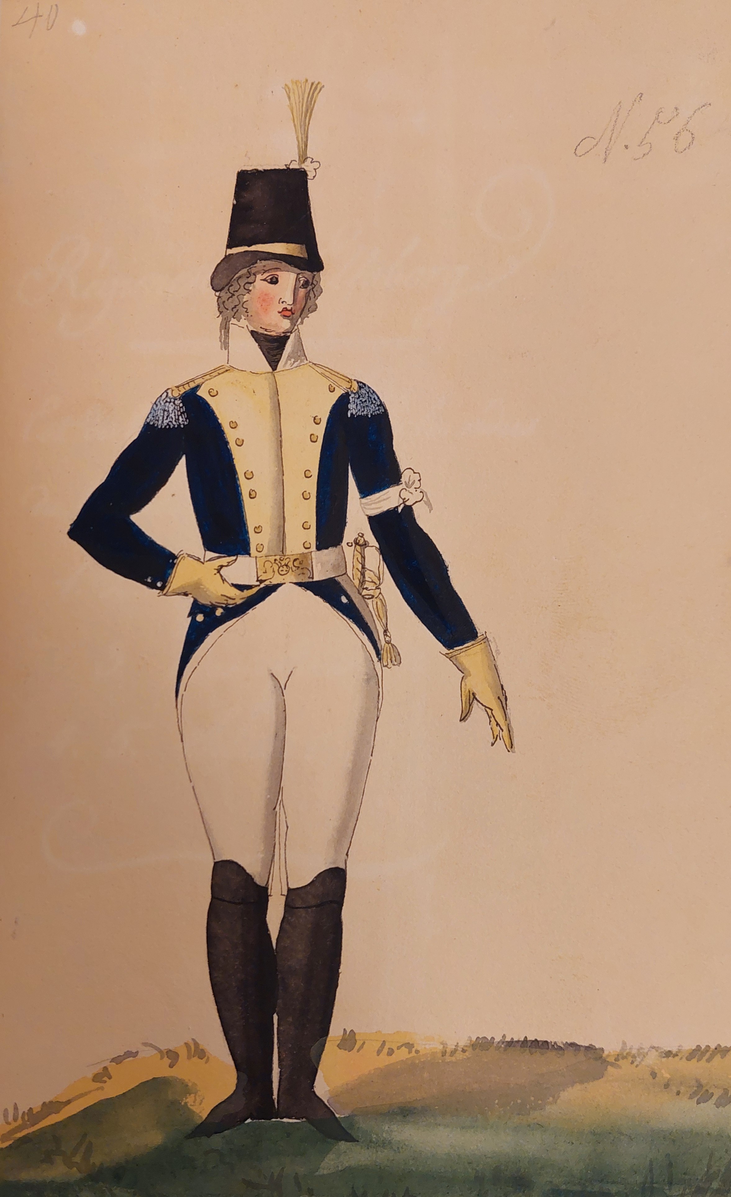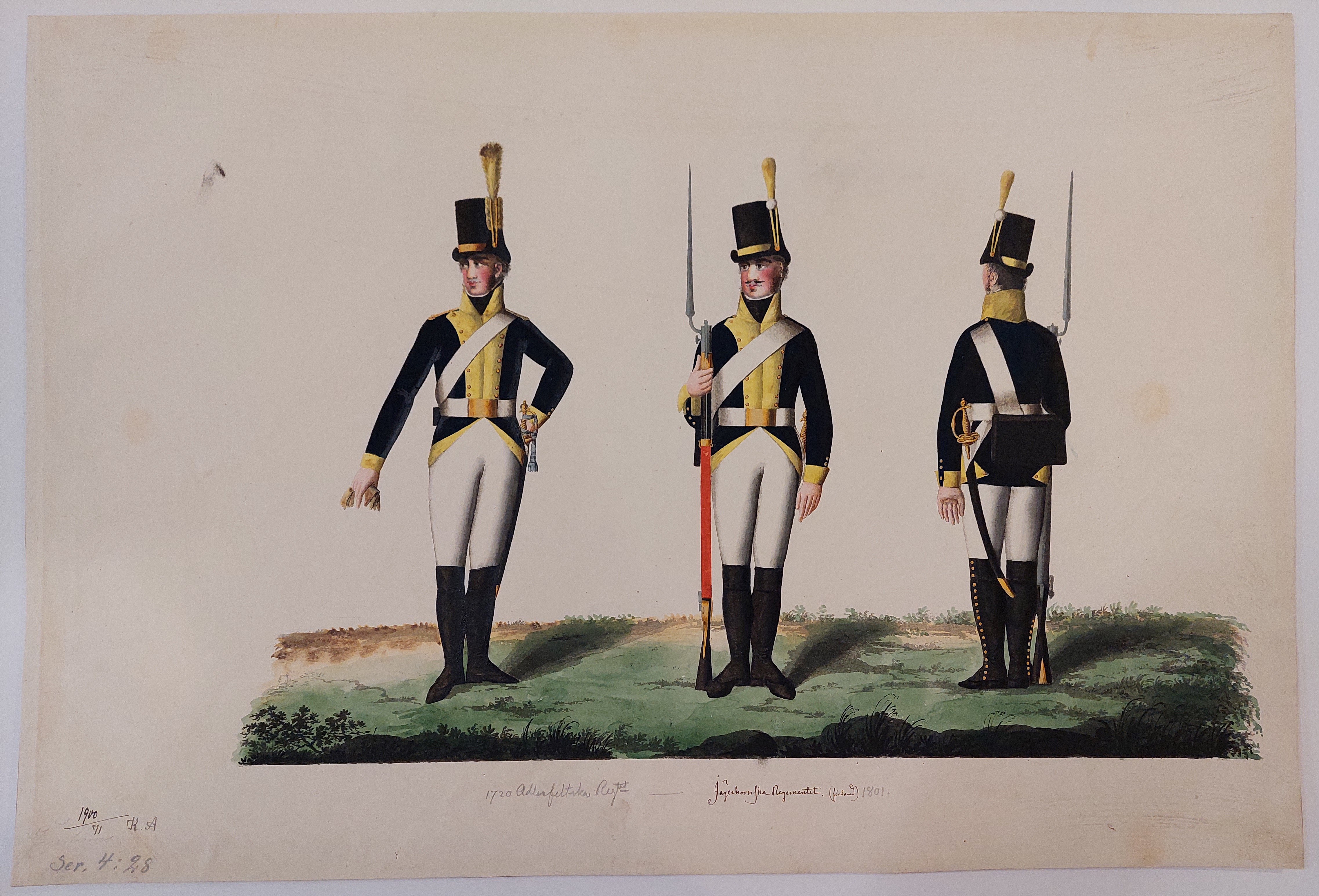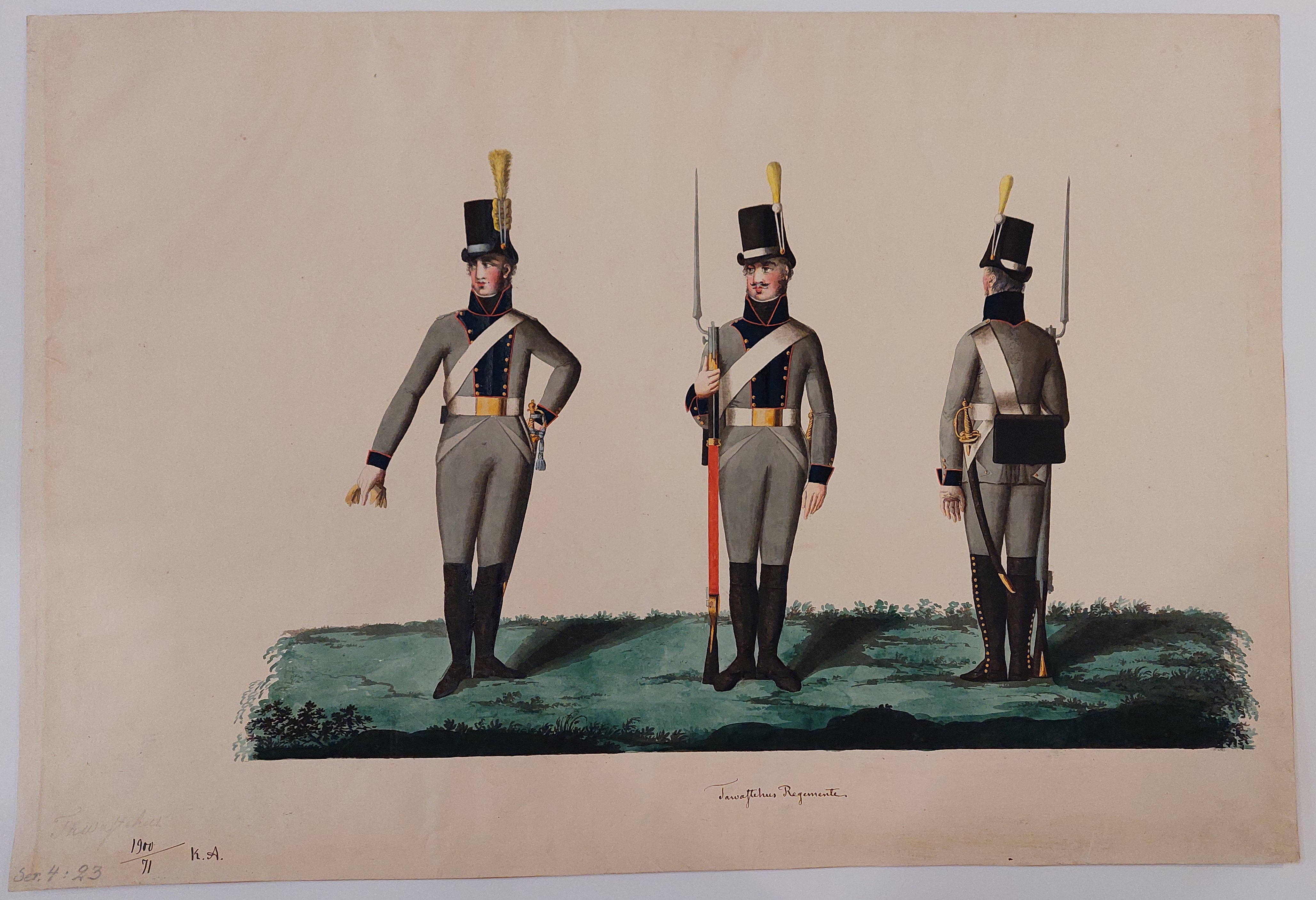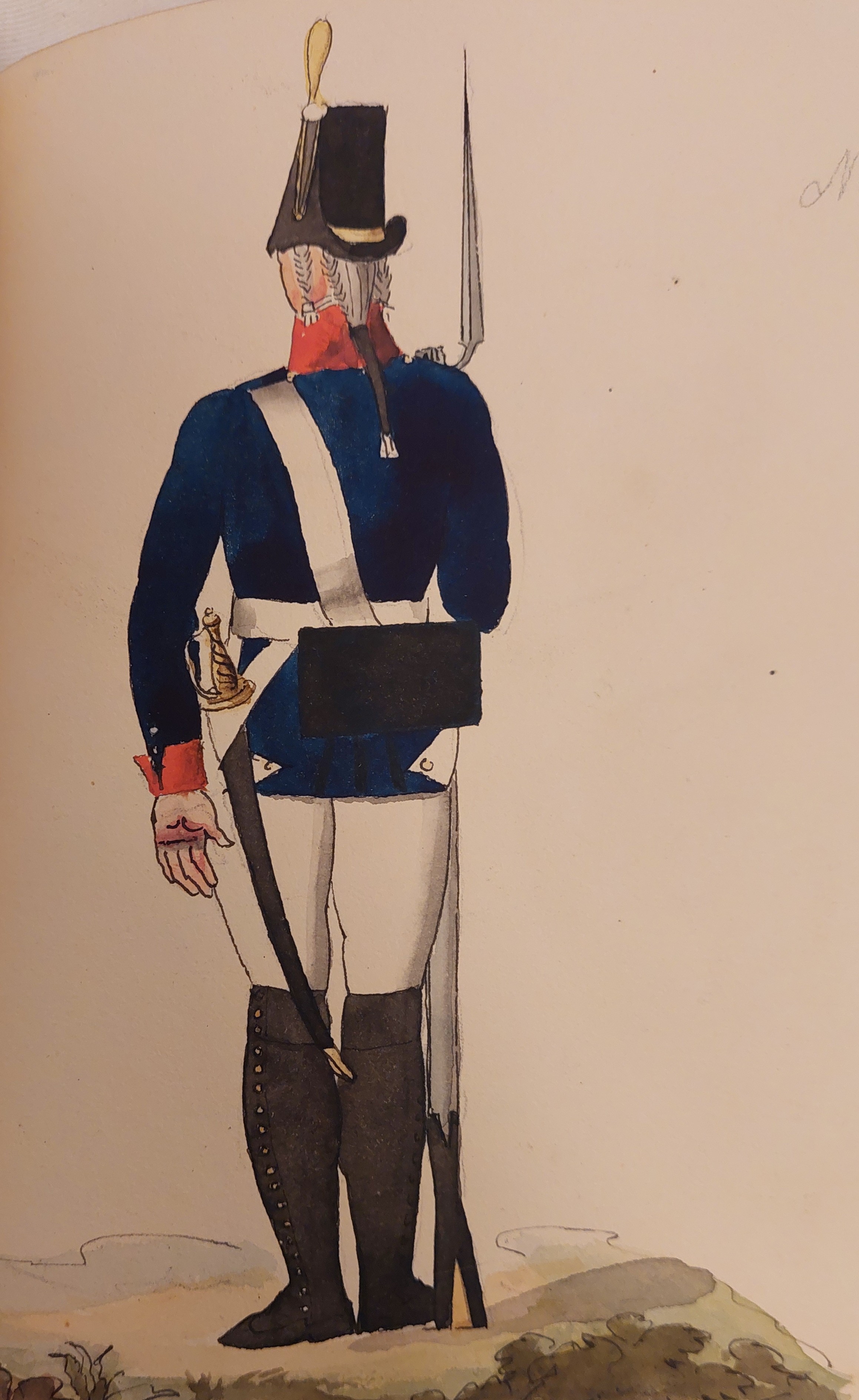 Beskuren uniformsritning daterad till 1806.