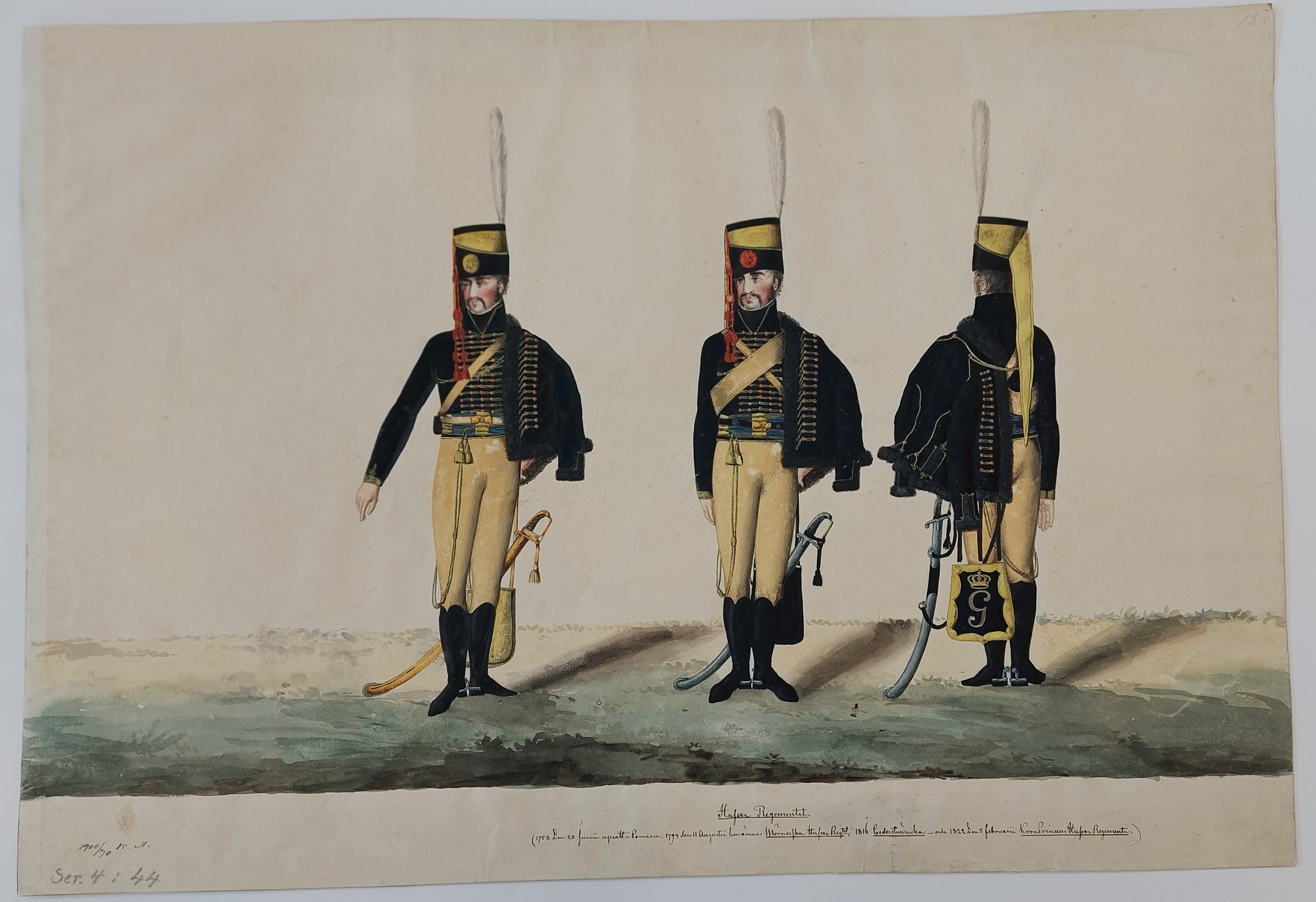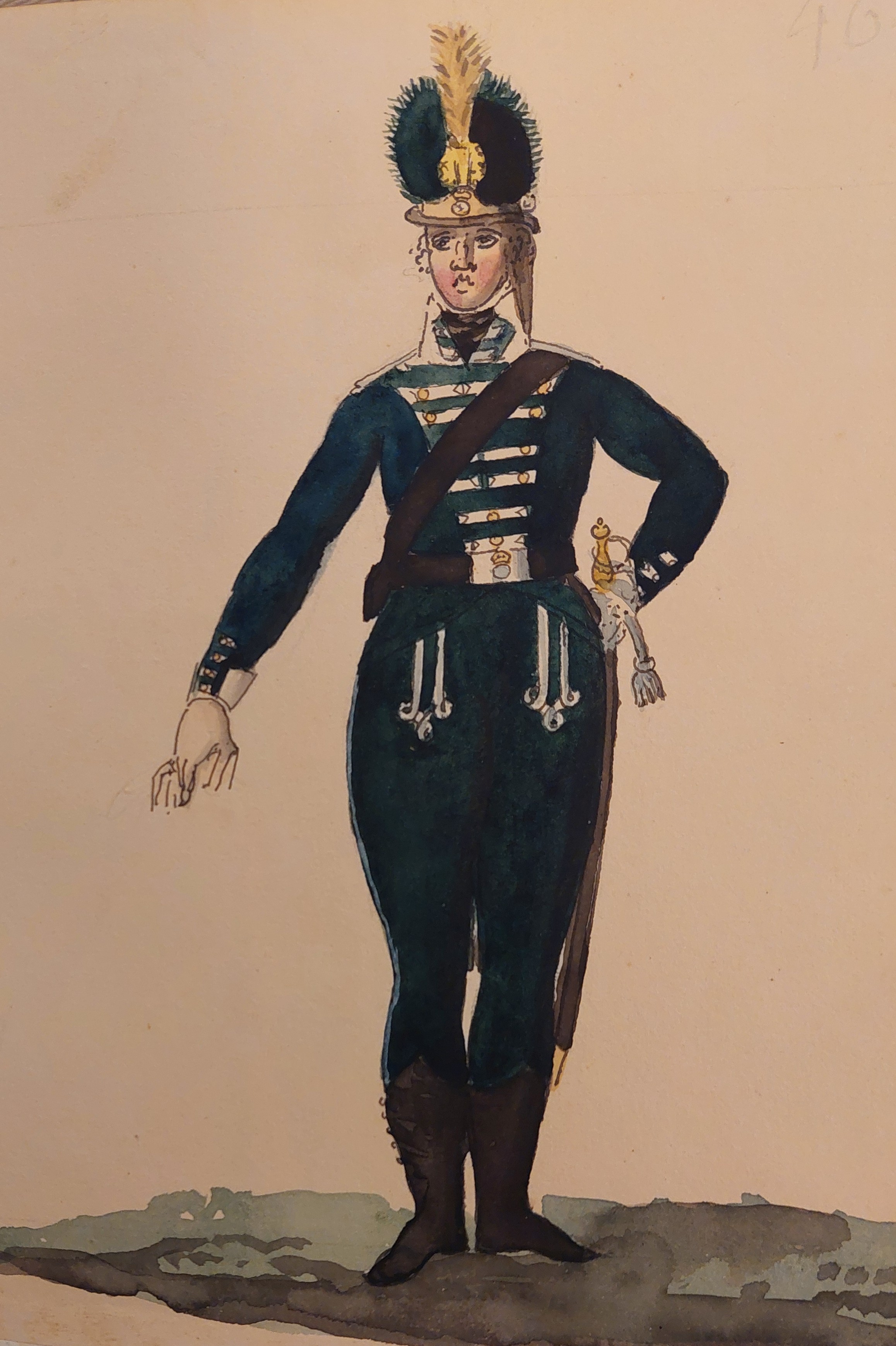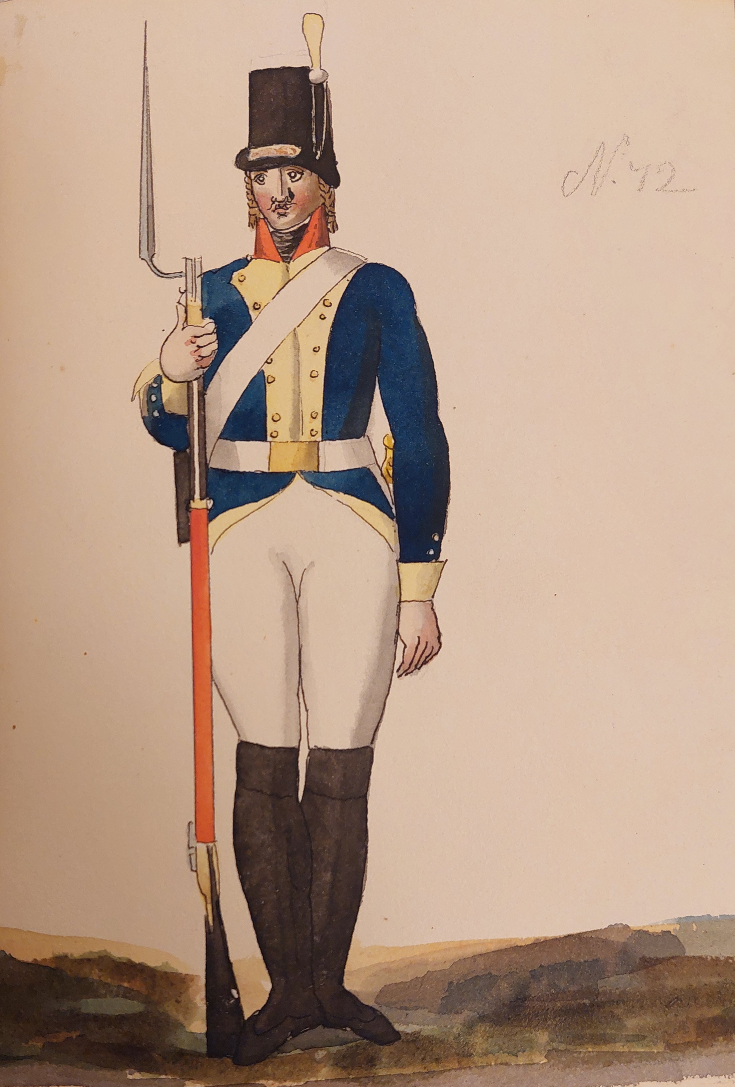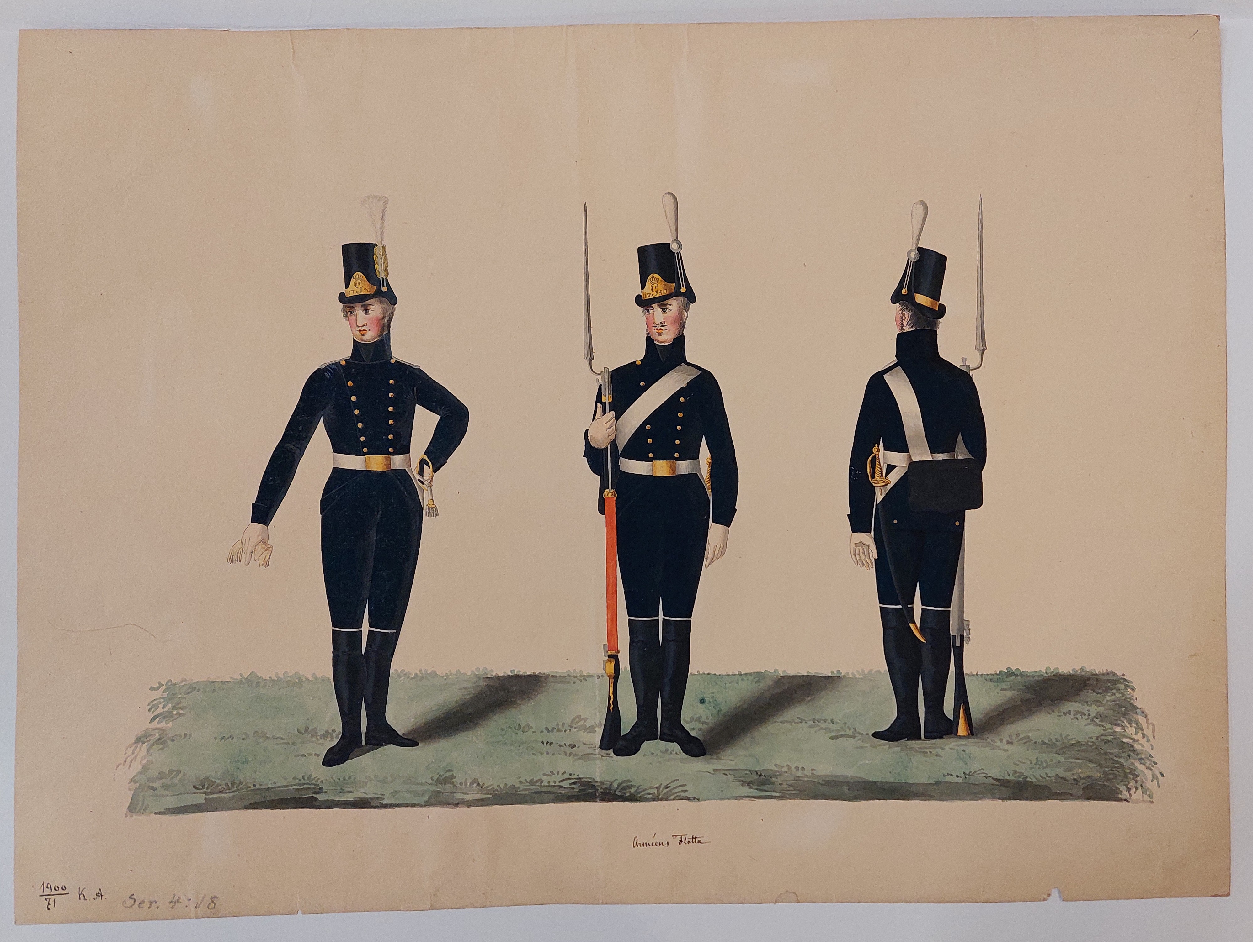 Beskuren uniformsritning daterad till 1806.