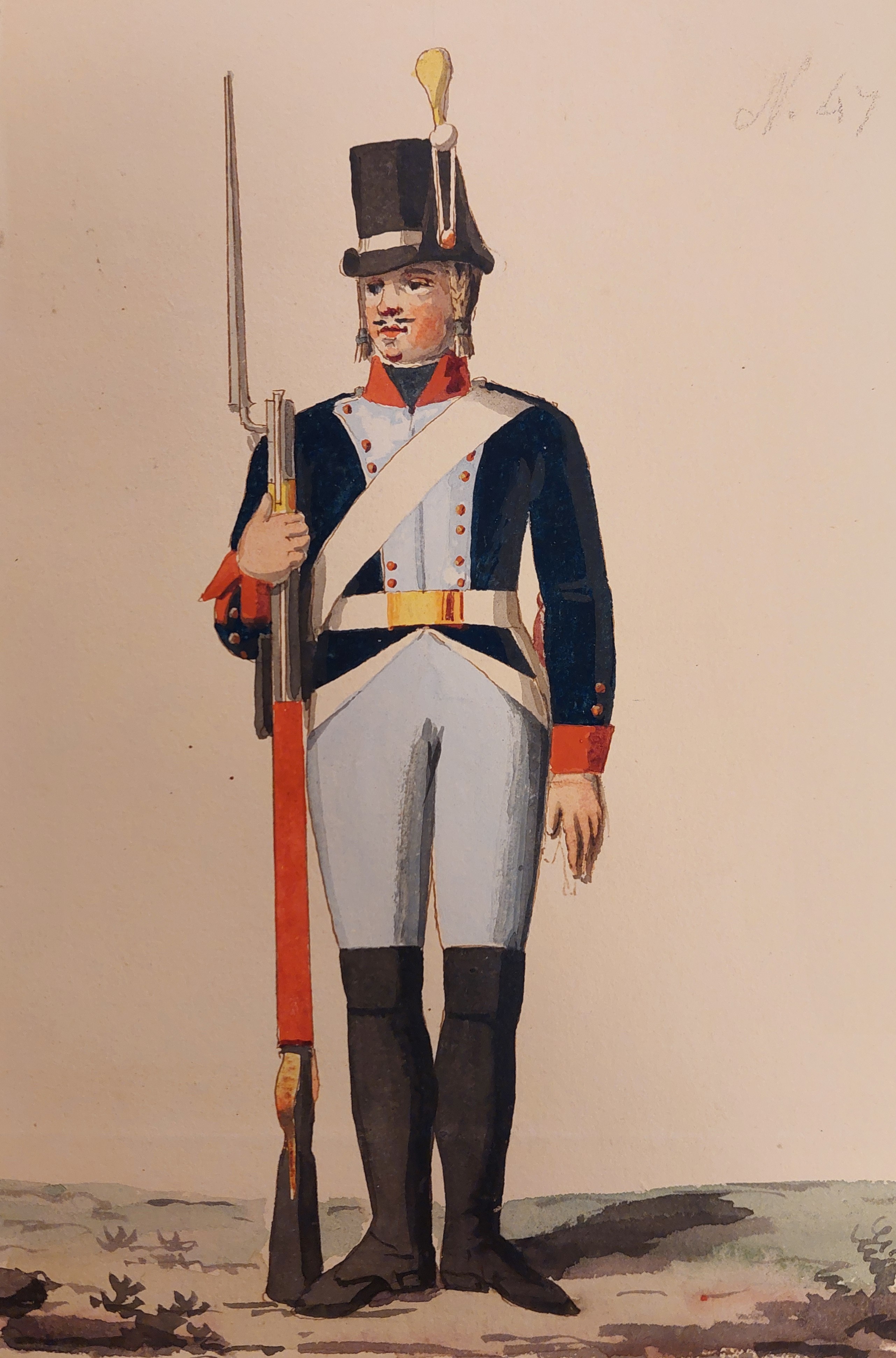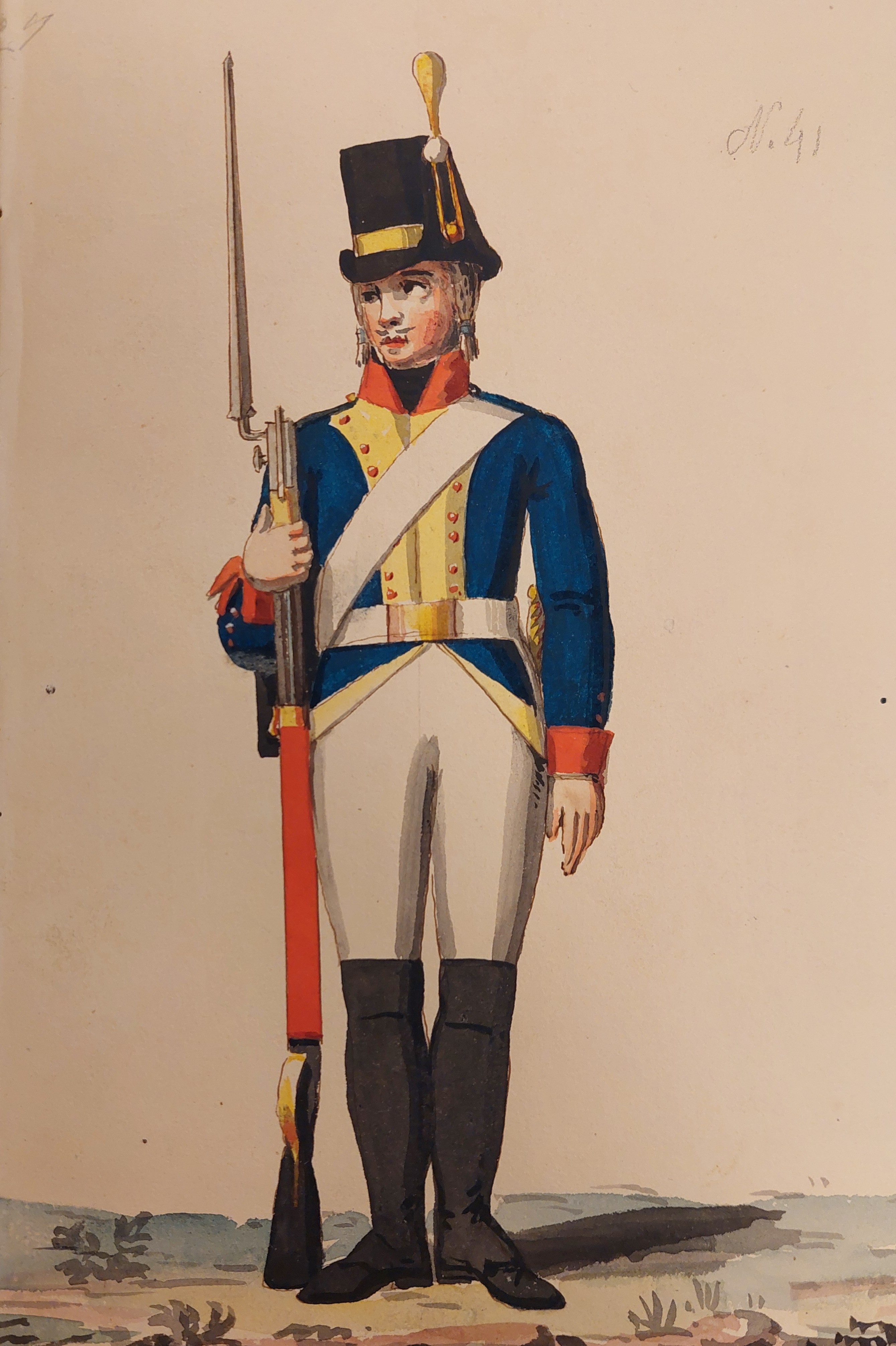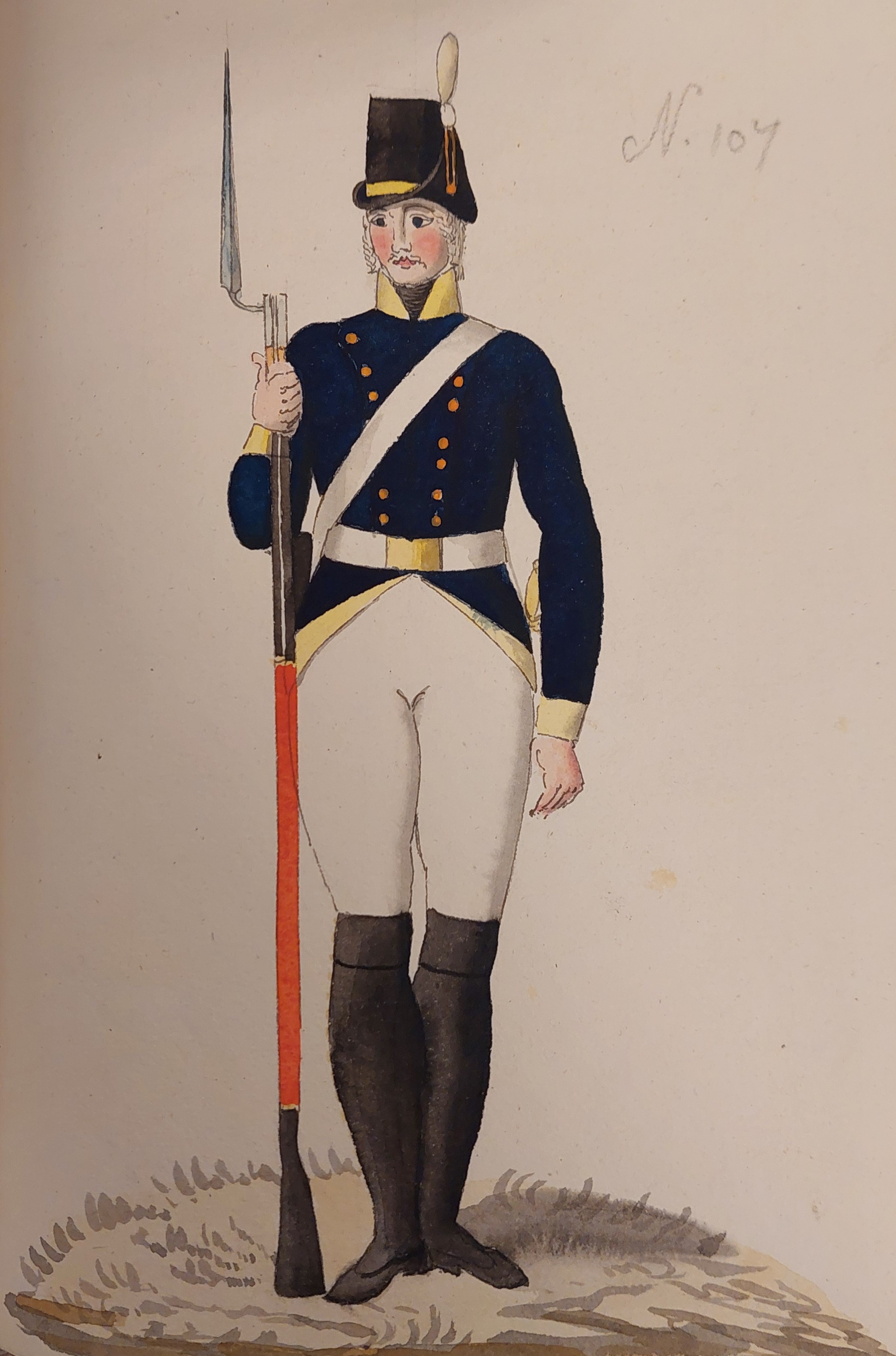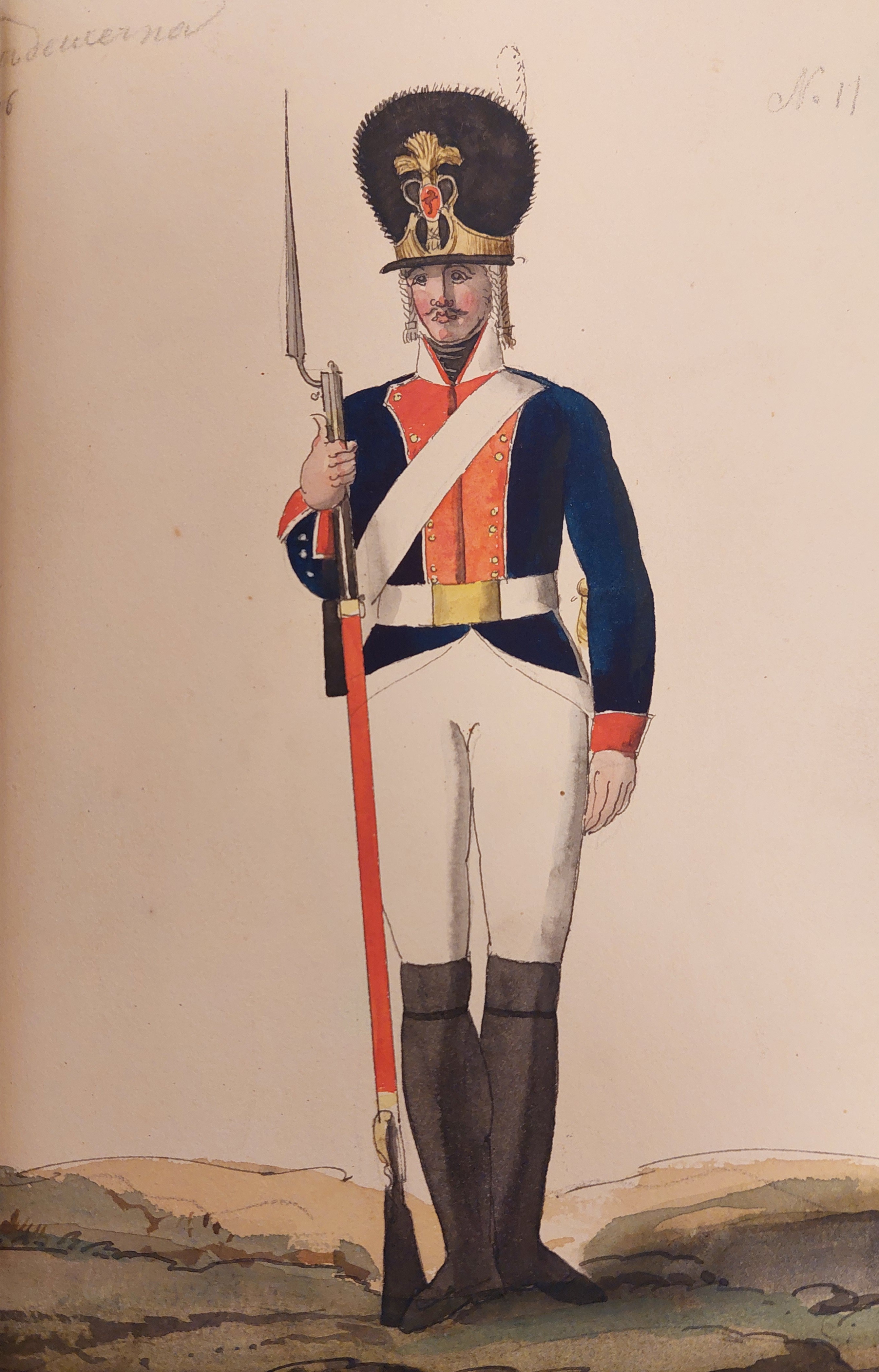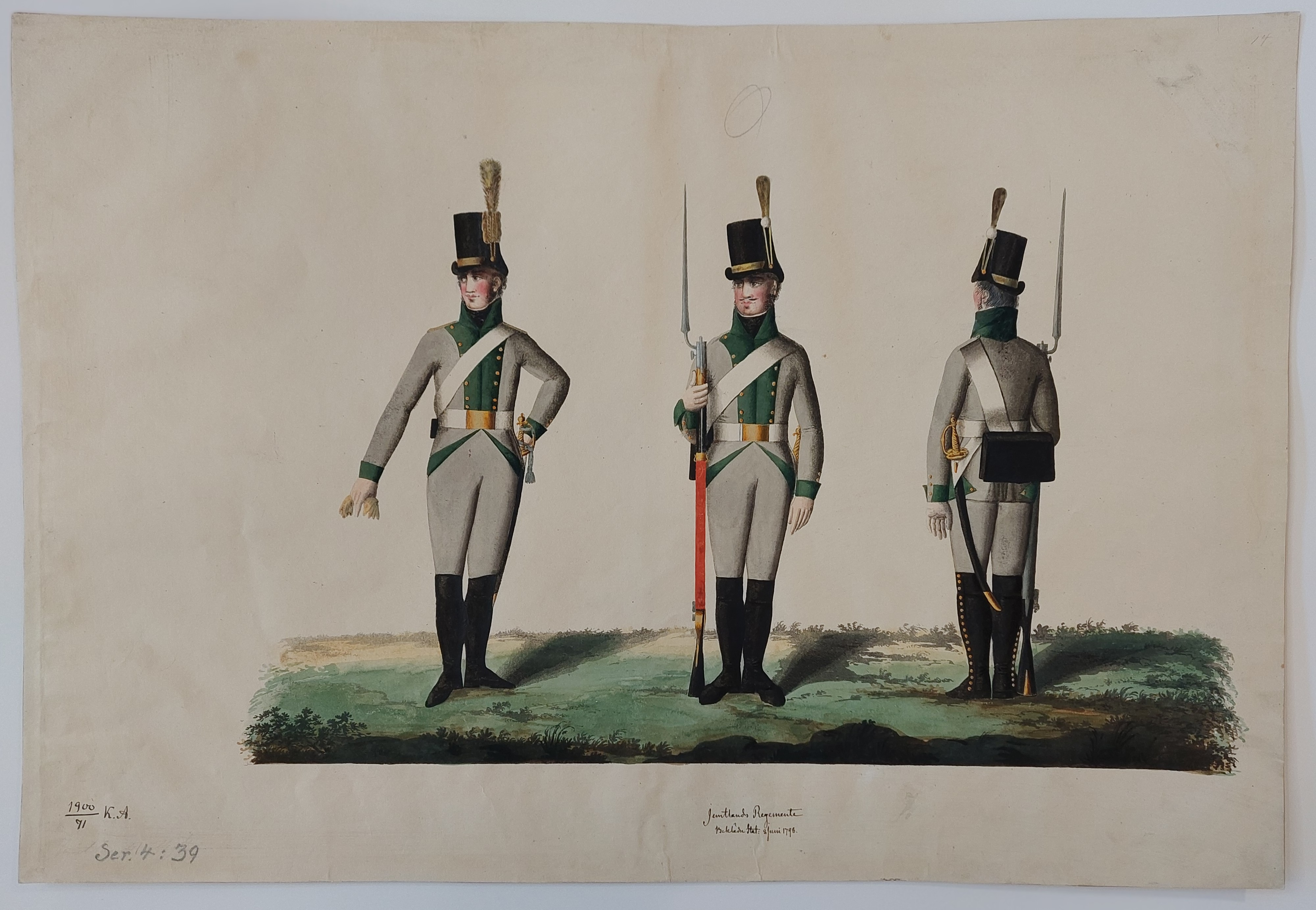 Beskuren uniformsritning daterad till 1806.