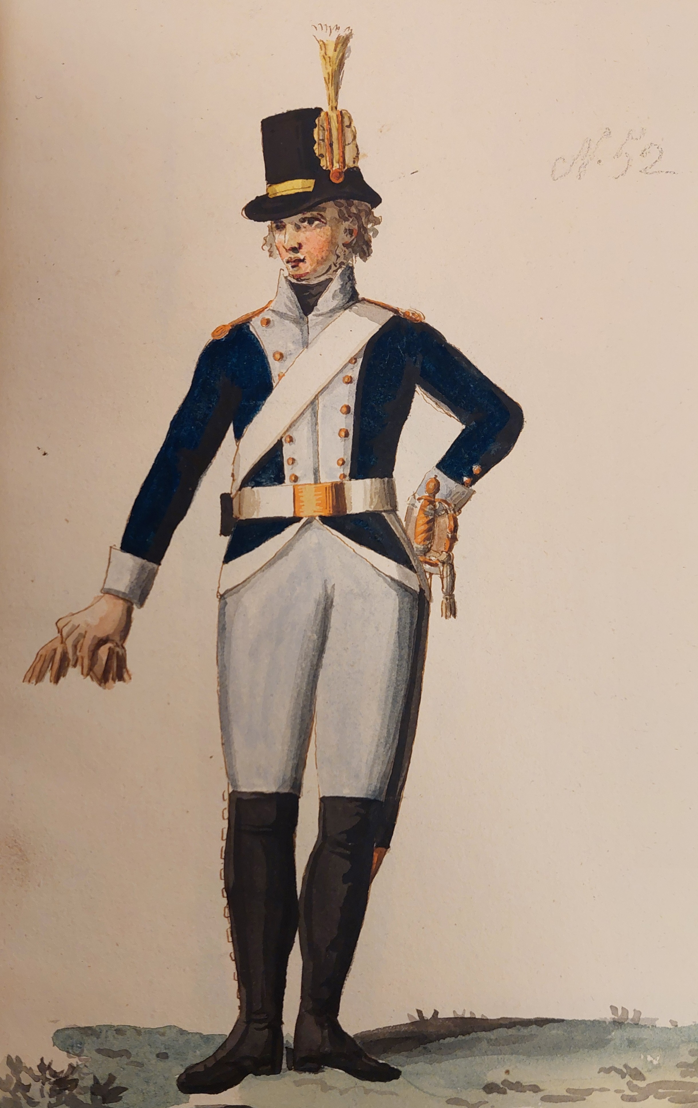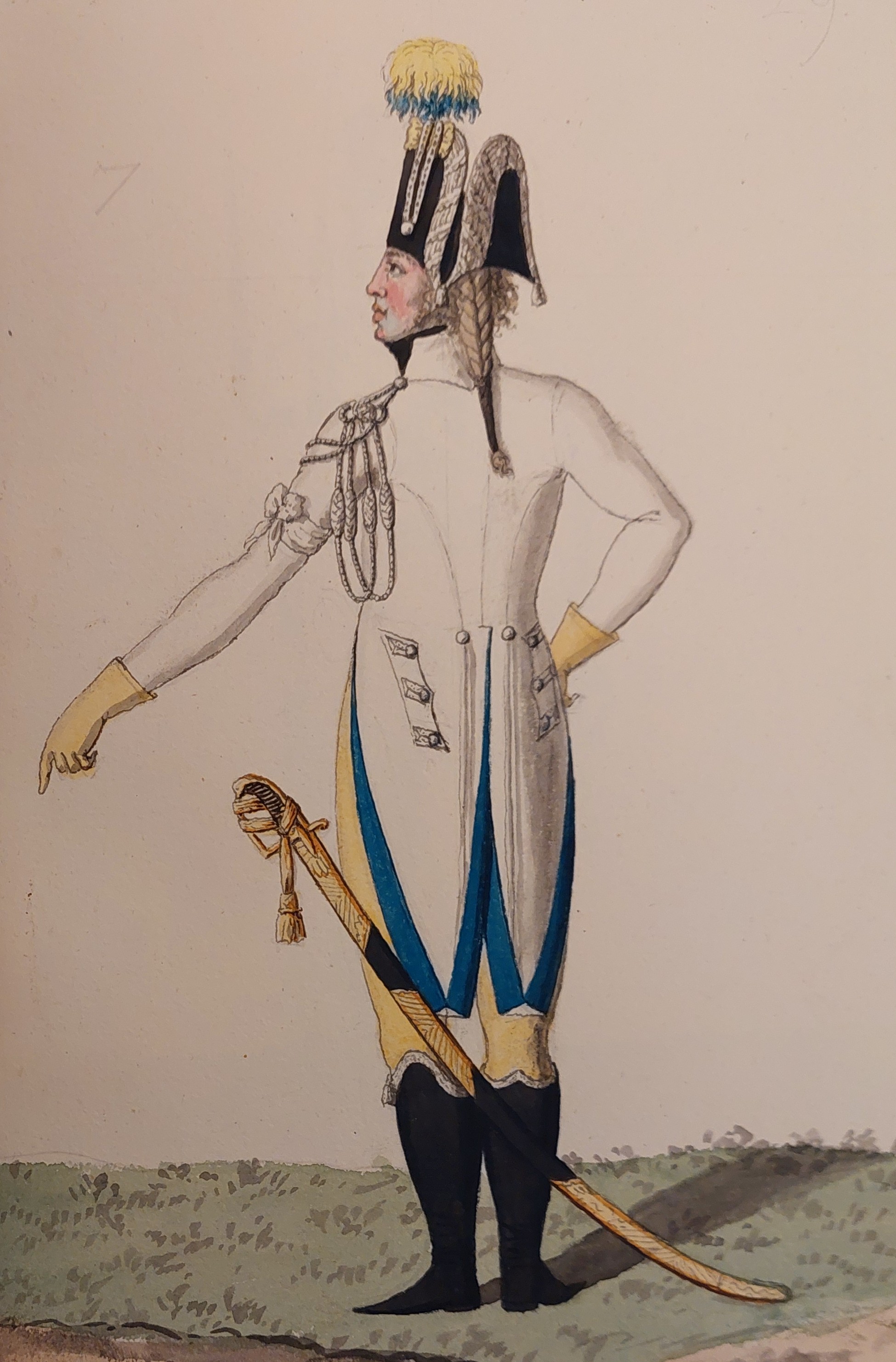 som syns ovan har även underofficeren till vänster en vit plym. Denna vita färg skiljde