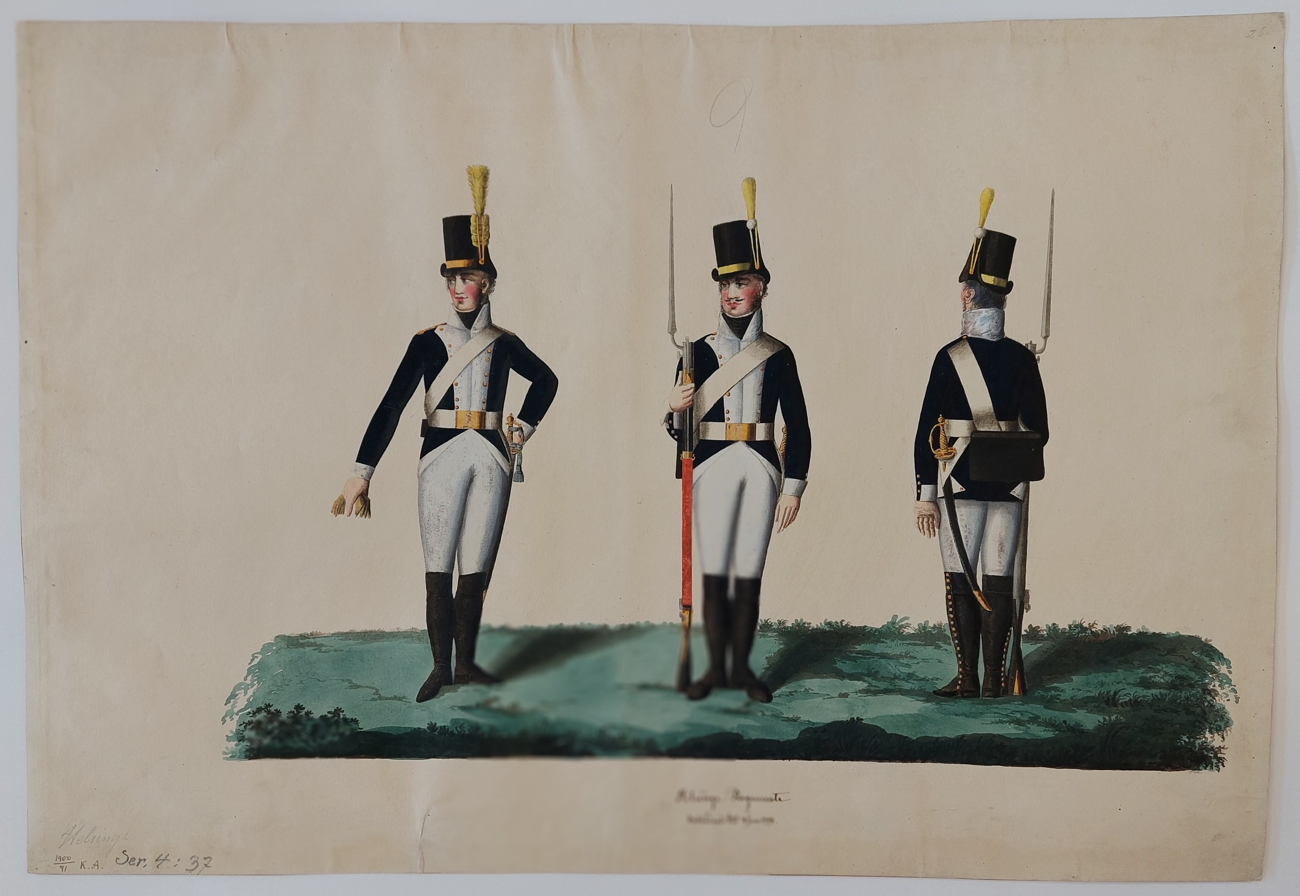 är de identiska med Runges bilder på Svea livgarde. Hattplymernas färger