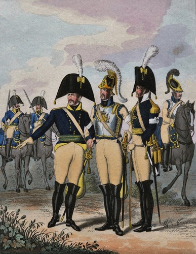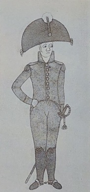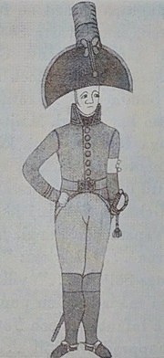 skulle ha trekantig hatt (dvs. "Napoleonhatt", inte "Karl XII-hatt") med