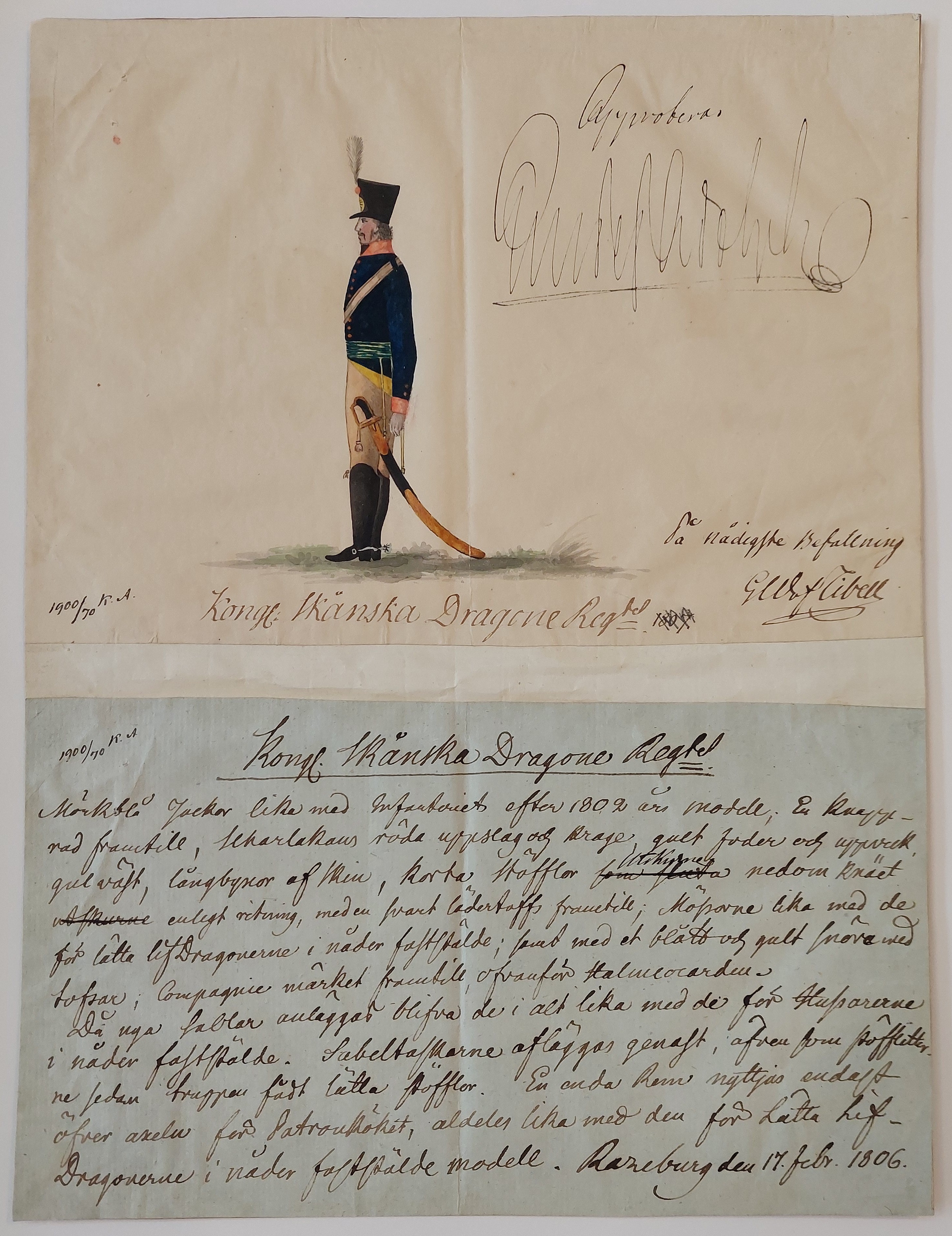 regementen och kårer ska ha mässingsknappar. Modellritningen för denna