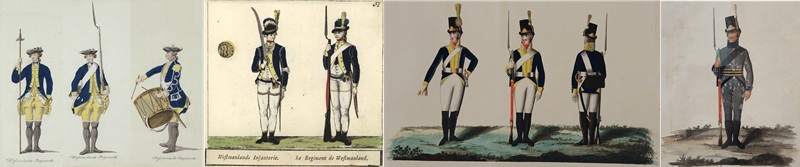 inf under framryckning och strid. Figurerna omsorgsfullt tecknade och